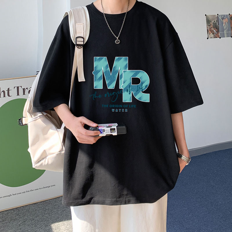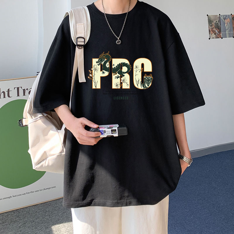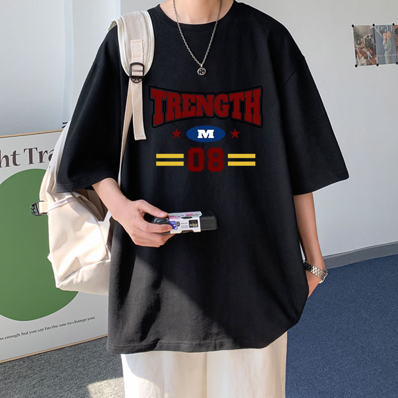 헤비 코튼 반팔 티셔츠 남자 2025 년 새 여름 느슨한 유행 브랜드 트렌디 인쇄 올 매치 하이 엔드 탑