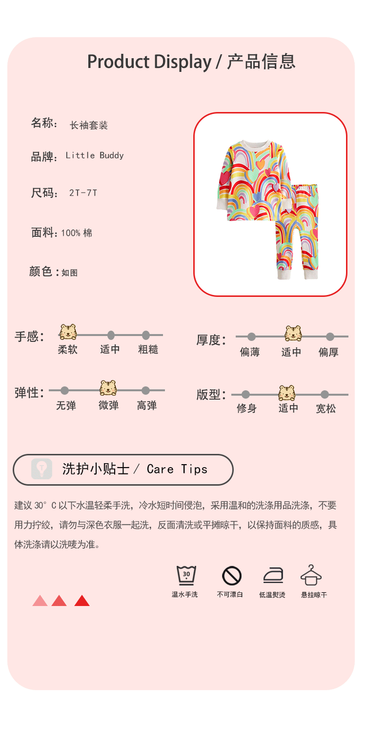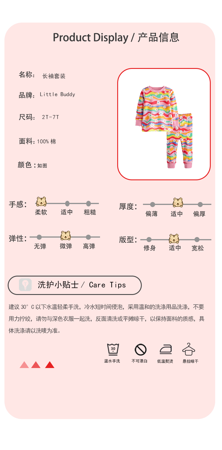 어린이 의류 면화 소녀 아기 만화 긴 소매 홈 의류 세트 잠옷베이스-편안한 착용