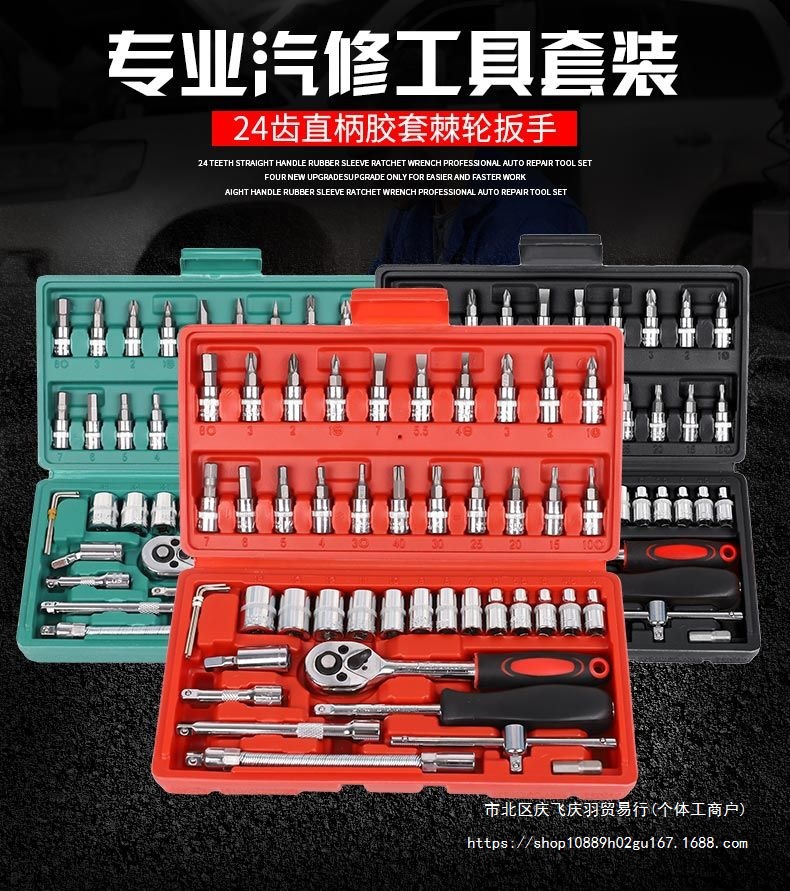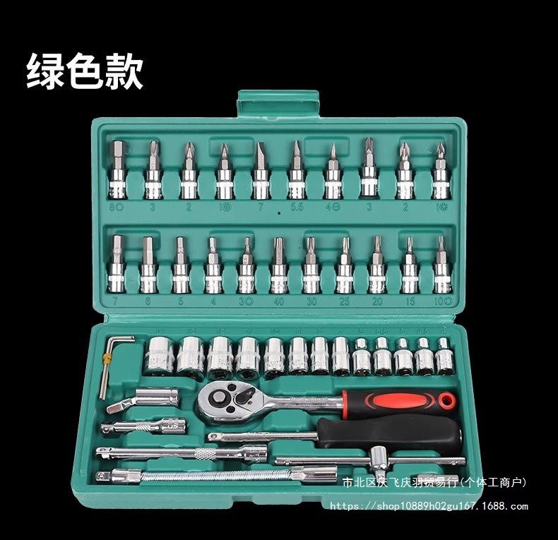 46 조각 소켓 렌치 도구 조합 1/4 작은 플라이 래칫 렌치 자동 수리 작은 소켓 세트 하드웨어 도구스토어 가기