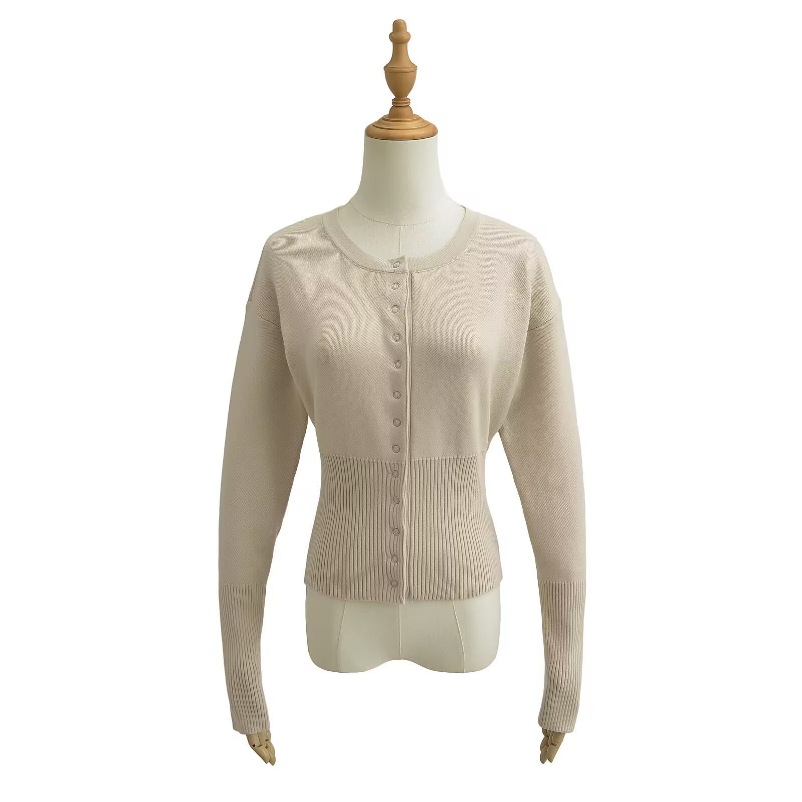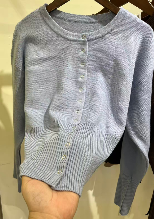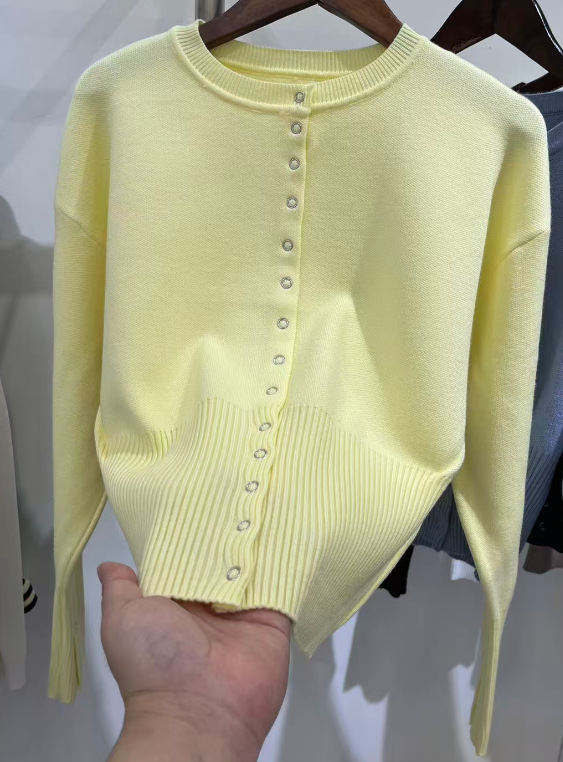 유럽과 미국의 하이 허리 여성 라운드 넥 싱글 브레스트 스웨터 여성 틈새 디자인 쇼트 탑, 얇은 스웨터 트렌디스토어 가기