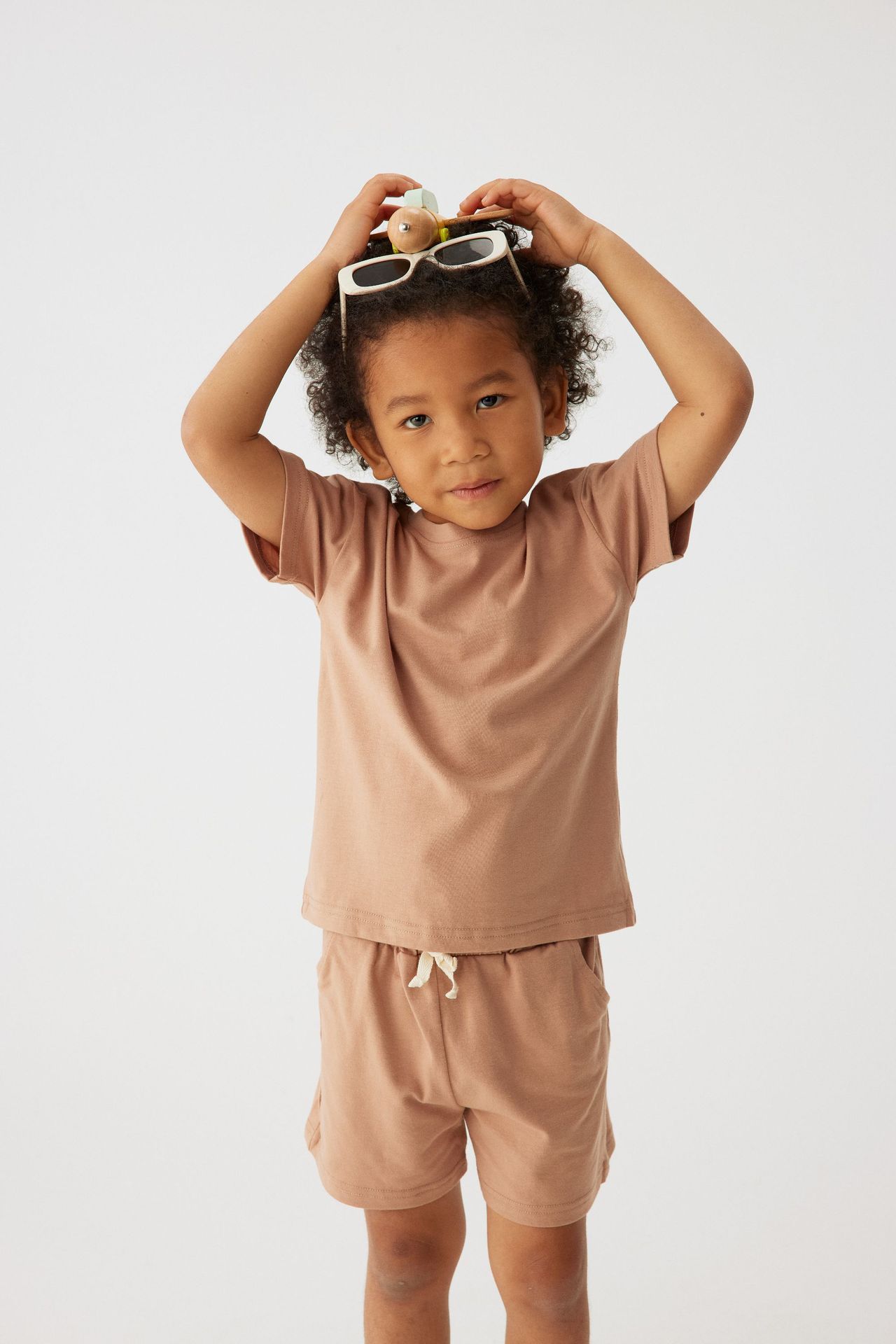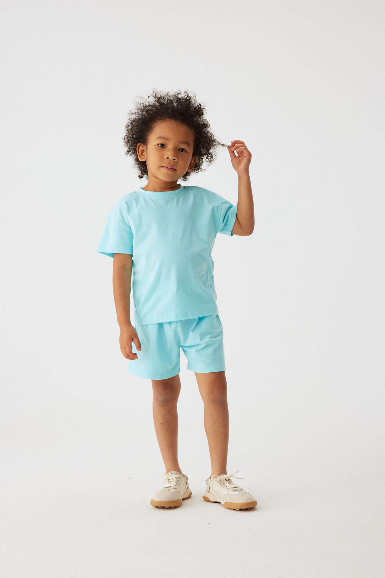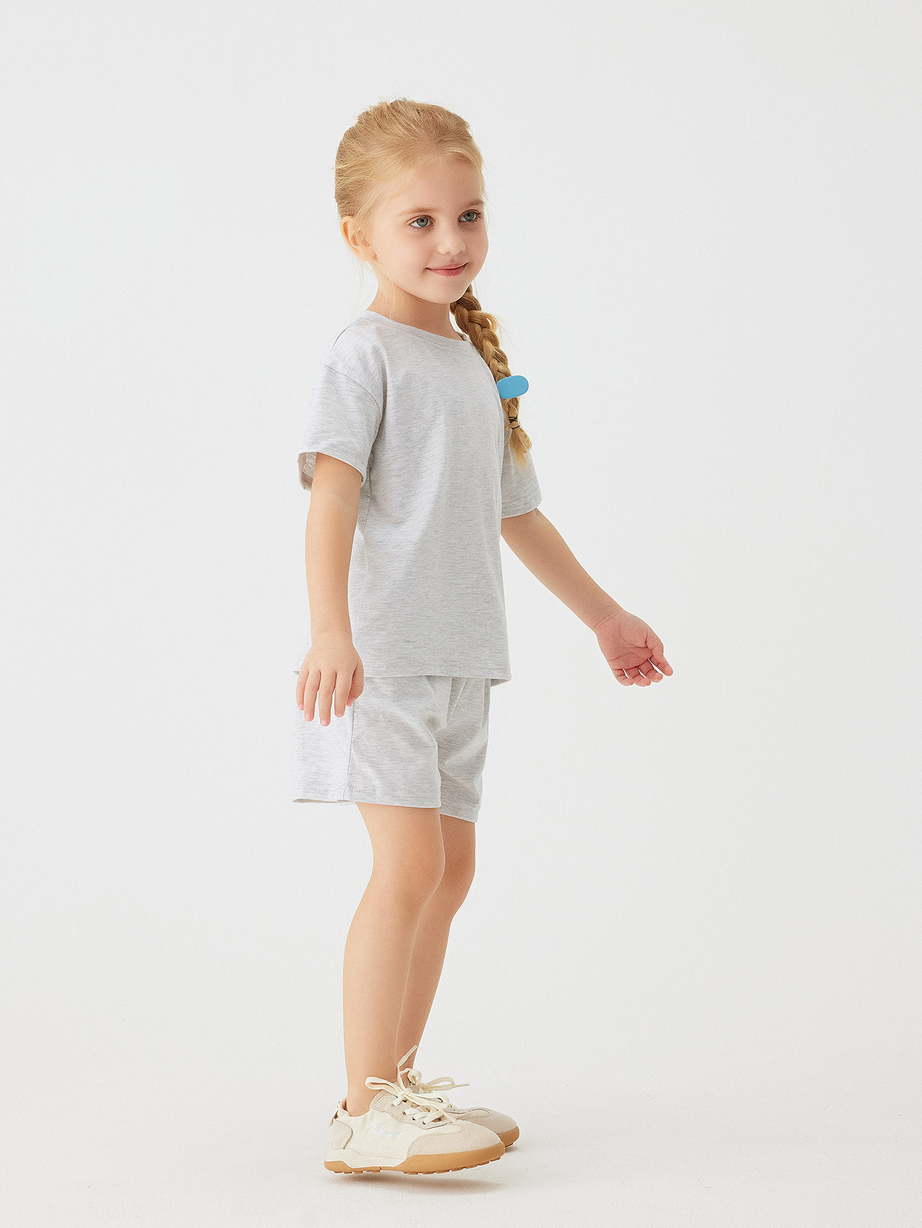 Label Size 110, age 3-4 years old. Top length 43 cm, bust 70 cm, pants length 30 cm, hip 72 cm.