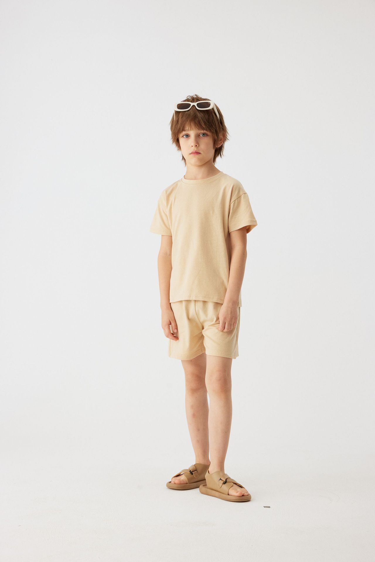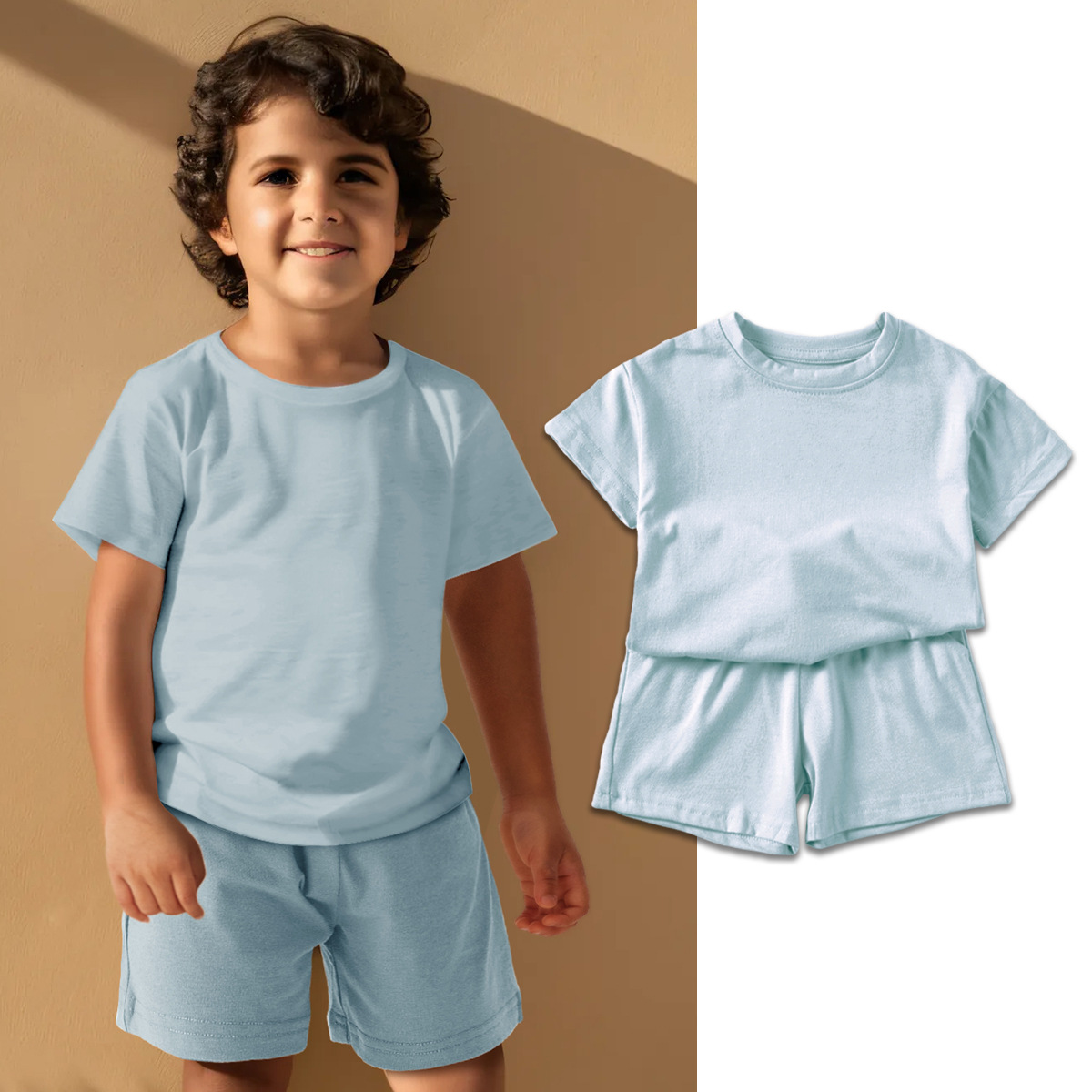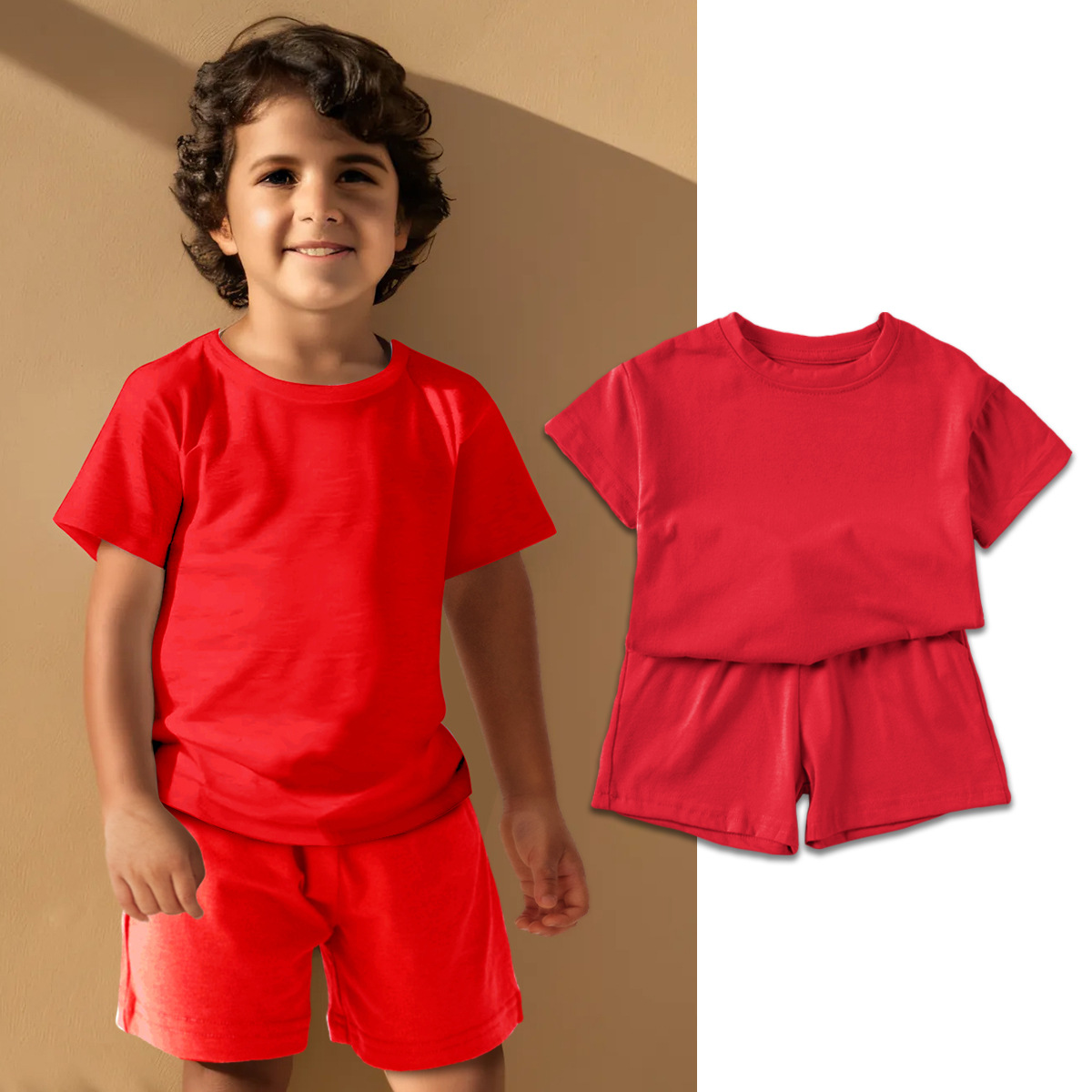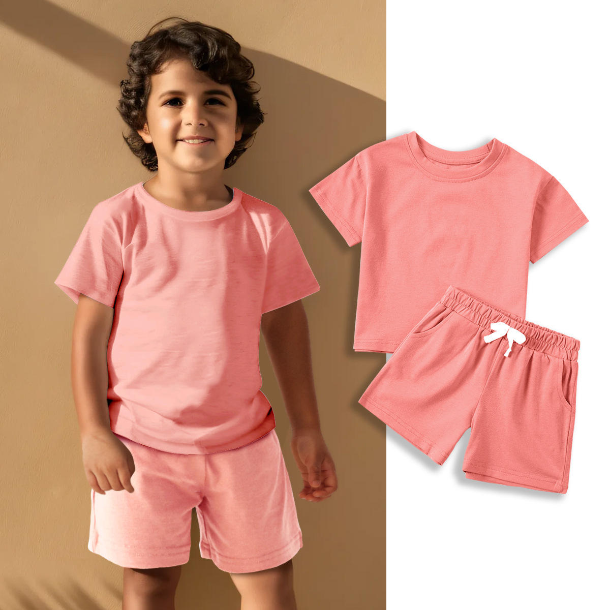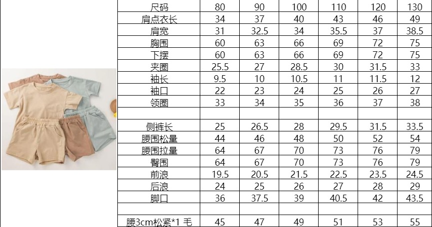 Label Size 100, age 2-3 years old. Top length 40 cm, bust 66 cm, pants length 29 cm, hip 68 cm.