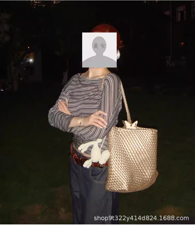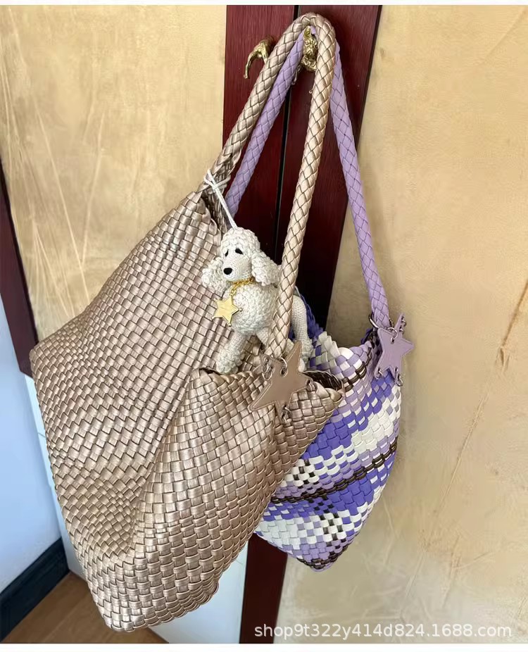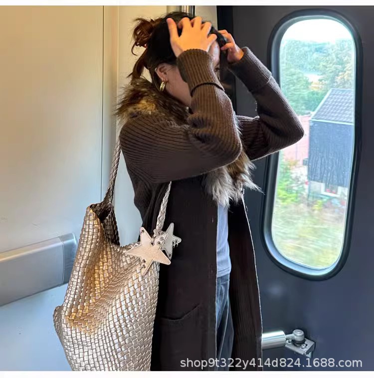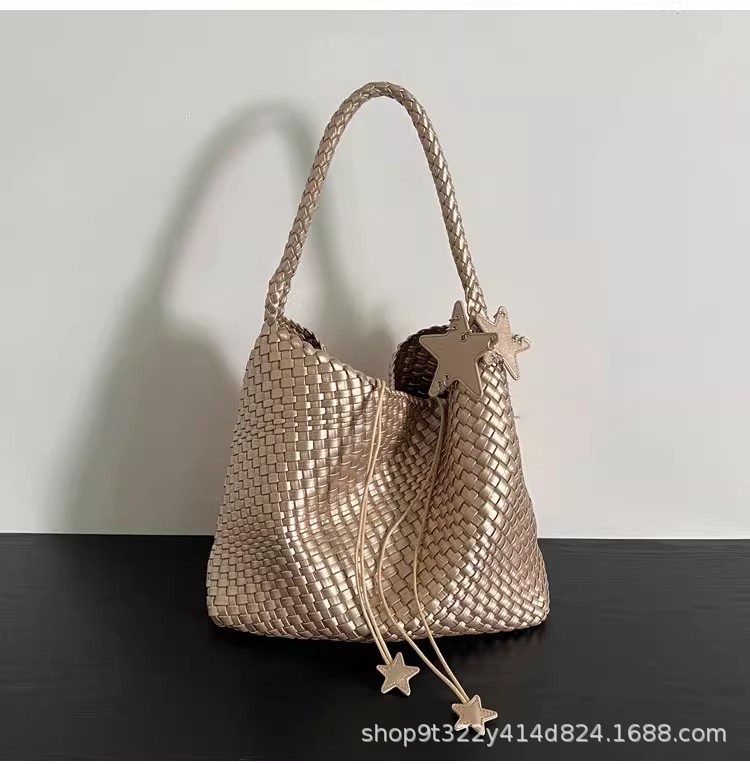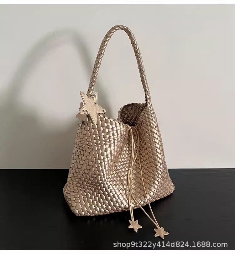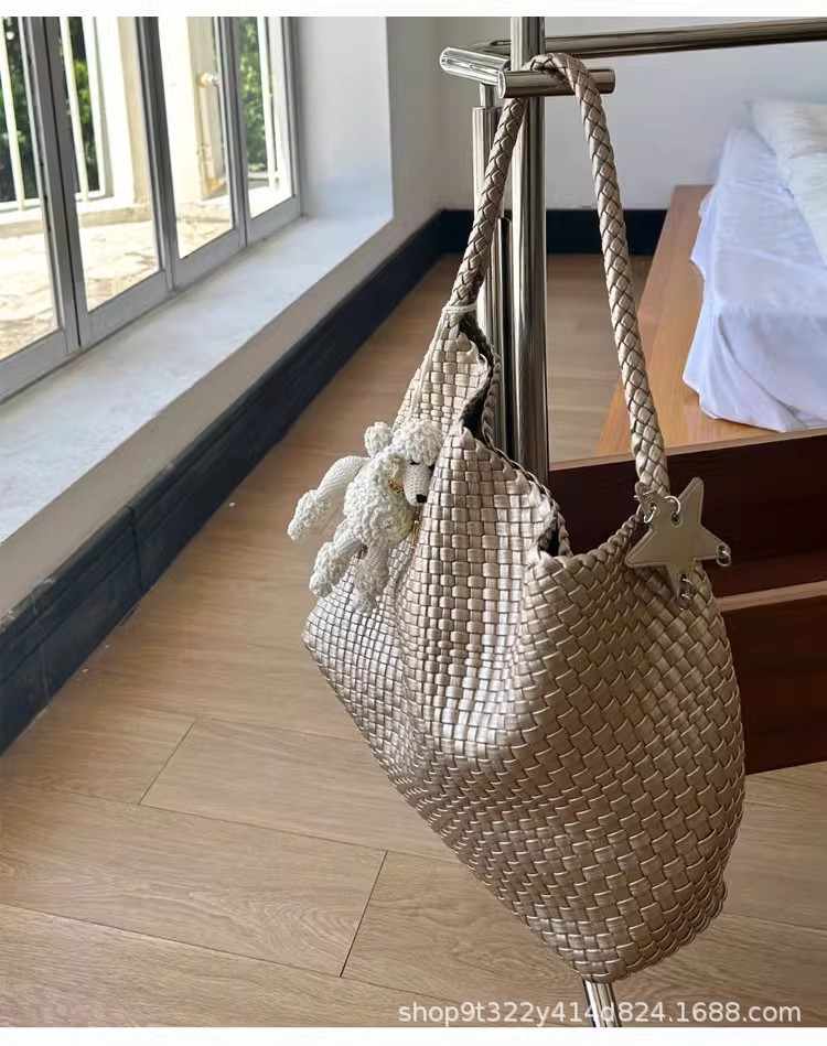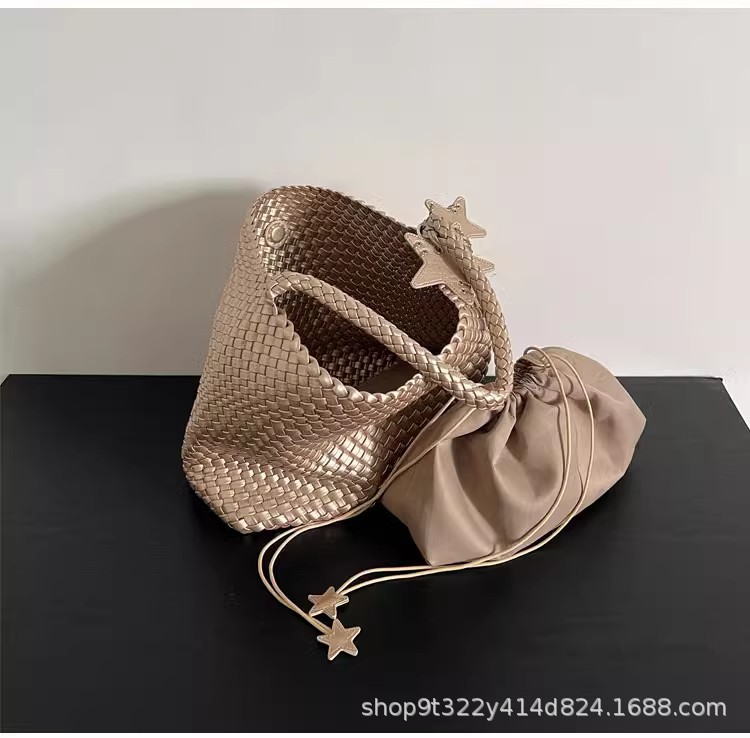 고급 틈새 디자인 수제 짠 가방 대용량 토트 백 캐주얼 게으른 스타일 어깨 언더암 버킷 백