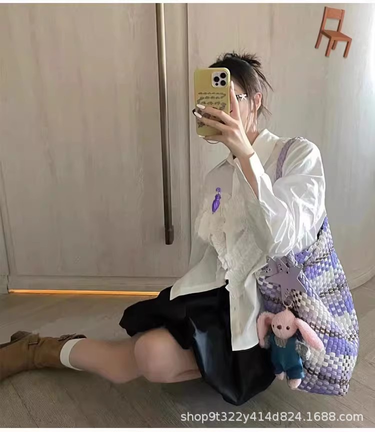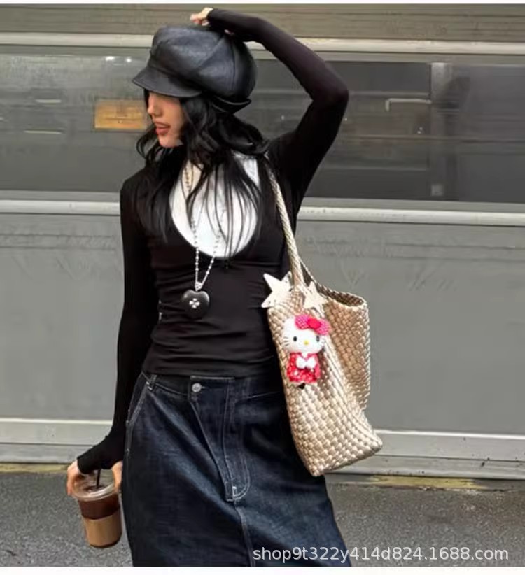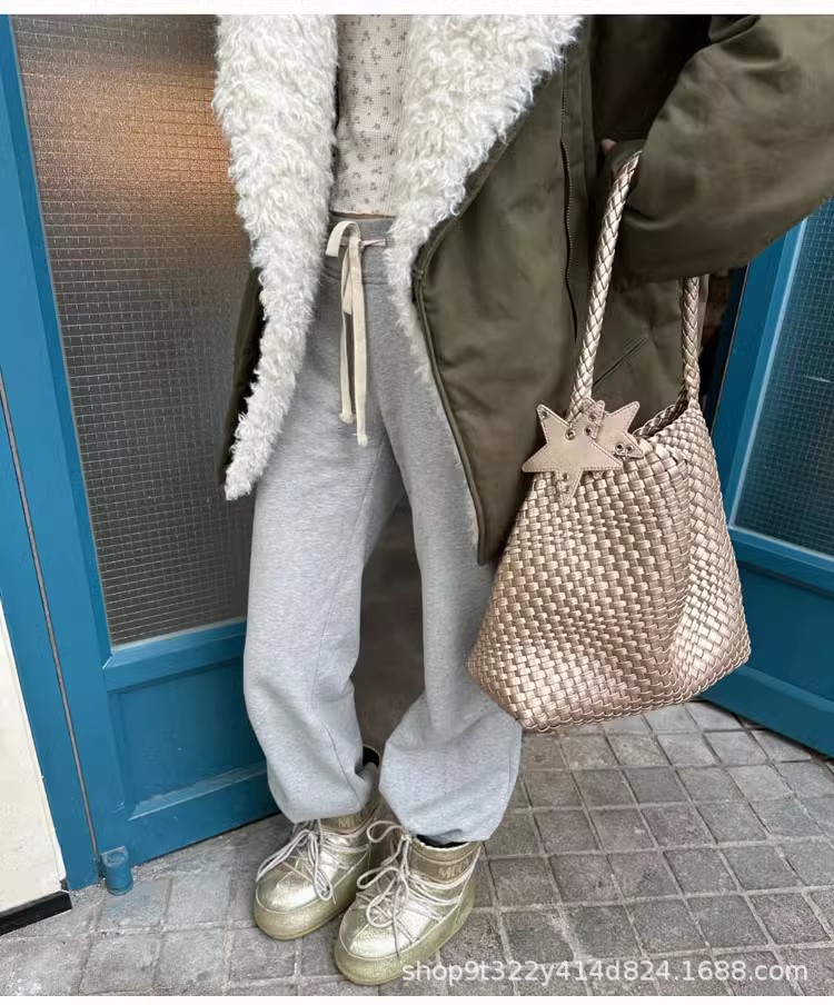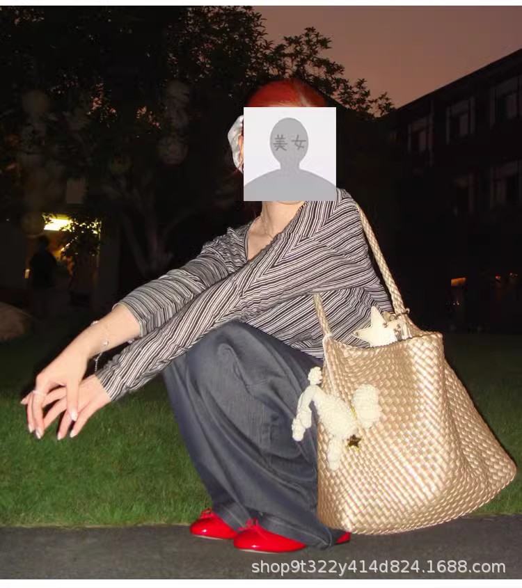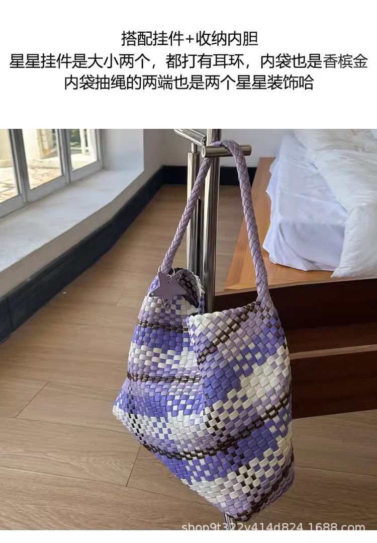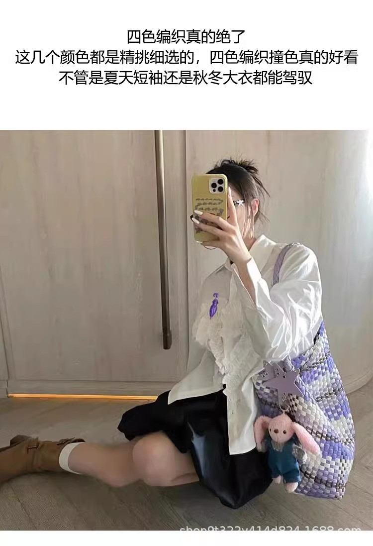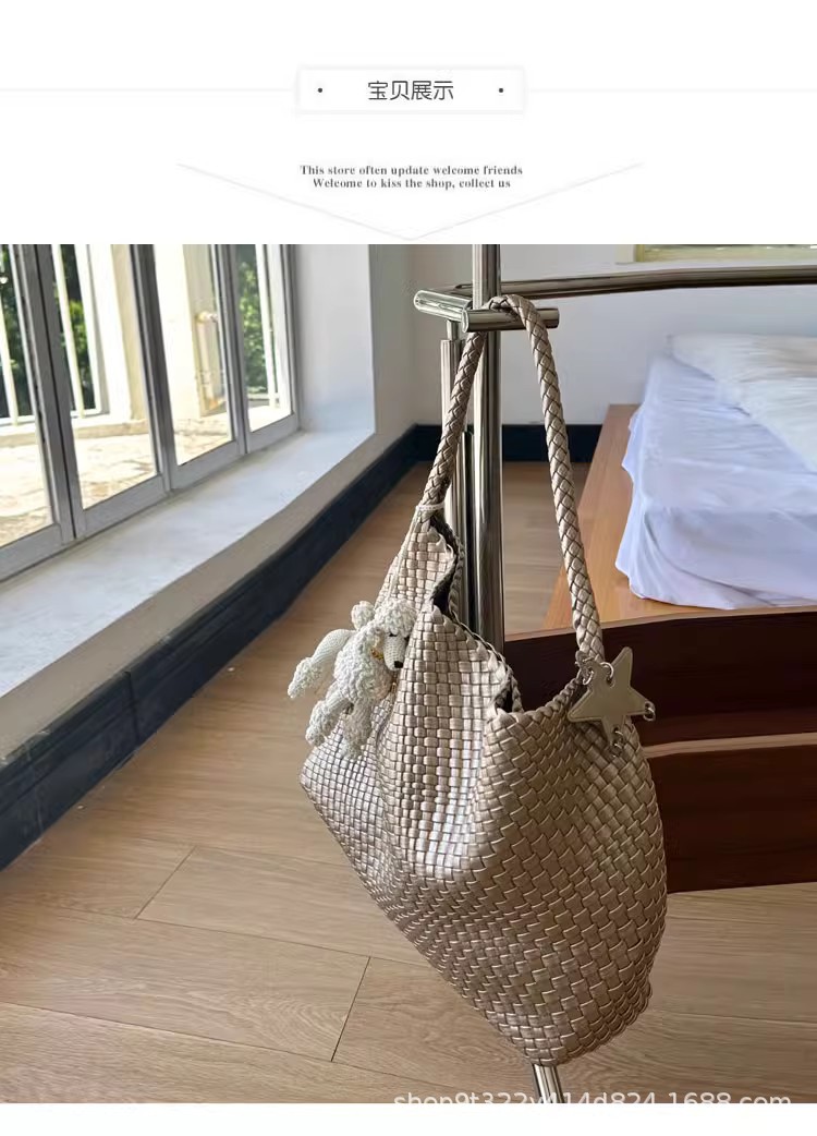 고급 틈새 디자인 수제 짠 가방 대용량 토트 백 캐주얼 게으른 스타일 어깨 언더암 버킷 백