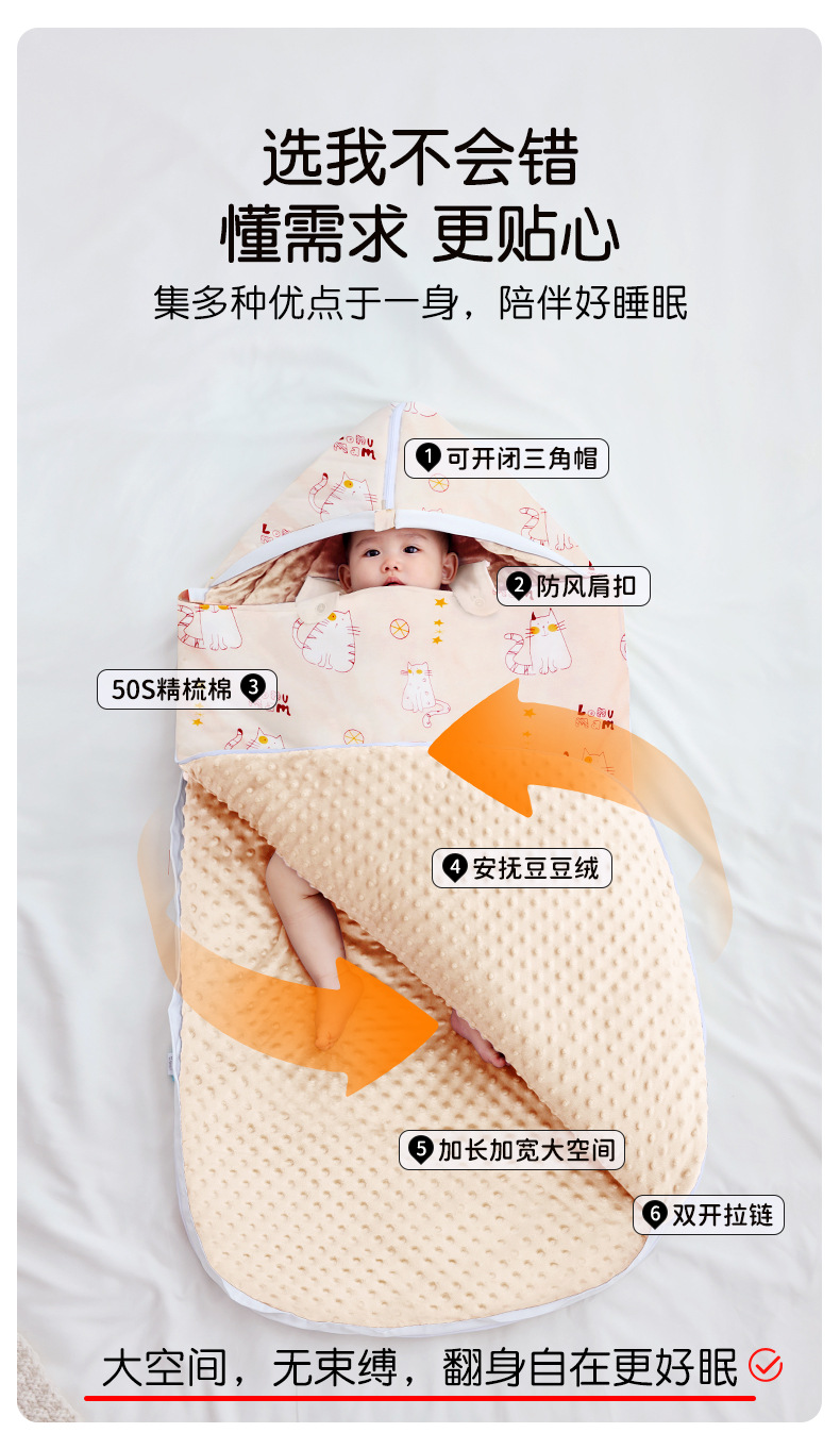 베이베이즈한 아기 수면조끼 가을 겨울 어린이용 A급 발차기 방지 이불, 깜짝 놀라움 방지, 항온 순면 일체형 두꺼운스토어 가기