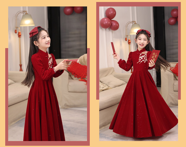소녀의 새로운 중국 스타일 원피스 가을과 겨울 새로운 유행 서양 스타일 큰 어린이 붉은 새해 옷 어린 소녀의 공주 원피스스토어 가기