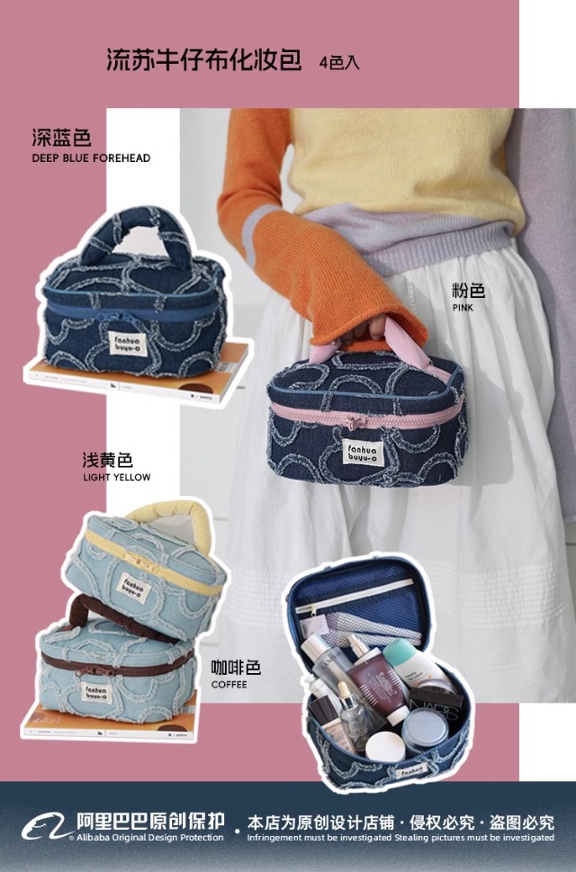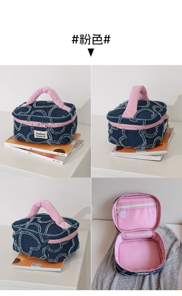 한국 스타일 간단한 귀여운 대용량 휴대용 화장품 가방 휴대용 여성용 세탁 데님 스킨 케어 보관 가방 세탁 가방스토어 가기