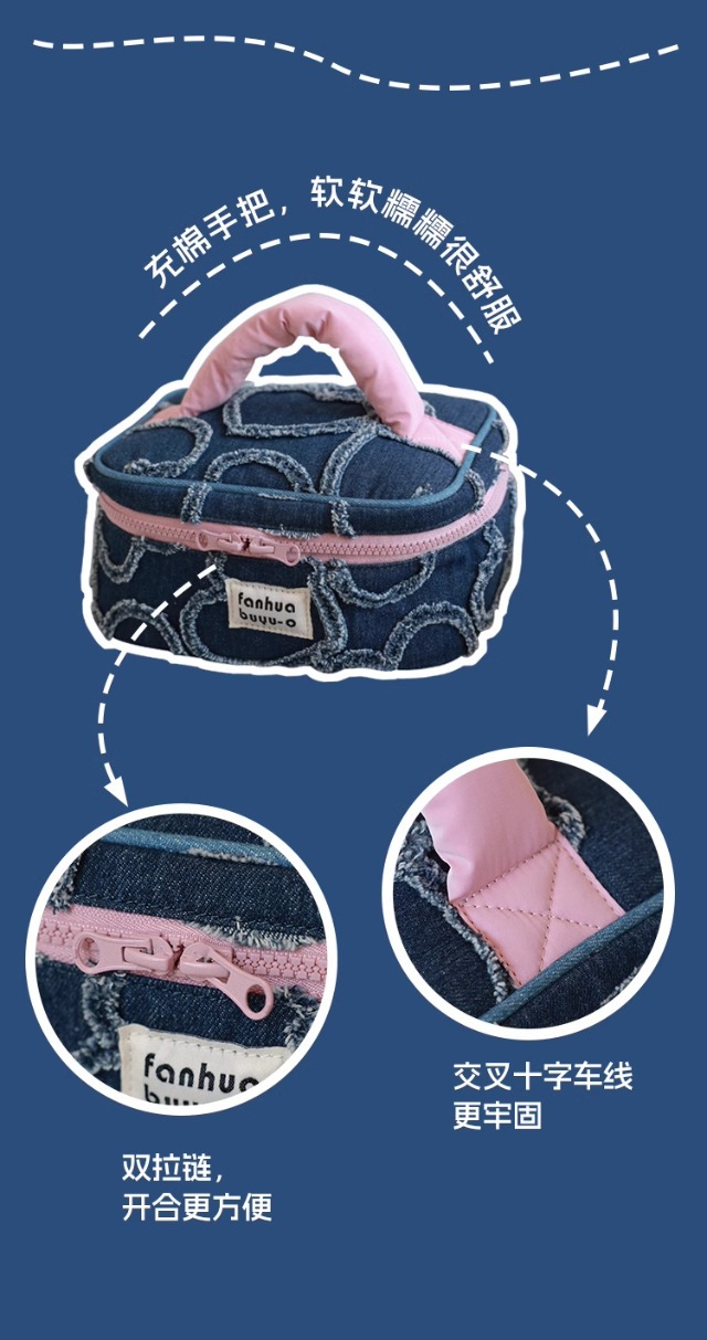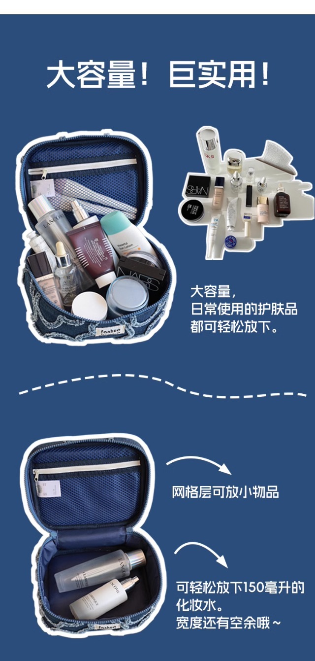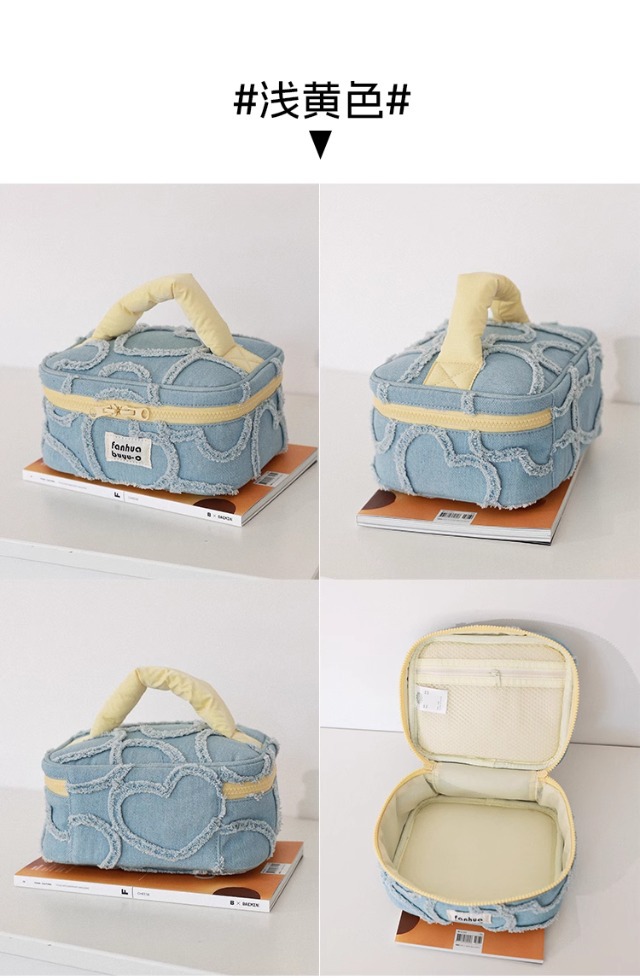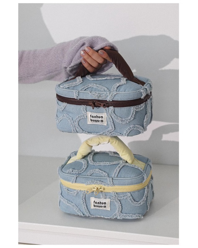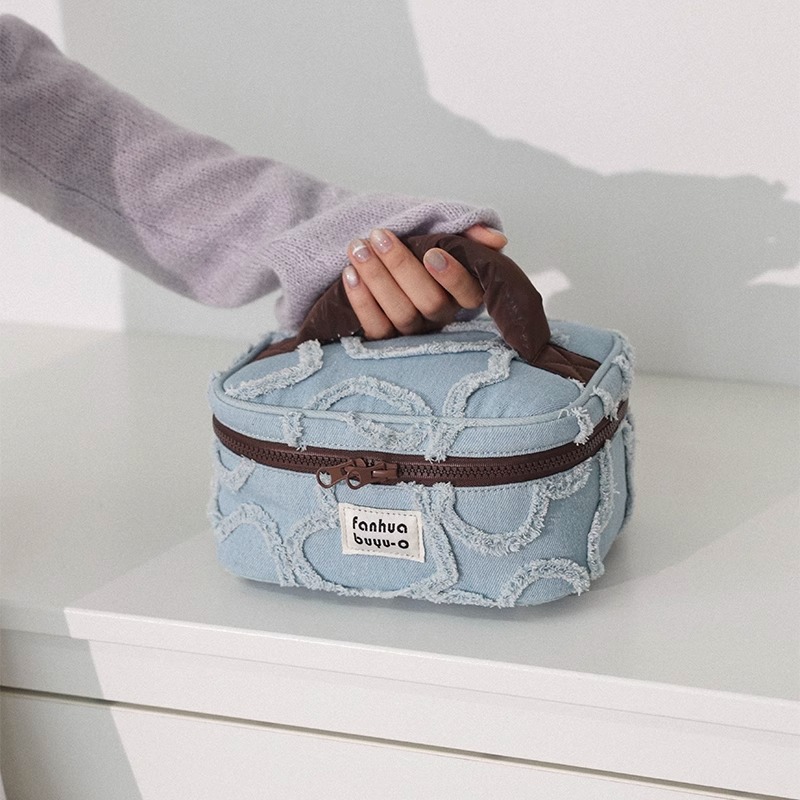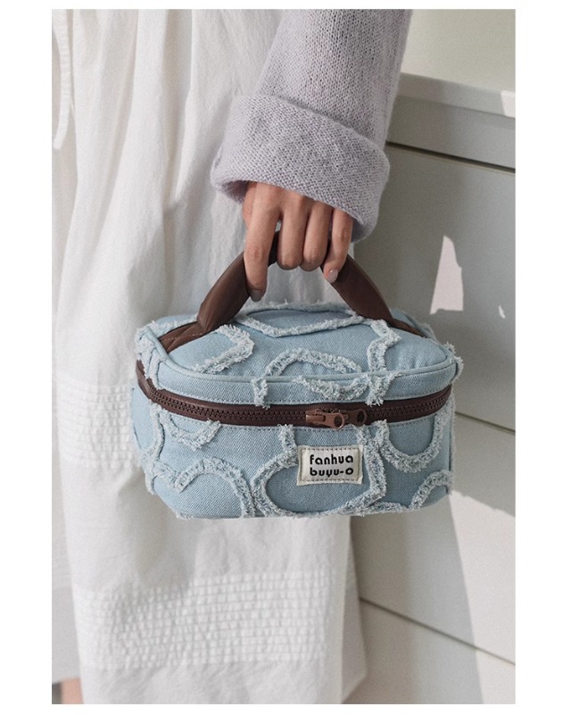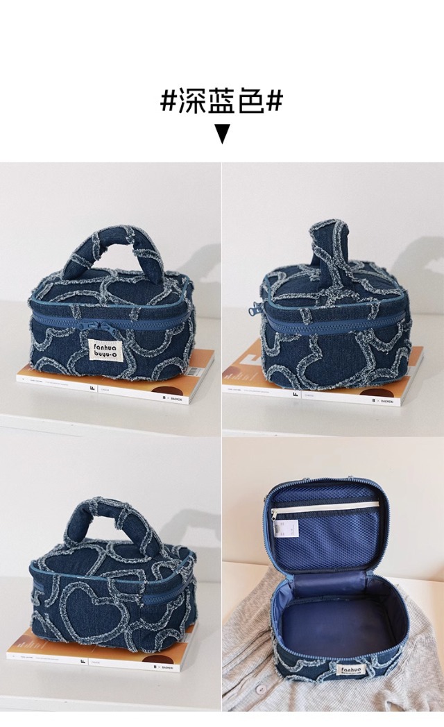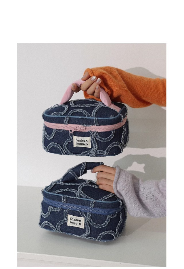 한국 스타일 간단한 귀여운 대용량 휴대용 화장품 가방 휴대용 여성용 세탁 데님 스킨 케어 보관 가방 세탁 가방