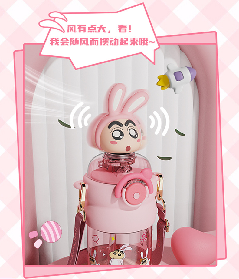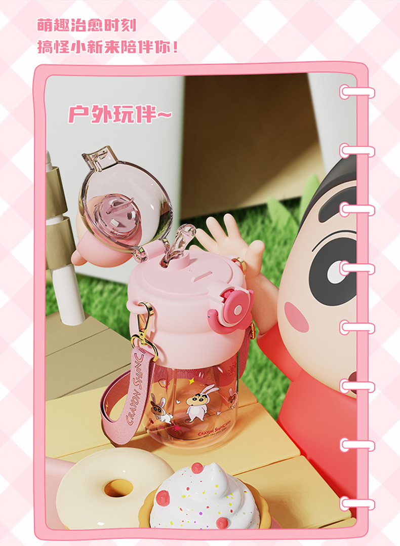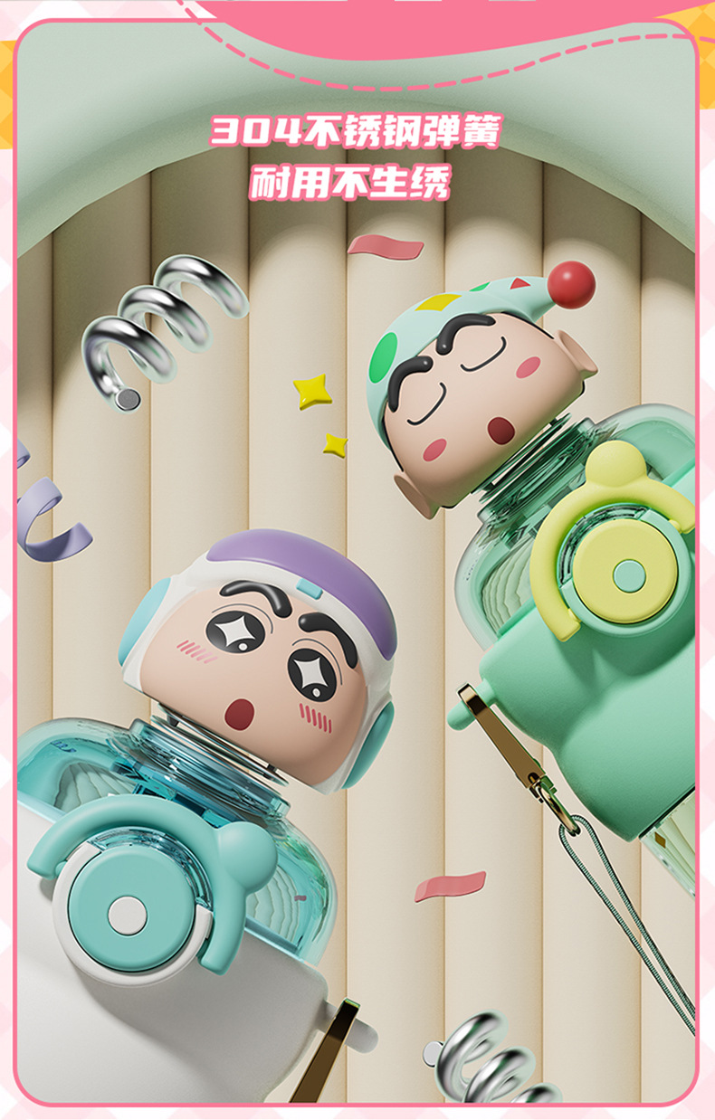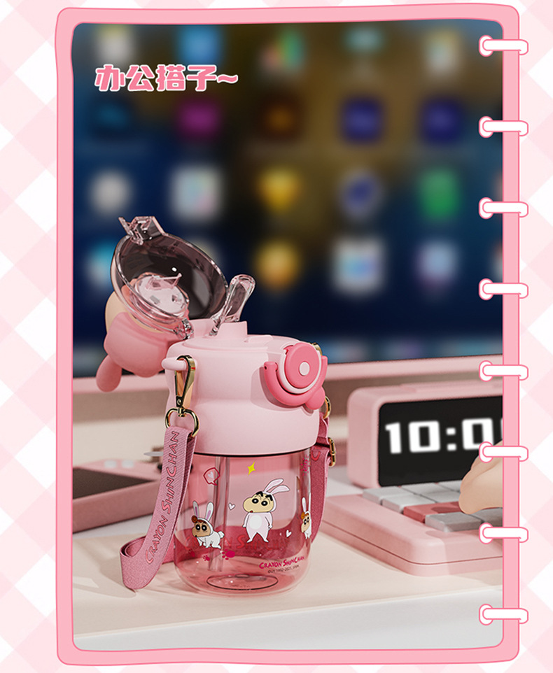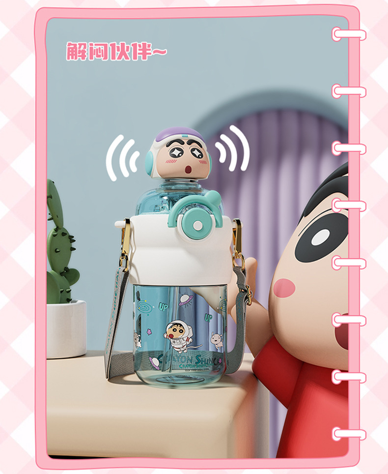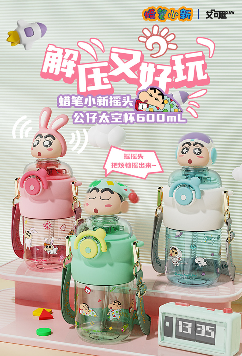 산리오 크레용 작은 새 귀여운 쉐이크 헤드 인형 우주 컵 트리탄 소재 밀짚 스트랩 휴대용 누출 방지