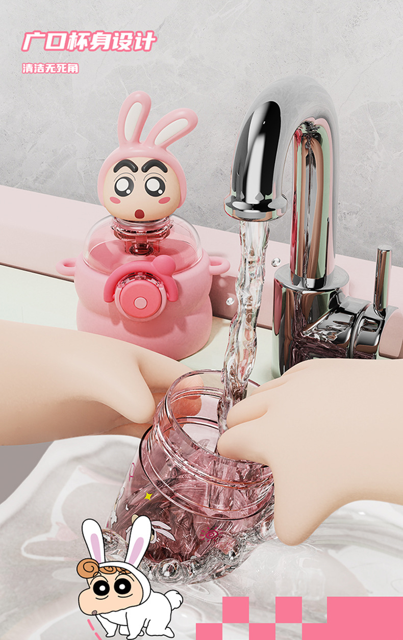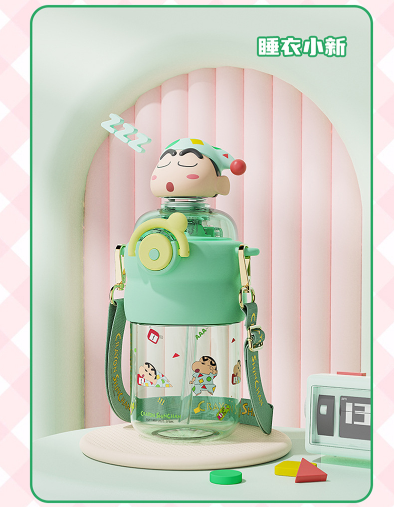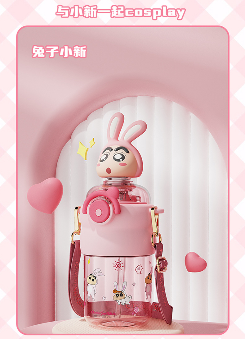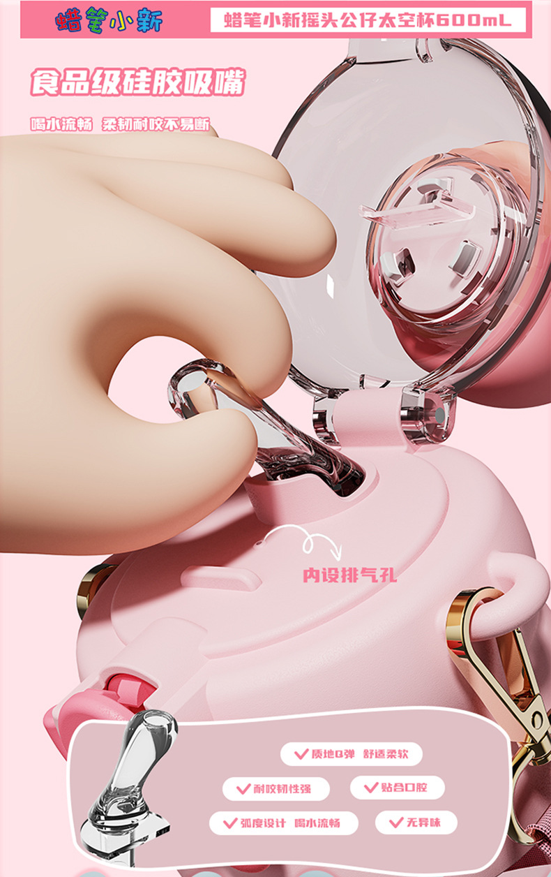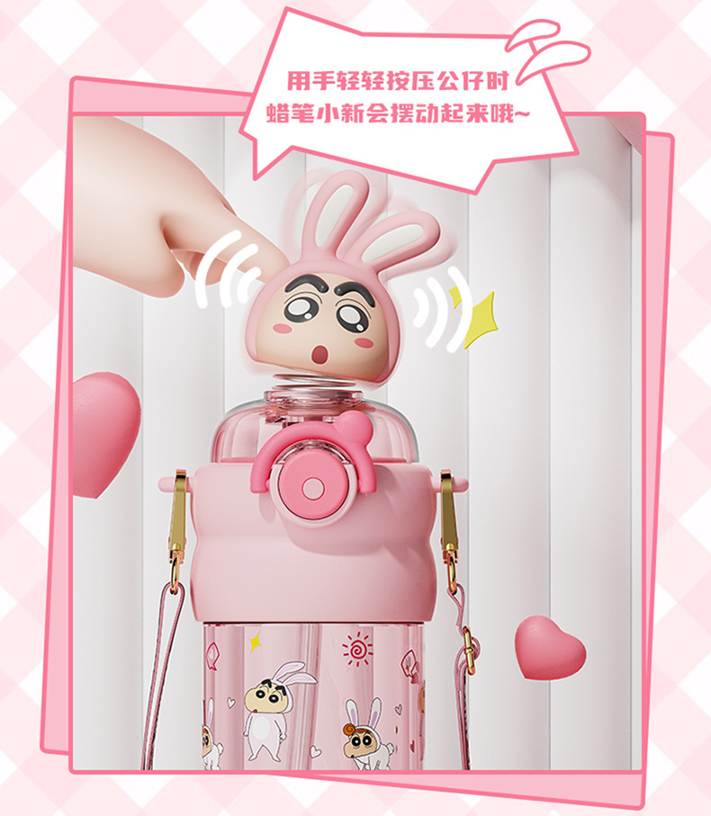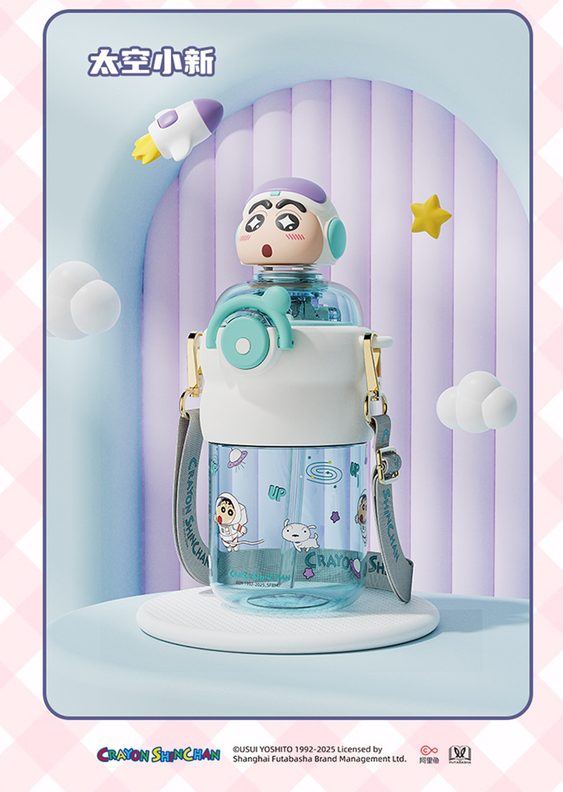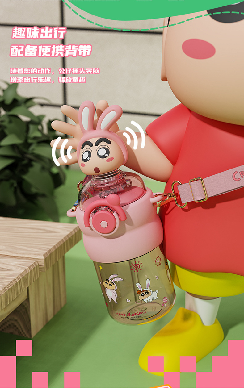 산리오 크레용 작은 새 귀여운 쉐이크 헤드 인형 우주 컵 트리탄 소재 밀짚 스트랩 휴대용 누출 방지
