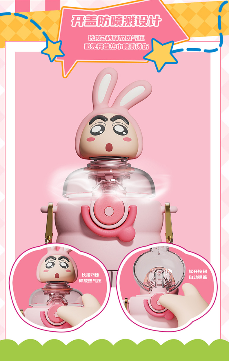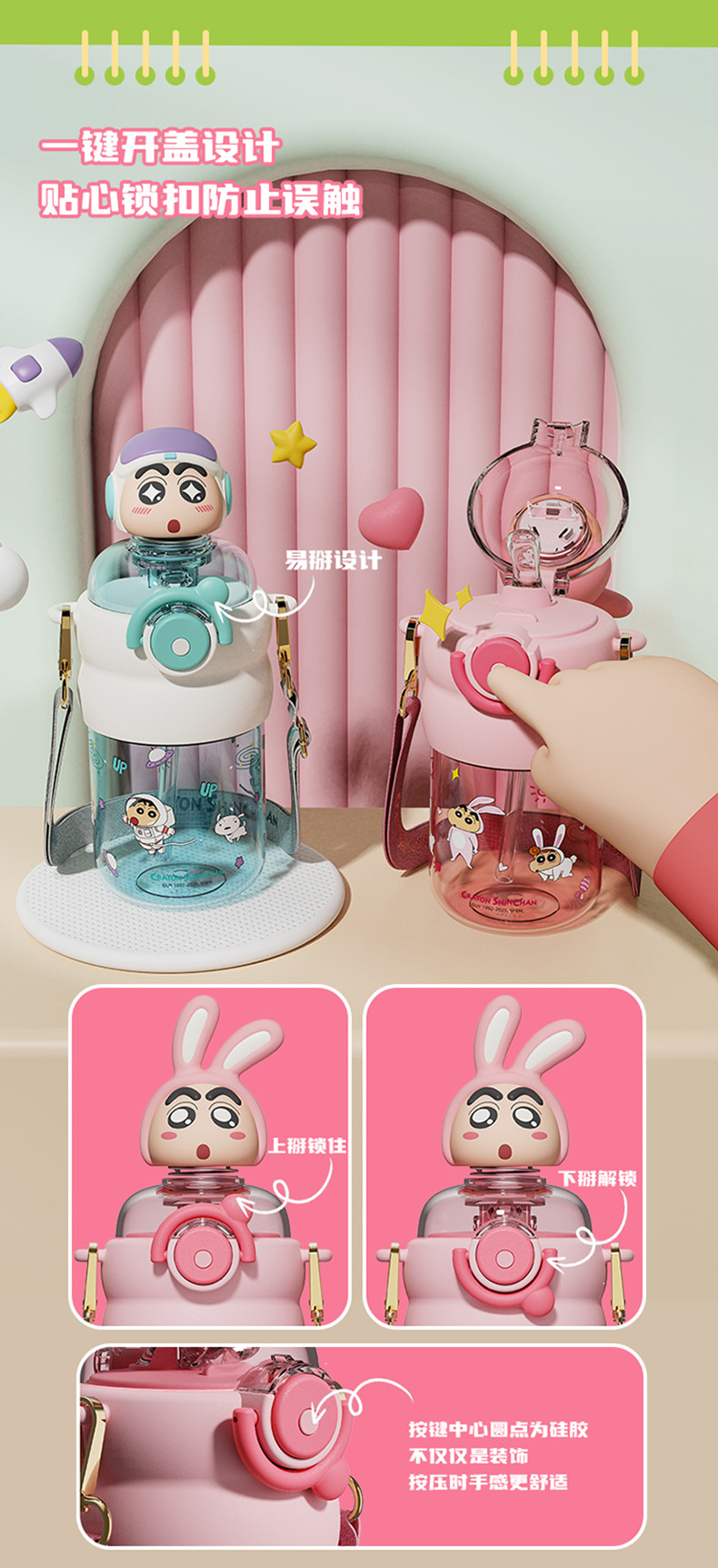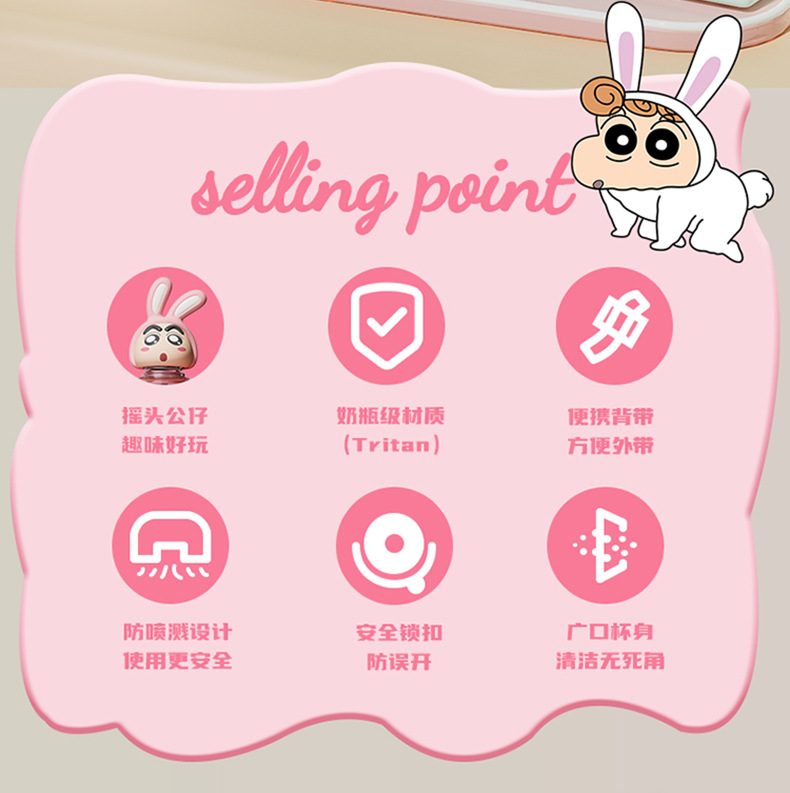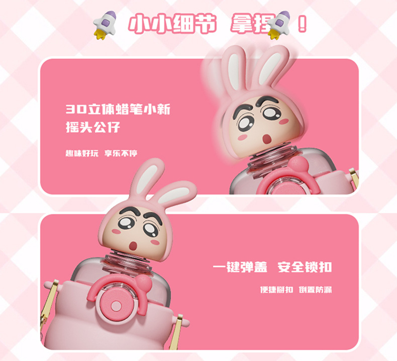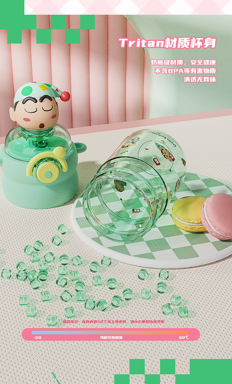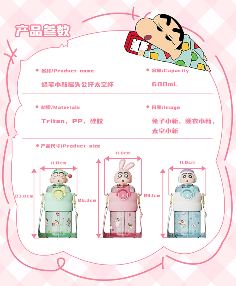 산리오 크레용 작은 새 귀여운 쉐이크 헤드 인형 우주 컵 트리탄 소재 밀짚 스트랩 휴대용 누출 방지