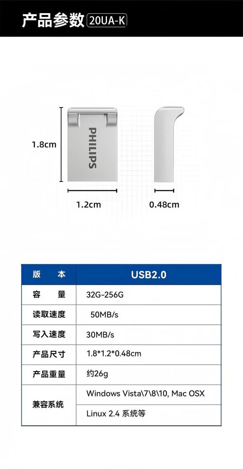 필립스 자동차 U 디스크 모바일 저장 금속 미니 사무실 컴퓨터 USB 2.0 맞춤형 선물 상자 도매스토어 가기