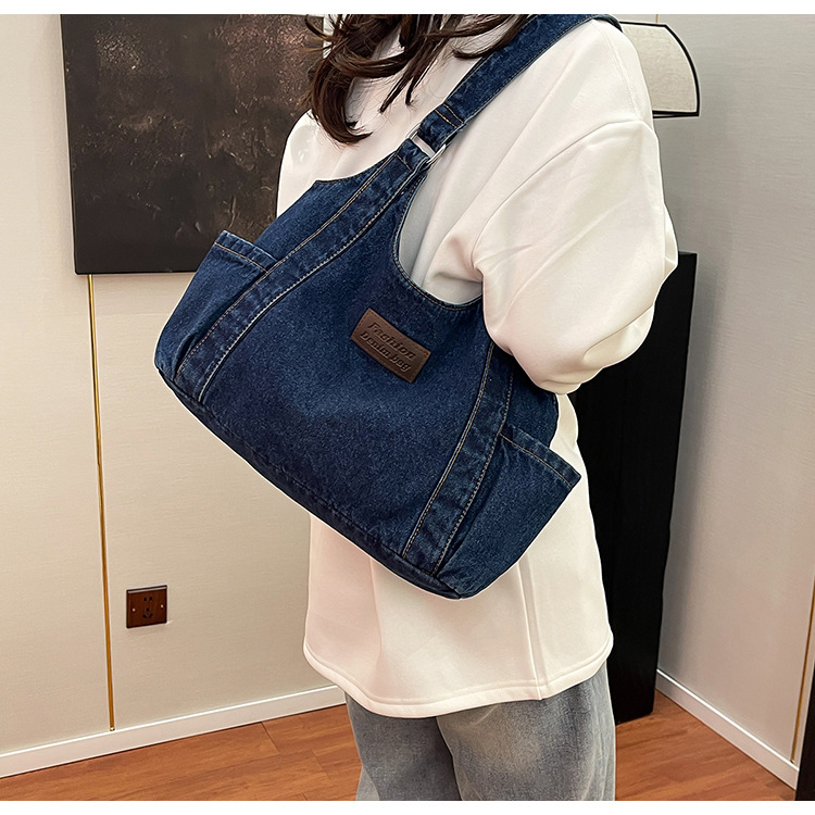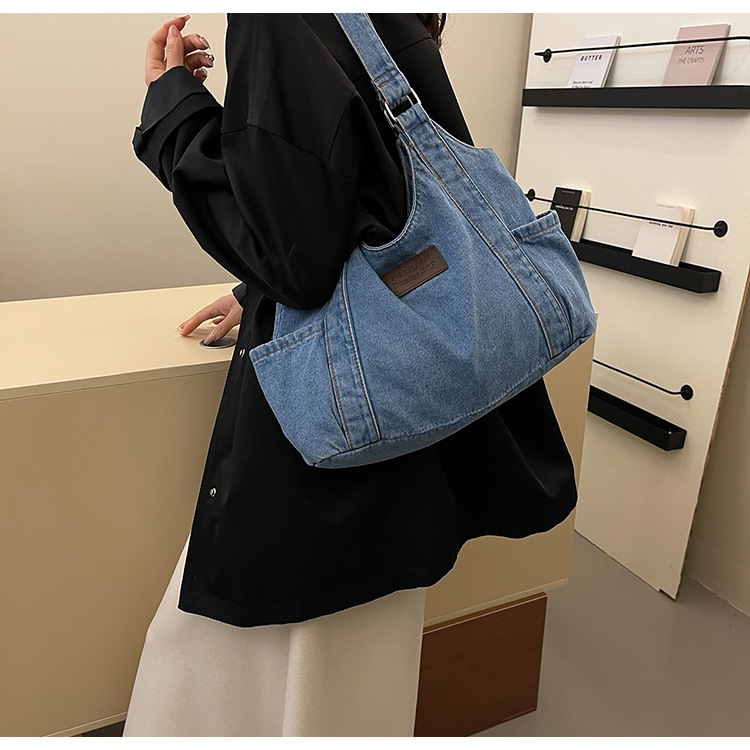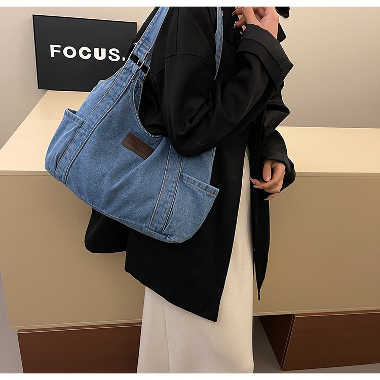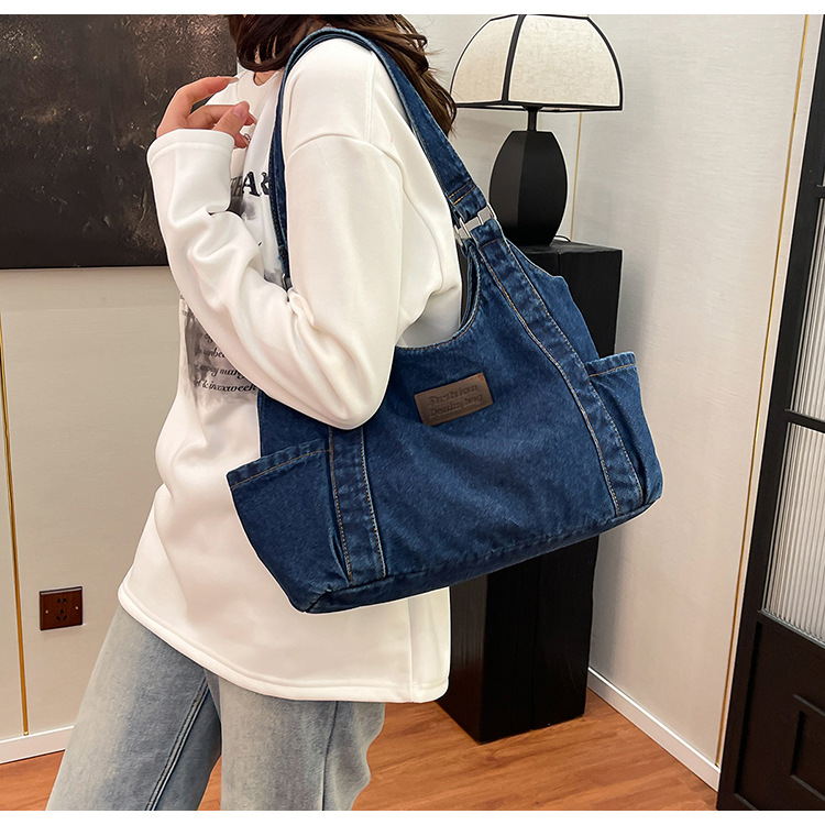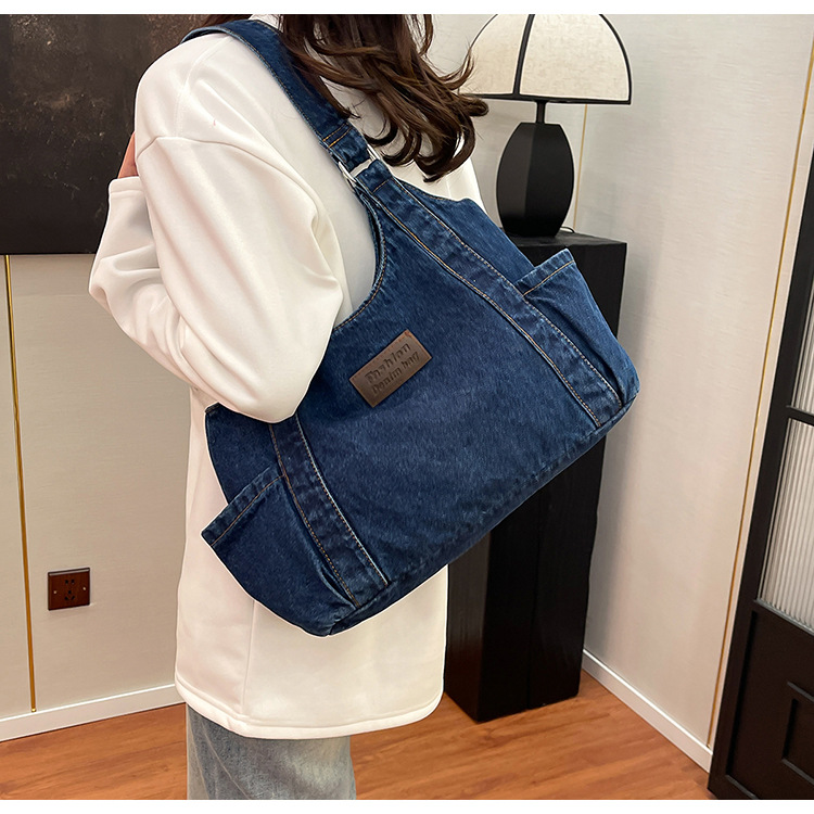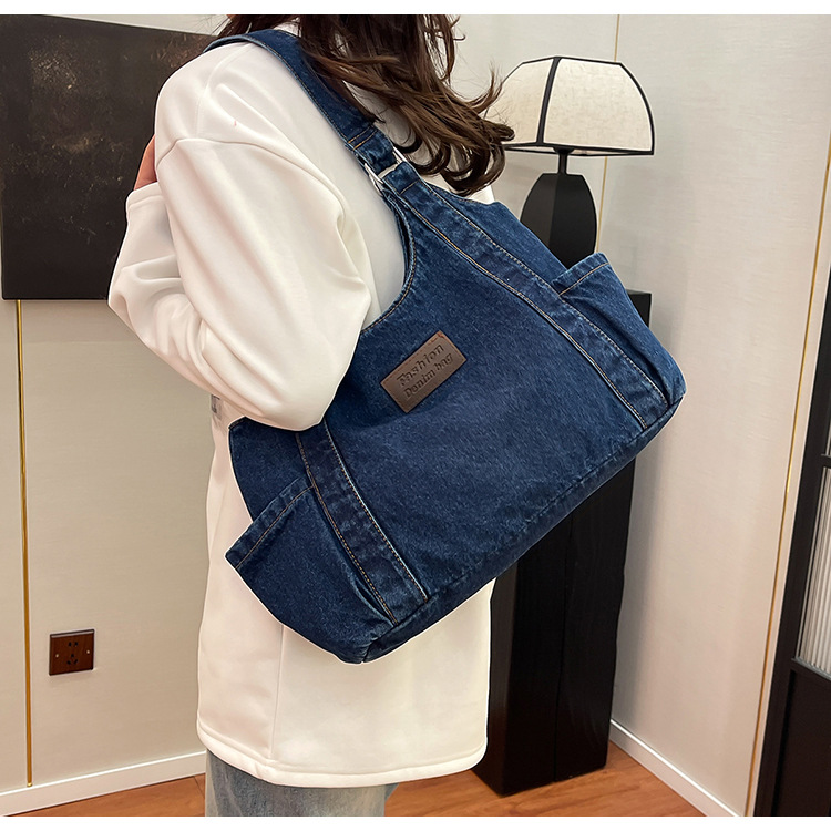 데님 캔버스 어깨 여성 가방 새로운 대용량 쇼핑백 틈새 예술적 토트 백 캐주얼 패션 핸드백스토어 가기