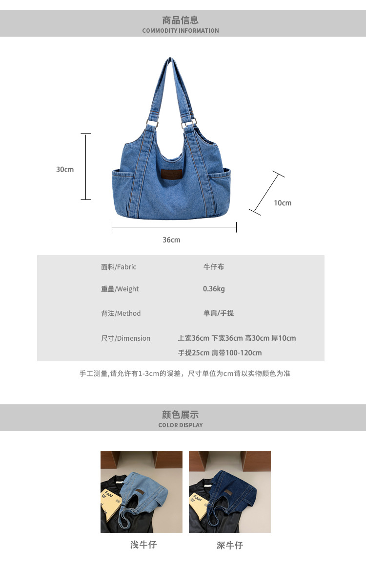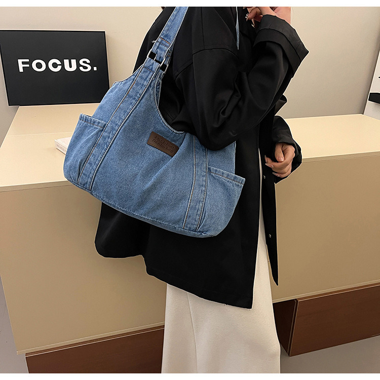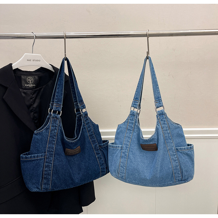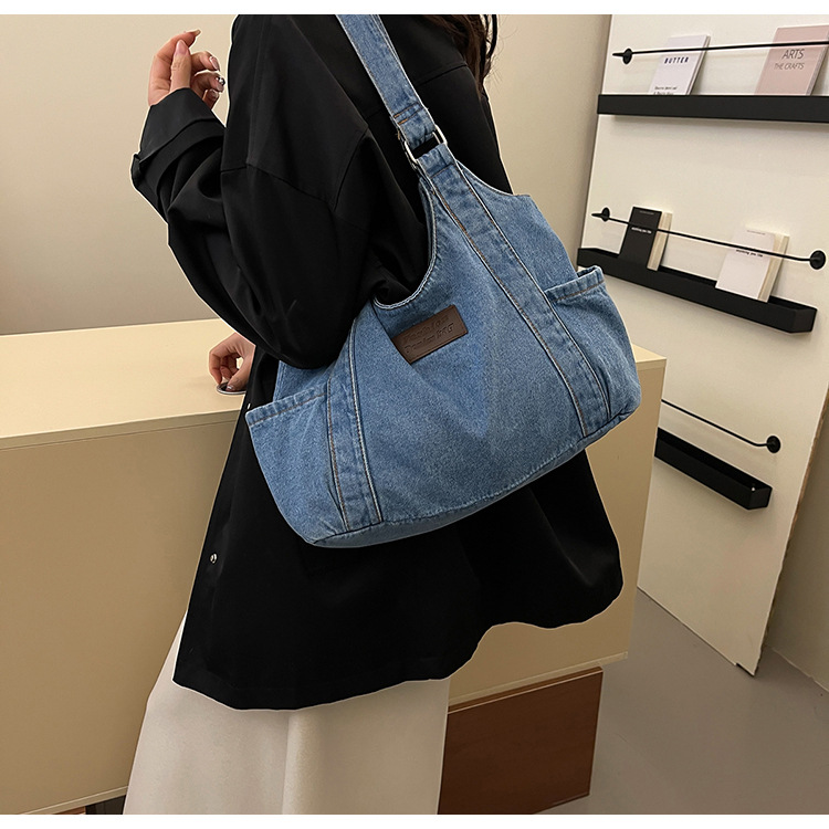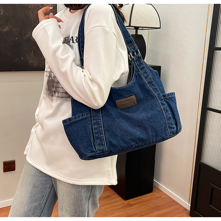 데님 캔버스 어깨 여성 가방 새로운 대용량 쇼핑백 틈새 예술적 토트 백 캐주얼 패션 핸드백스토어 가기