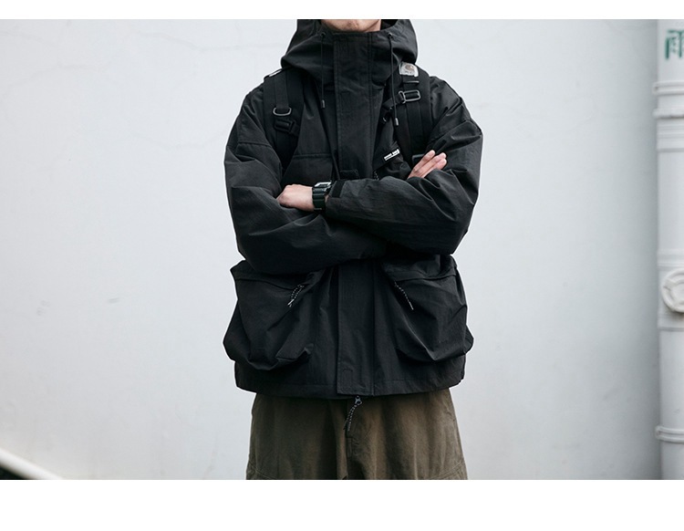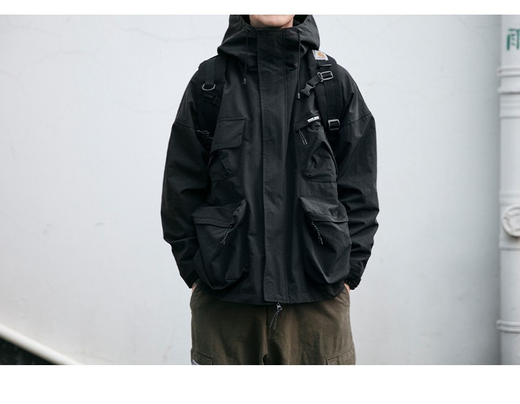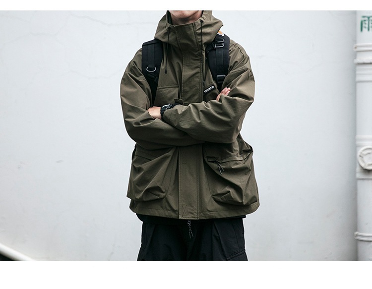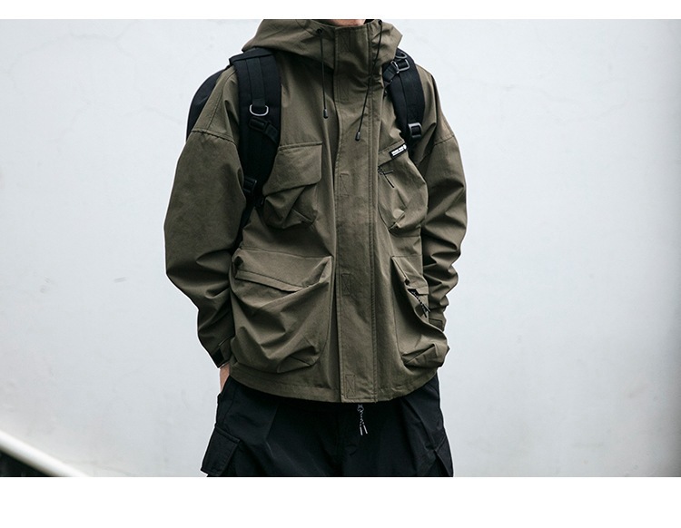 캐주얼 작업 재킷 긴 소매 가을 및 겨울 후드 러쉬 의류 트렌디 브랜드 느슨한 3 차원 포켓 머신 방풍 재킷 트렌디스토어 가기
