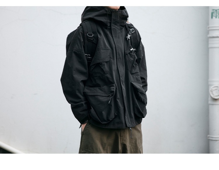 캐주얼 작업 재킷 긴 소매 가을 및 겨울 후드 러쉬 의류 트렌디 브랜드 느슨한 3 차원 포켓 머신 방풍 재킷 트렌디