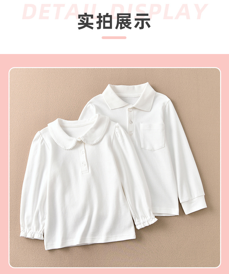 소녀의 단색 폴로 옷깃베이스 셔츠 어린 소녀의 흰색 학교 유니폼 내부 셔츠 소년의 면 긴 소매 셔츠스토어 가기