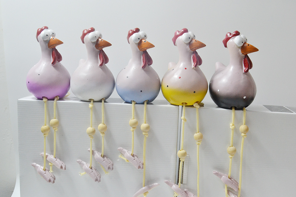 국경 간 큰 눈 매달려 발 닭 봄 호흡 울타리 수지 장식 정원 안뜰 긴 발 닭 장식품 도매