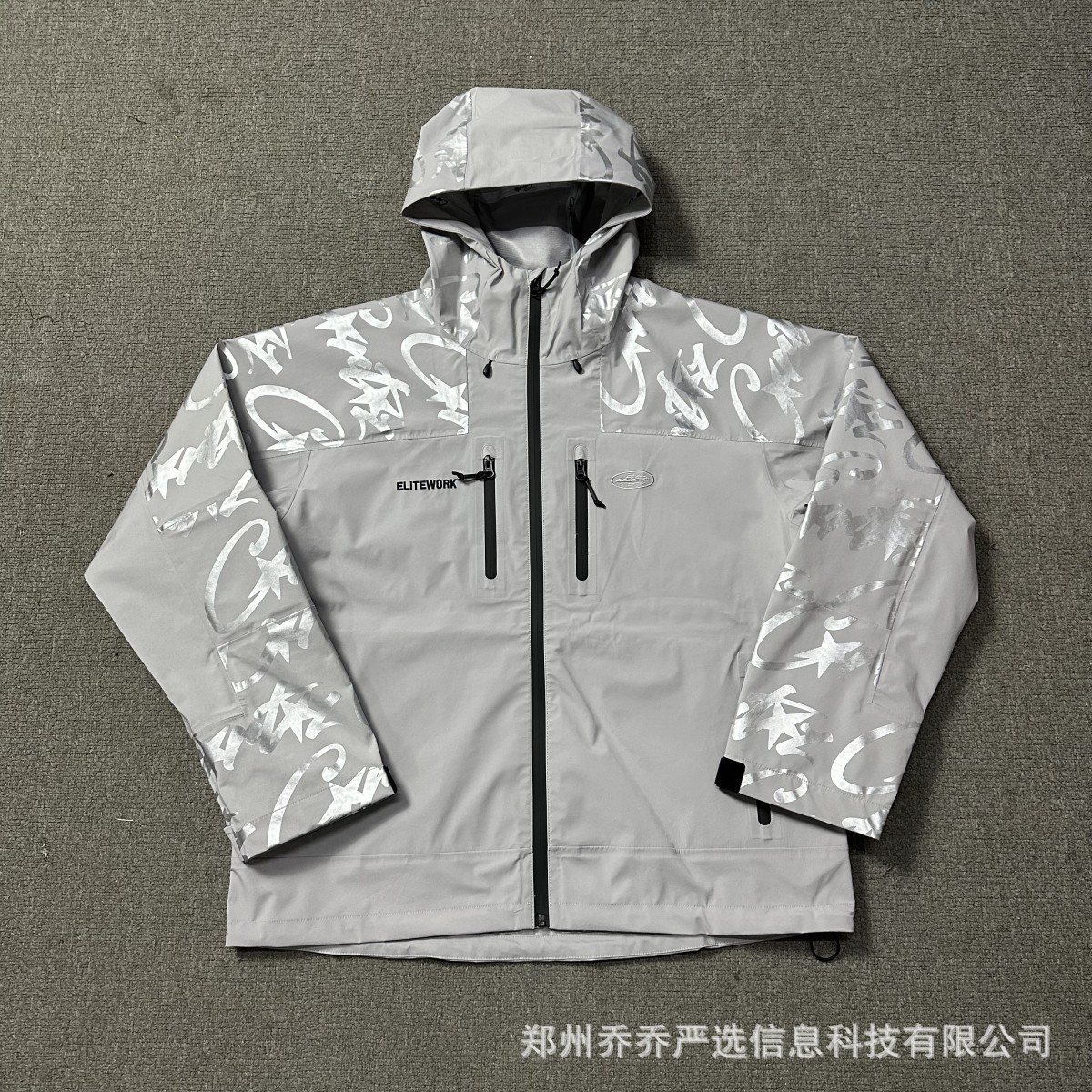 24SS 국경 간 Corteiz 트렌디 브랜드 Alcatraz Island 새로운 3 가지 방지 충전 옷 인쇄 남성과 여성의 셔츠 코트 가을스토어 가기