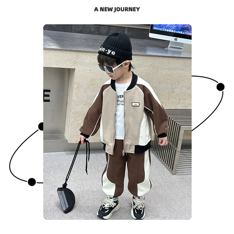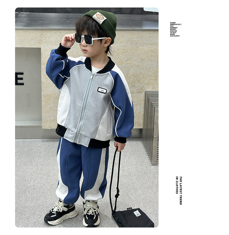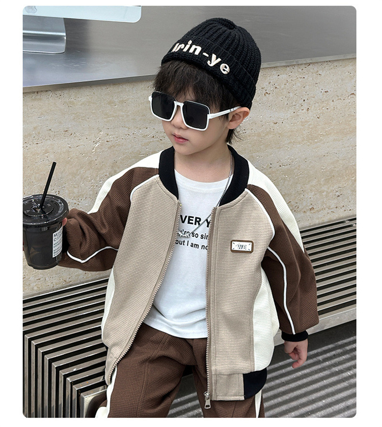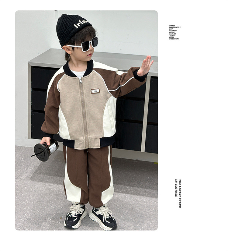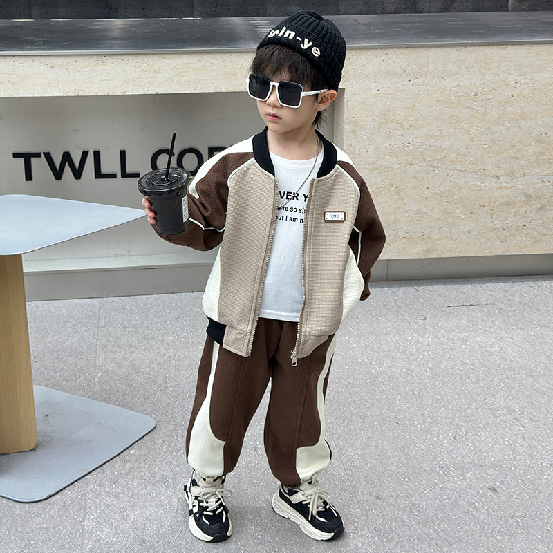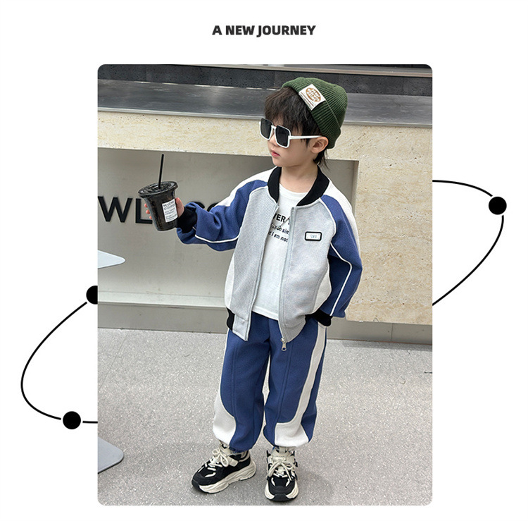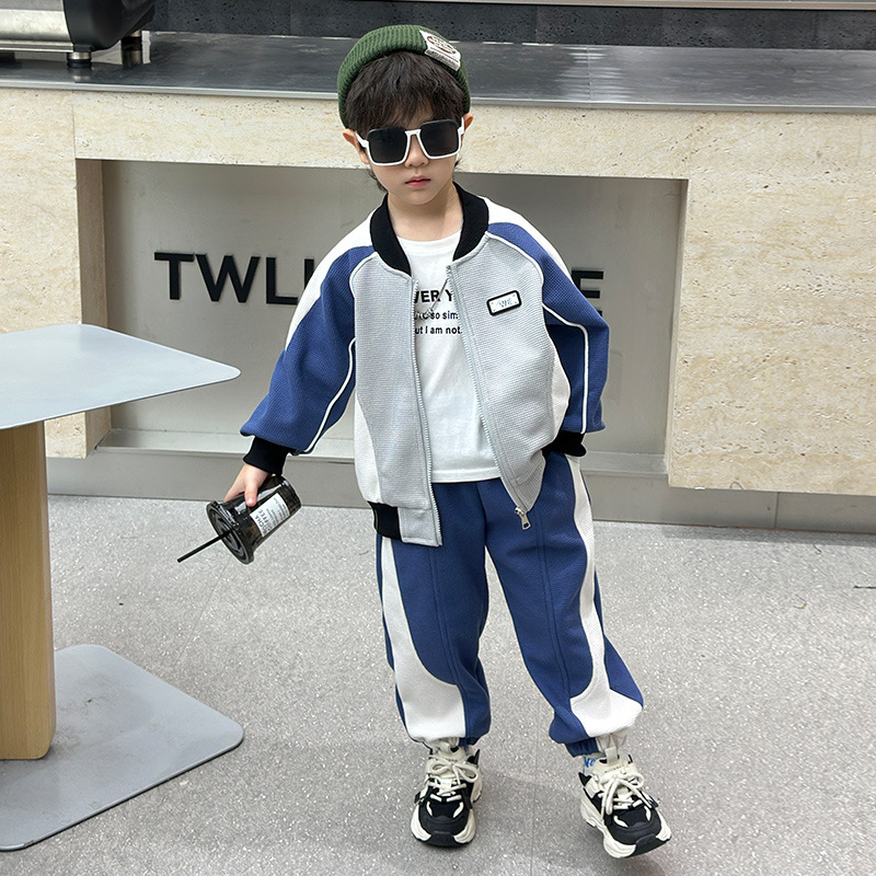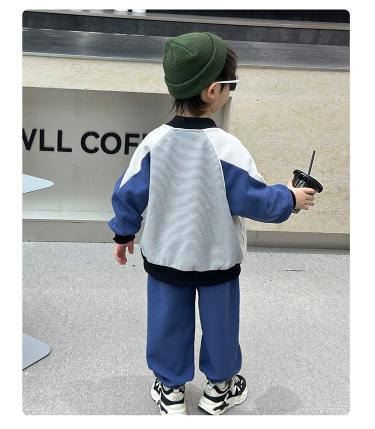 소년의 봄과 가을 니트 컬러 매칭 세트 2025 새로운 아동복 어린이 쿨 카디건 스포츠 투피스 세트스토어 가기
