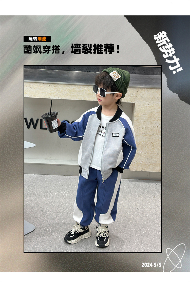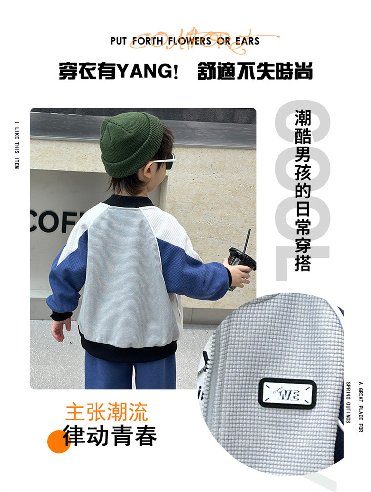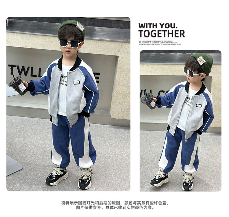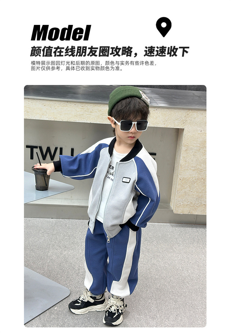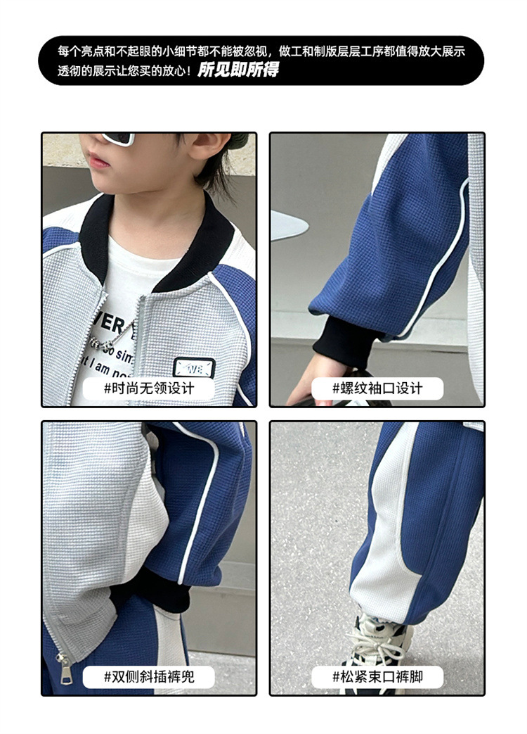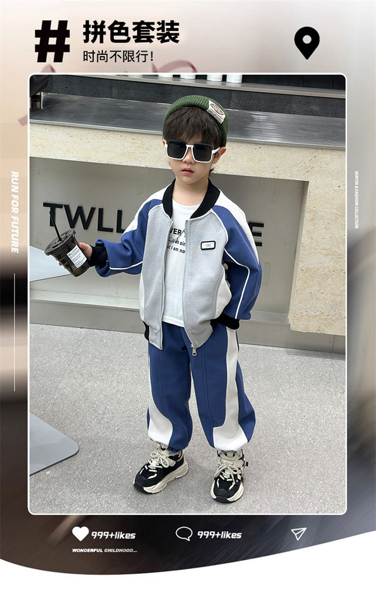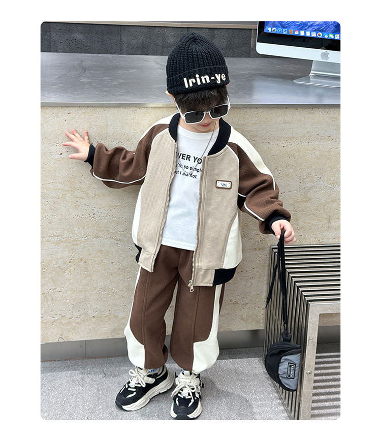 소년의 봄과 가을 니트 컬러 매칭 세트 2025 새로운 아동복 어린이 쿨 카디건 스포츠 투피스 세트스토어 가기