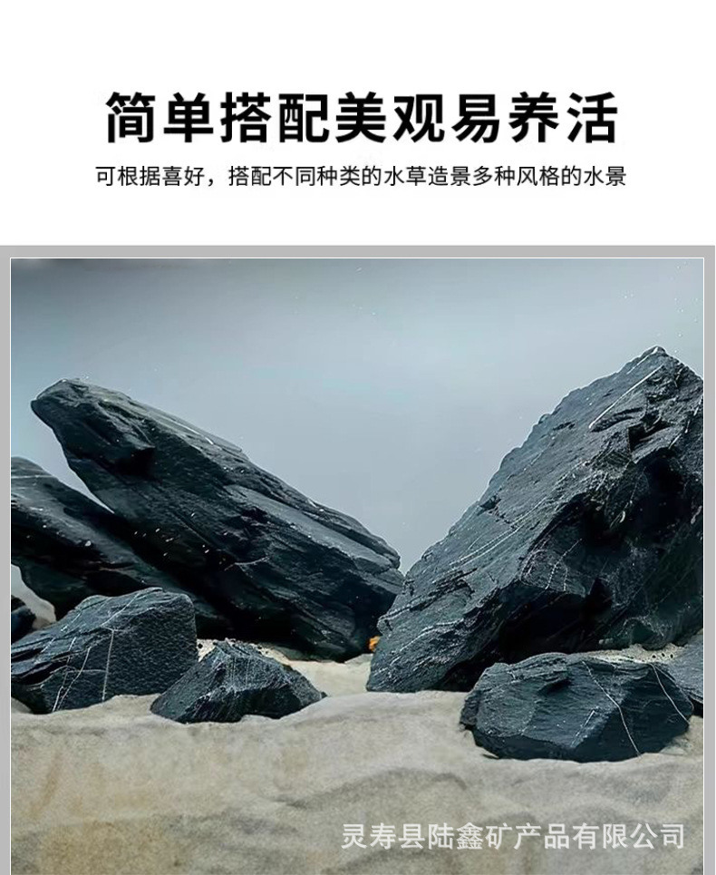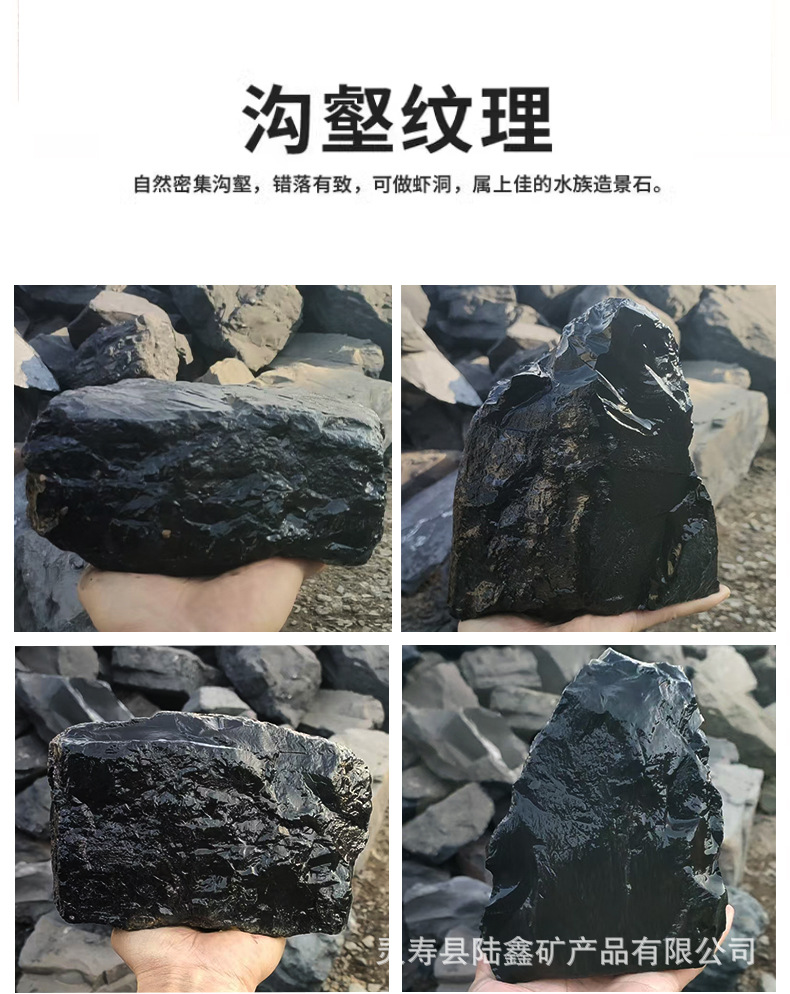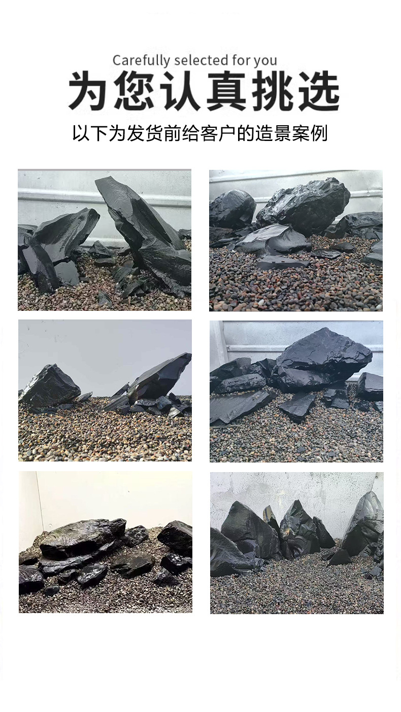 黑金石原石鱼缸天然造景装饰石摆件装饰黑石溪流石黑金峡谷石批发
