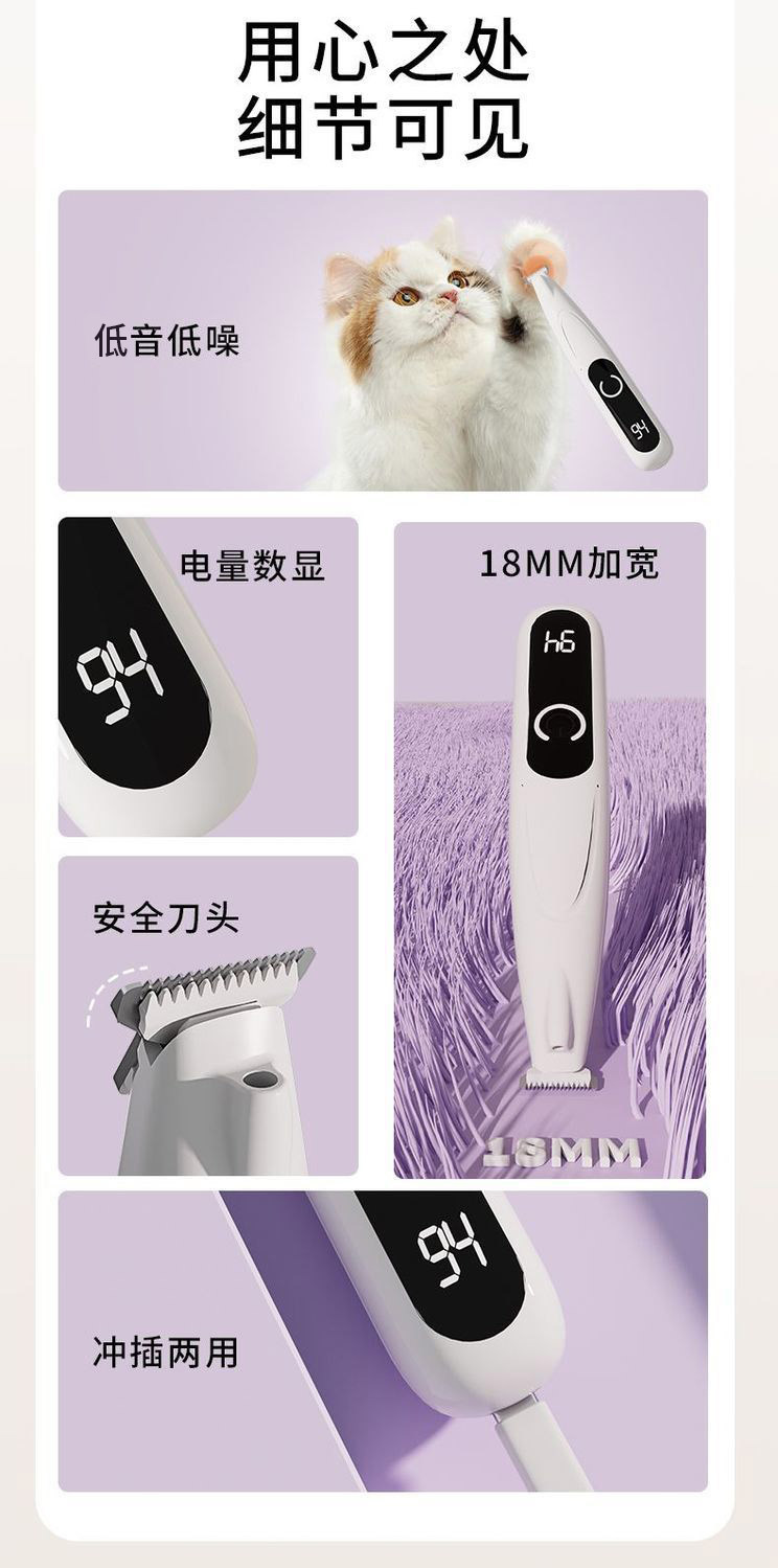 공장 LED 가벼운 애완 동물 머리 면도 개 고양이 발 머리 면도 발 머리 면도 발 머리 전기 푸셔 개 머리