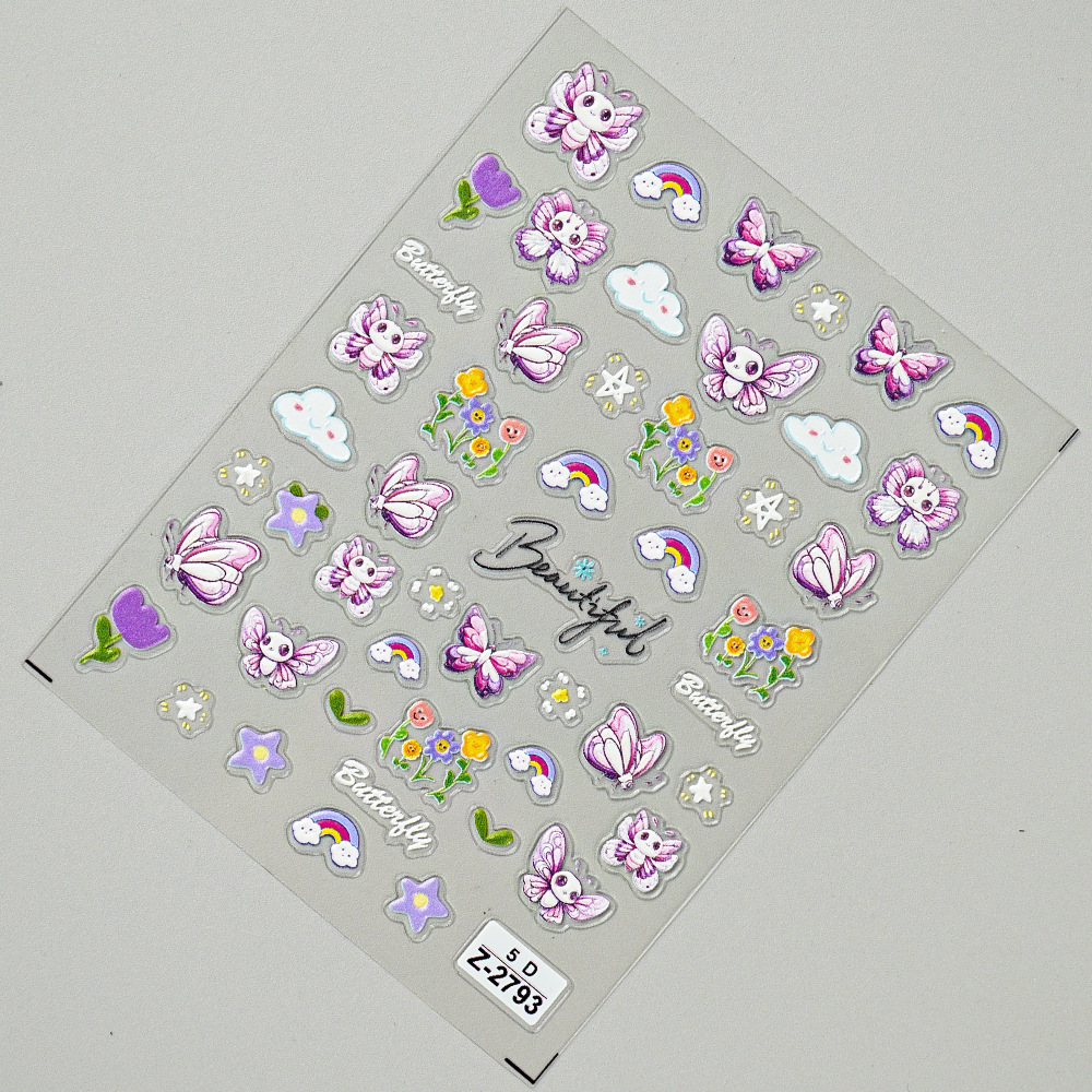 Redanco 새로운 5D 구호 그물 빨간 만화 나비 아기 네일 스티커 스테레오 네일 스티커 Z-2793