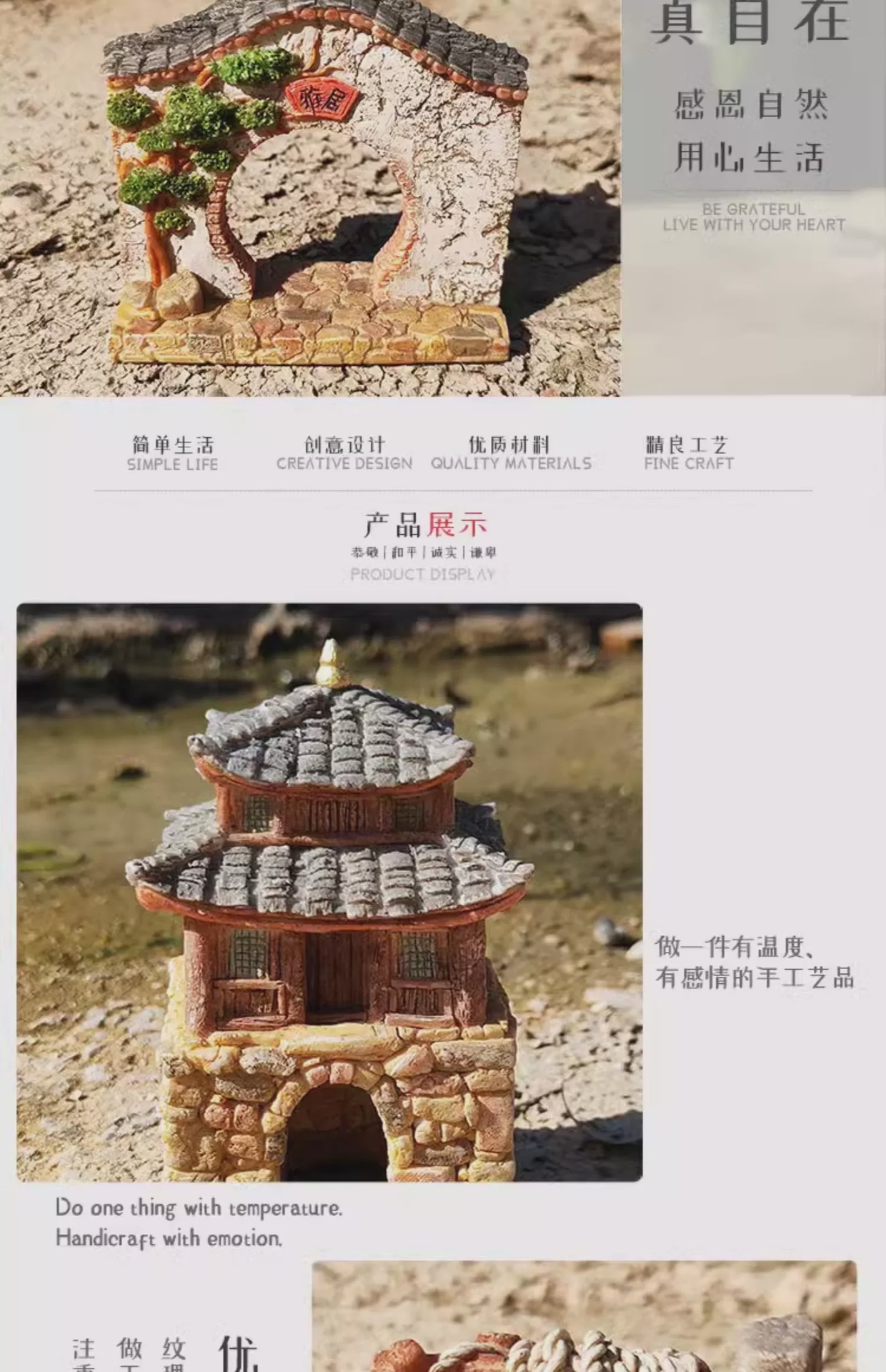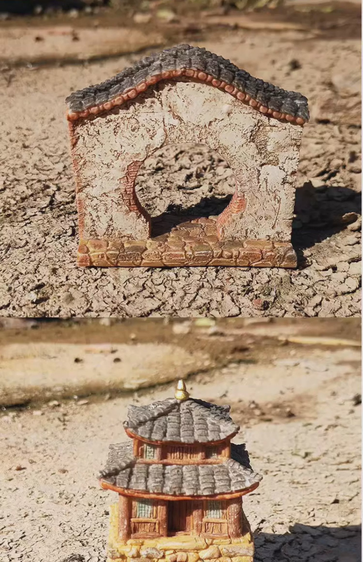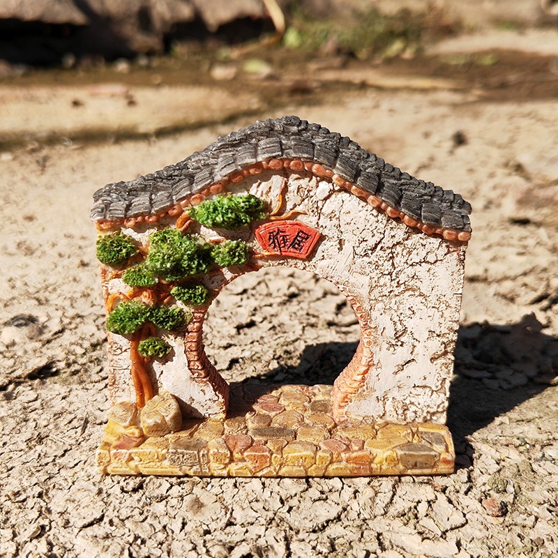 농촌 목가적 인 오래된 집 장식 작은 돌 다리 데스크탑 창조적 인 마이크로 풍경 조경 안뜰 거실 선물