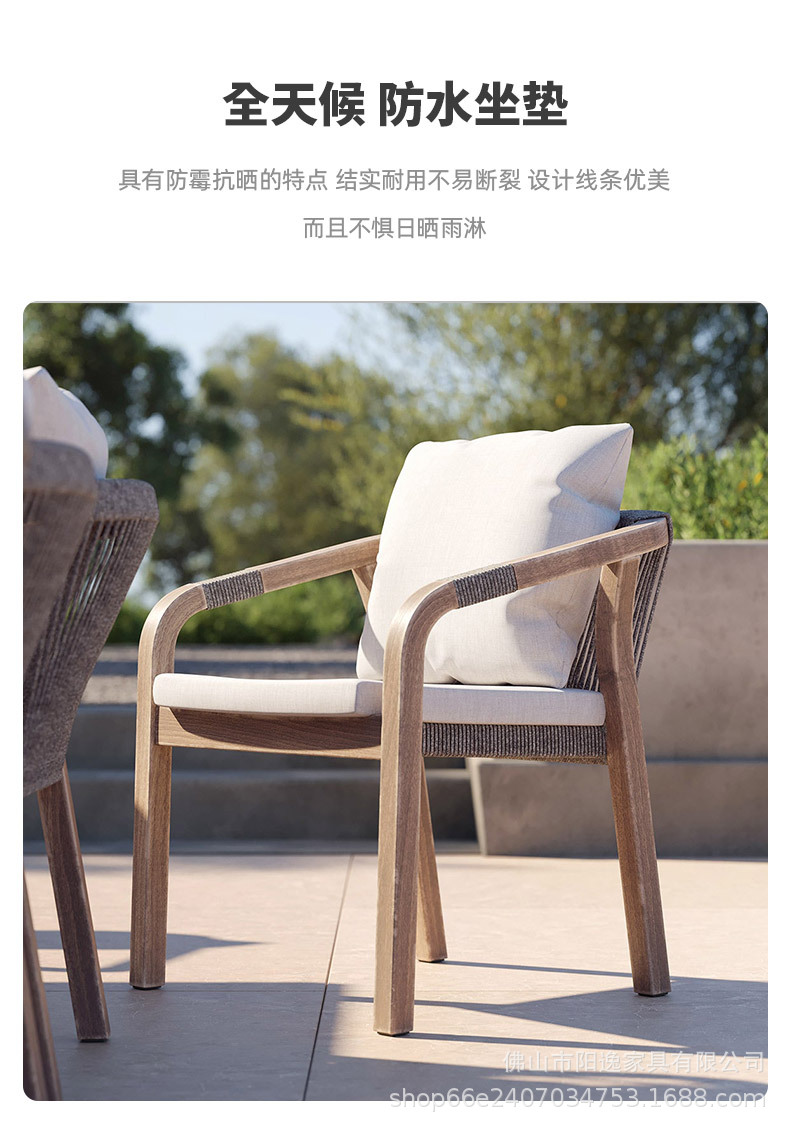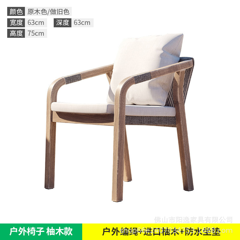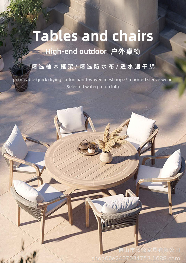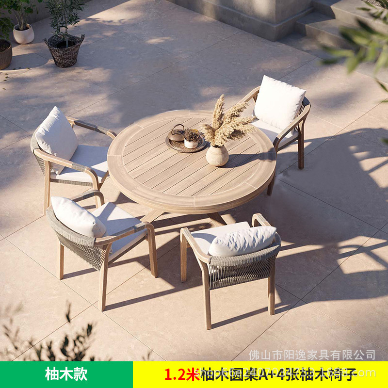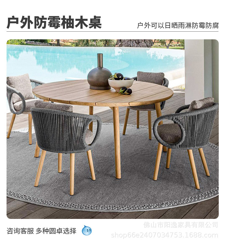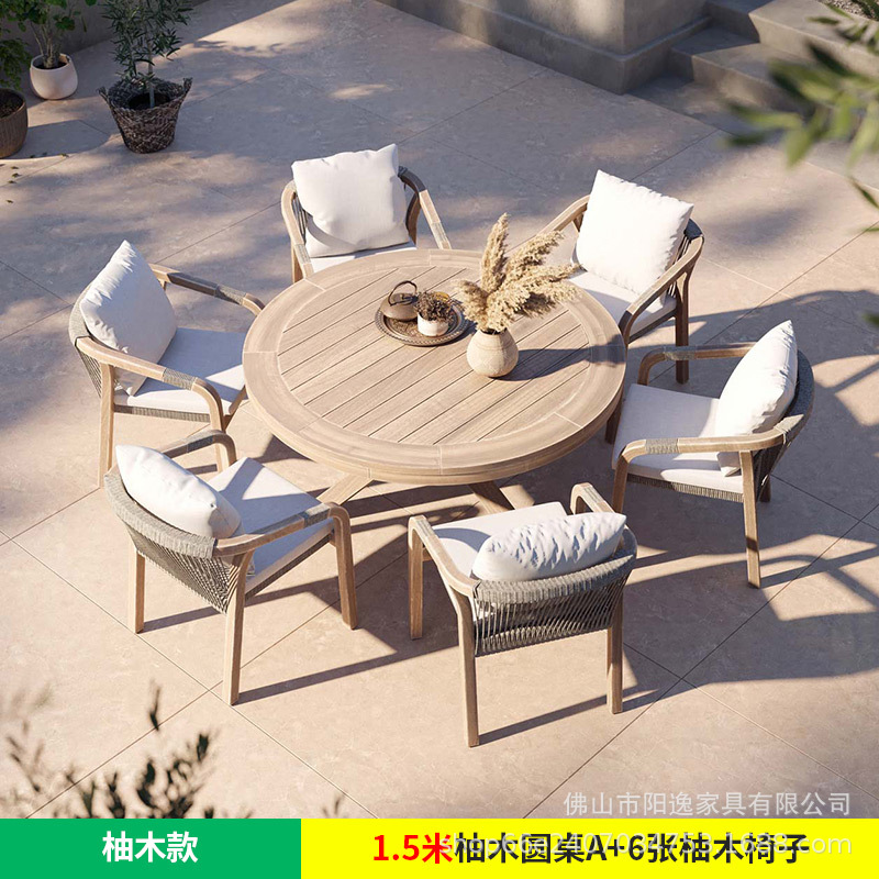 북유럽 야외 로프 테이블과 의자 레저 빌라 코트야드 정원 야외 방수 선 스크린 솔리드 우드 다이닝 테이블과 의자 조합스토어 가기