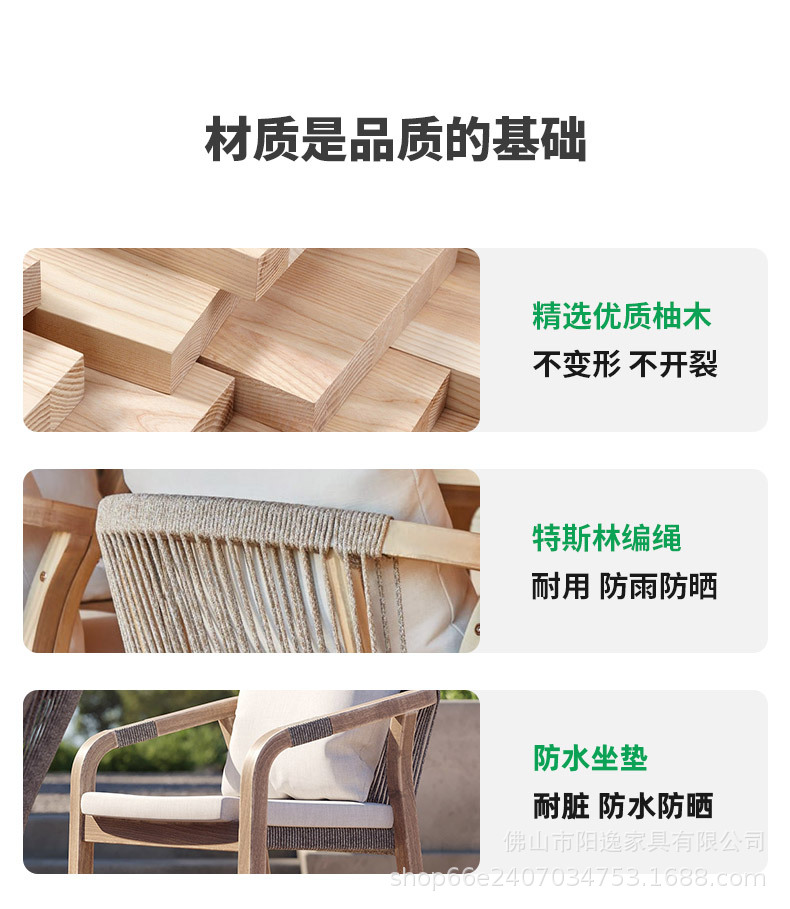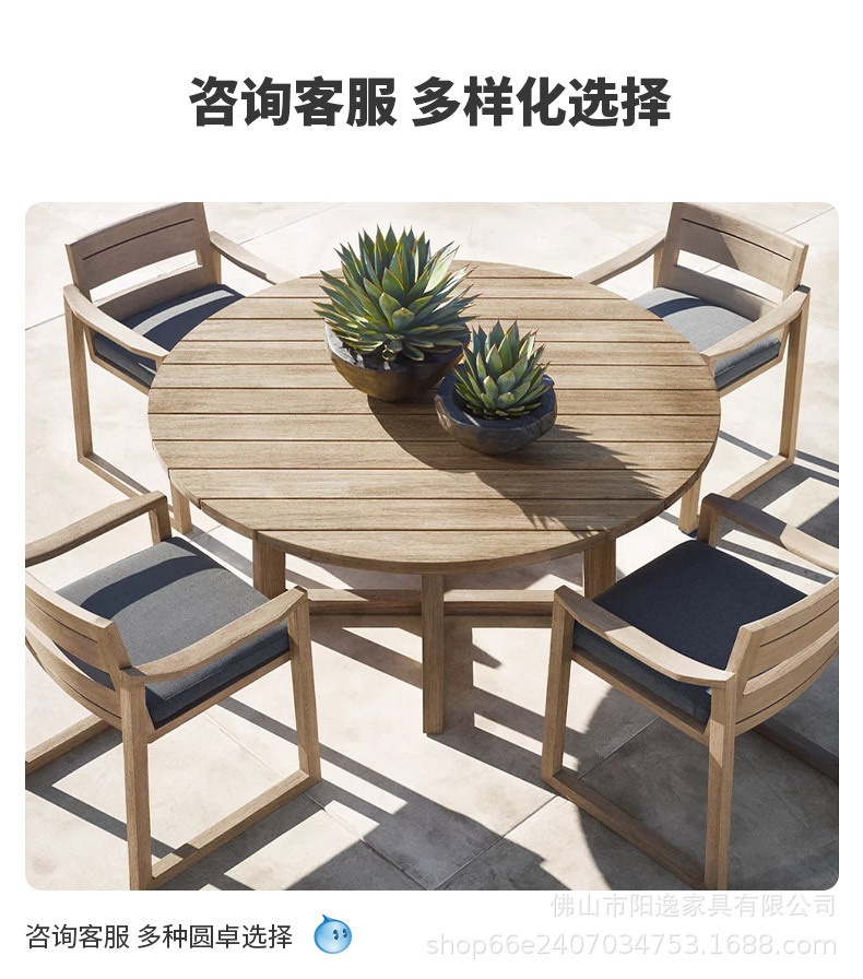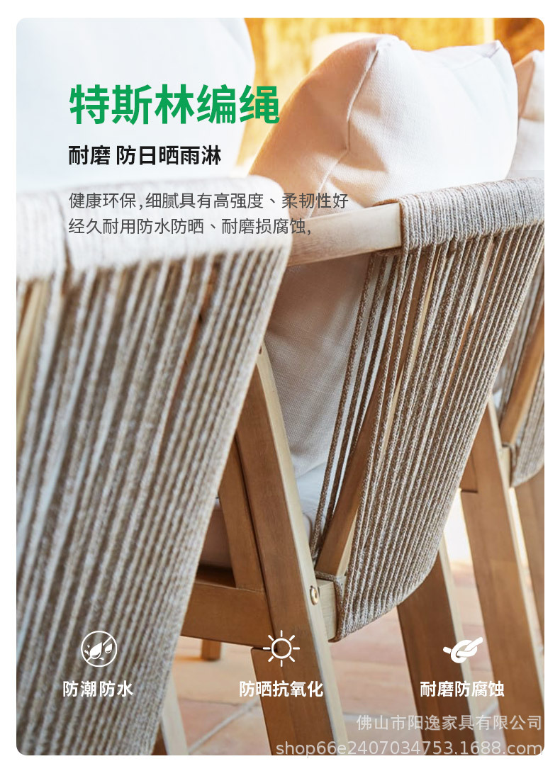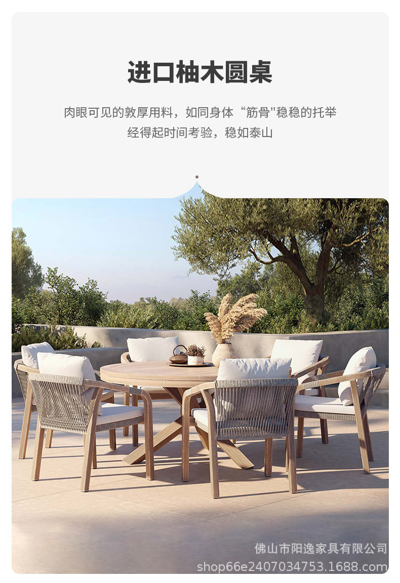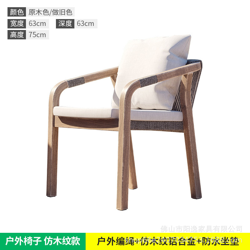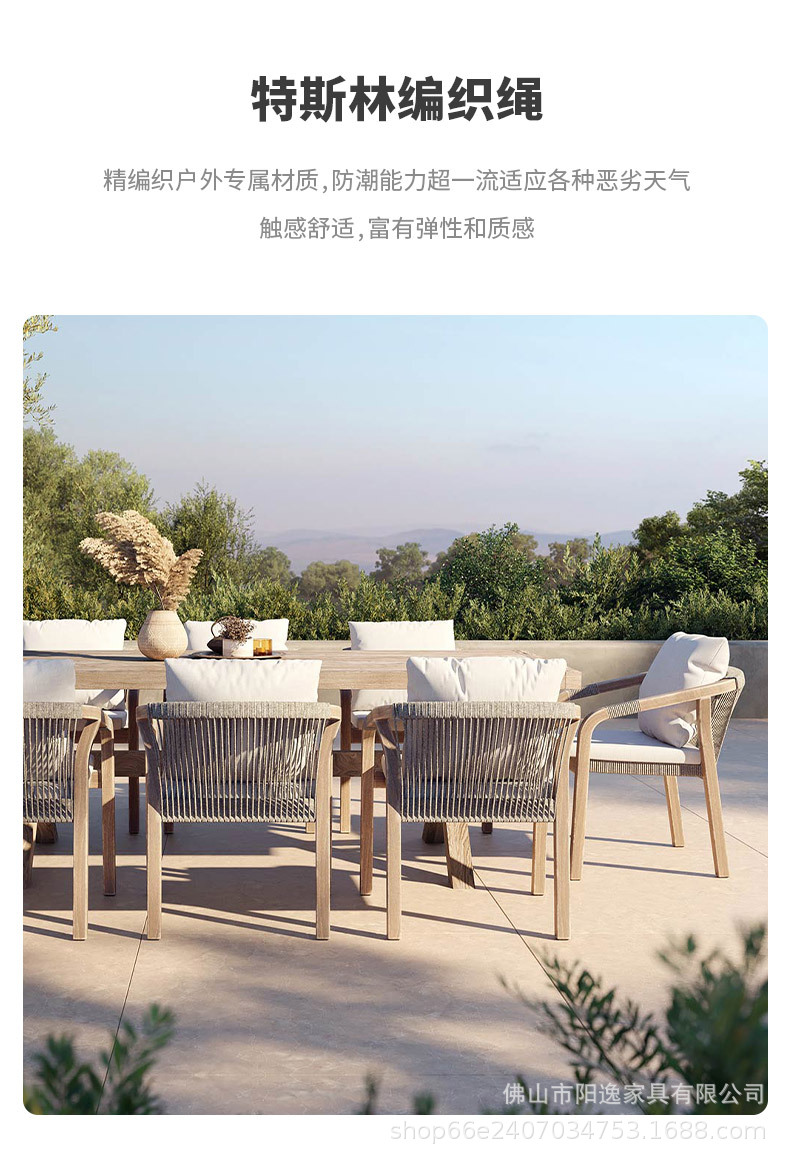 북유럽 야외 로프 테이블과 의자 레저 빌라 코트야드 정원 야외 방수 선 스크린 솔리드 우드 다이닝 테이블과 의자 조합스토어 가기