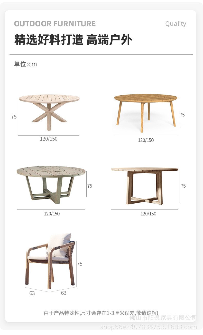 • 1.5M 원형 테이블 + 야외용 의자 6개 [티크 모델]