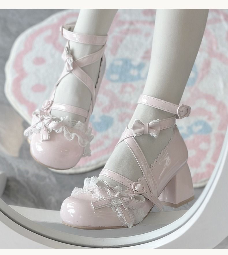 봄 2025 새로운 라운드 헤드 메리 제인 작은 가죽 신발 로리타 활 공주 스타일 높은 다리 긴 신발
