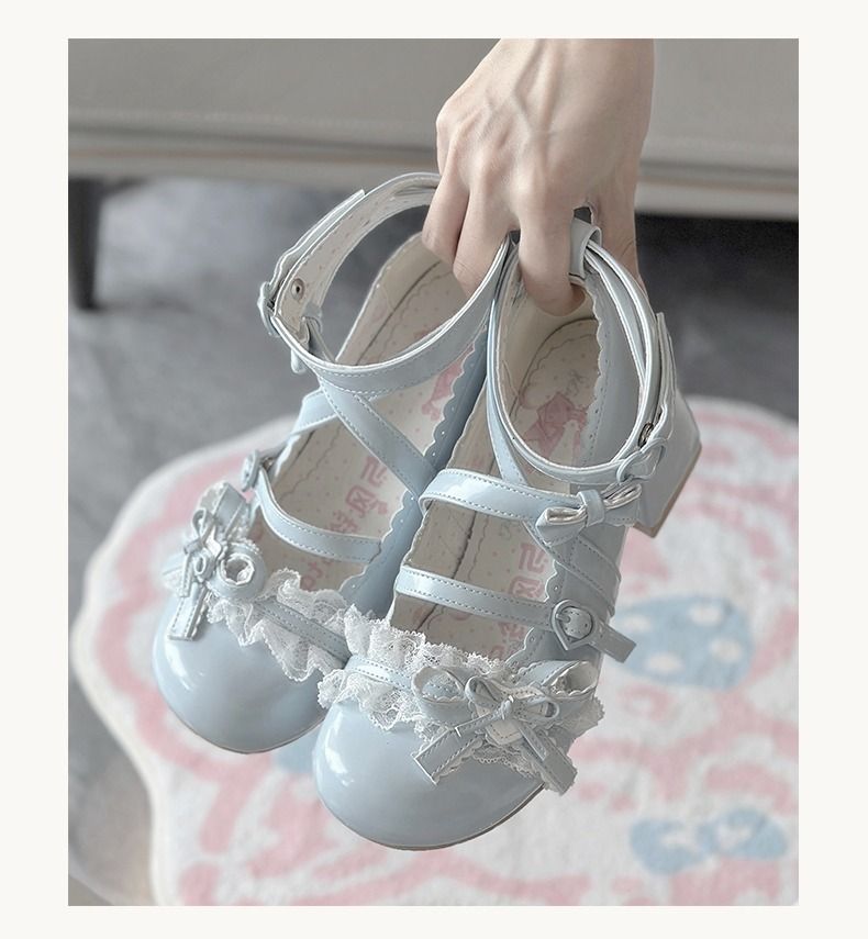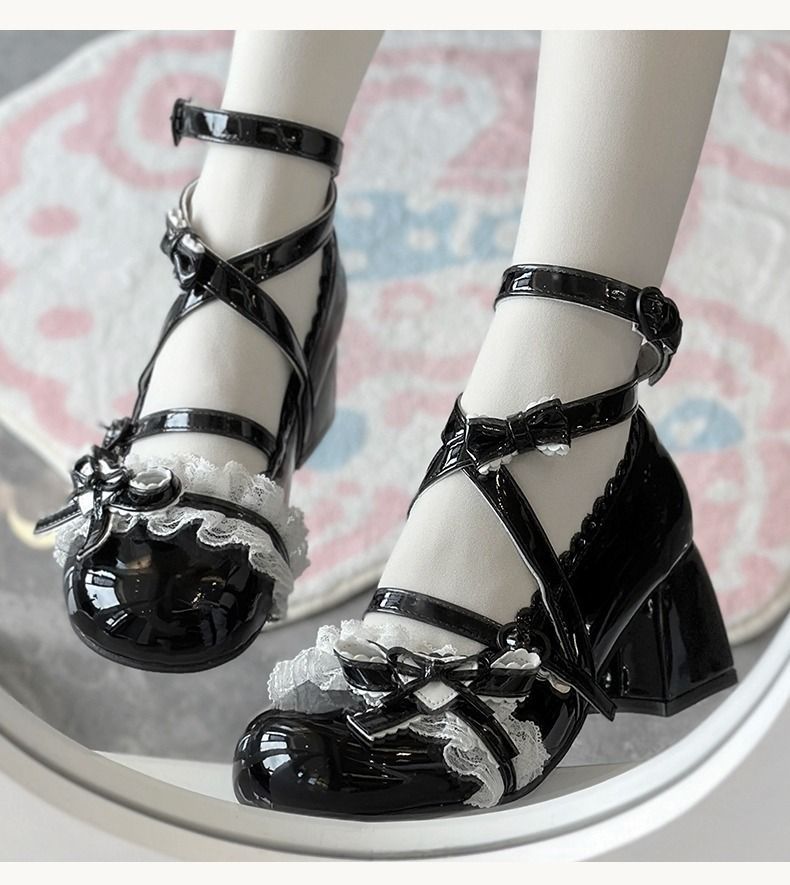 봄 2025 새로운 라운드 헤드 메리 제인 작은 가죽 신발 로리타 활 공주 스타일 높은 다리 긴 신발스토어 가기