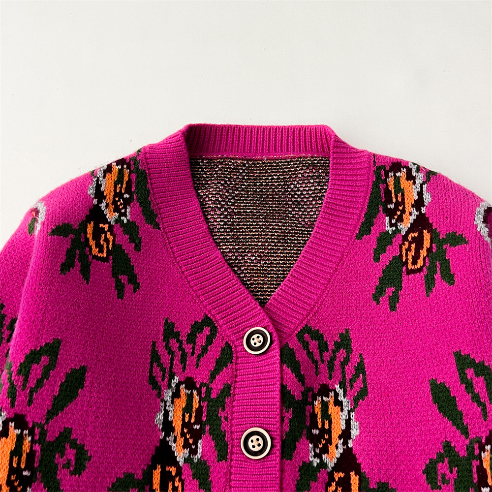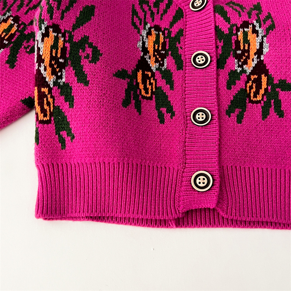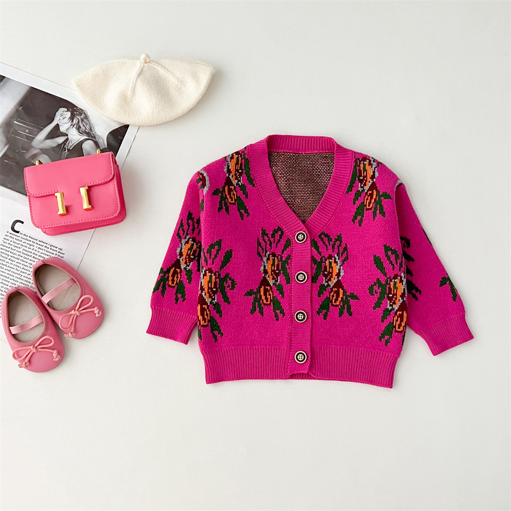 2024 가을 겨울 니트 아동복 세트 여아 민족풍 프린트 스웨터 가디건 + 반바지 여아 민족풍스토어 가기