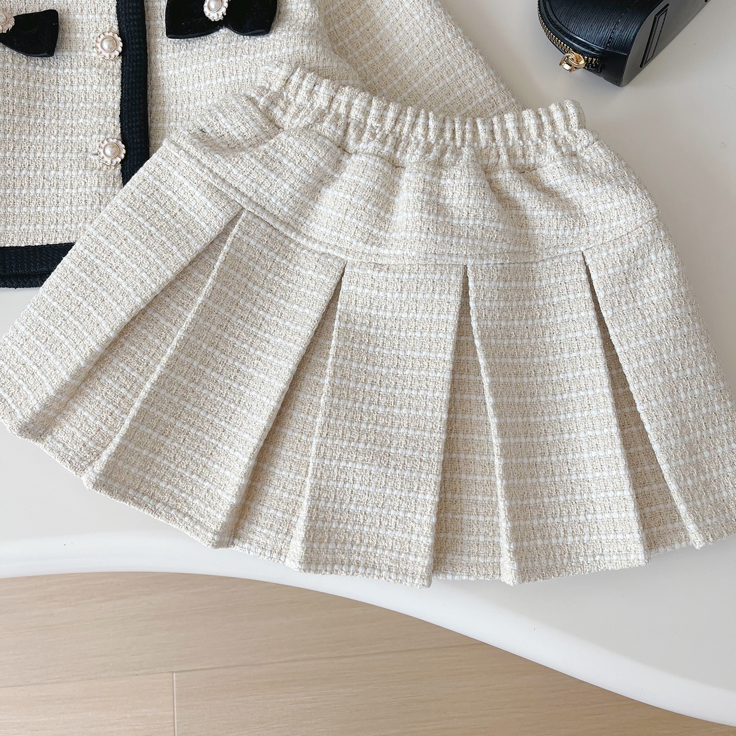 2025 가을 신상 여아용 샤넬 스타일 가디건 스커트 세트 베이비 레이디 코트 플리츠 스커트 투피스 세트