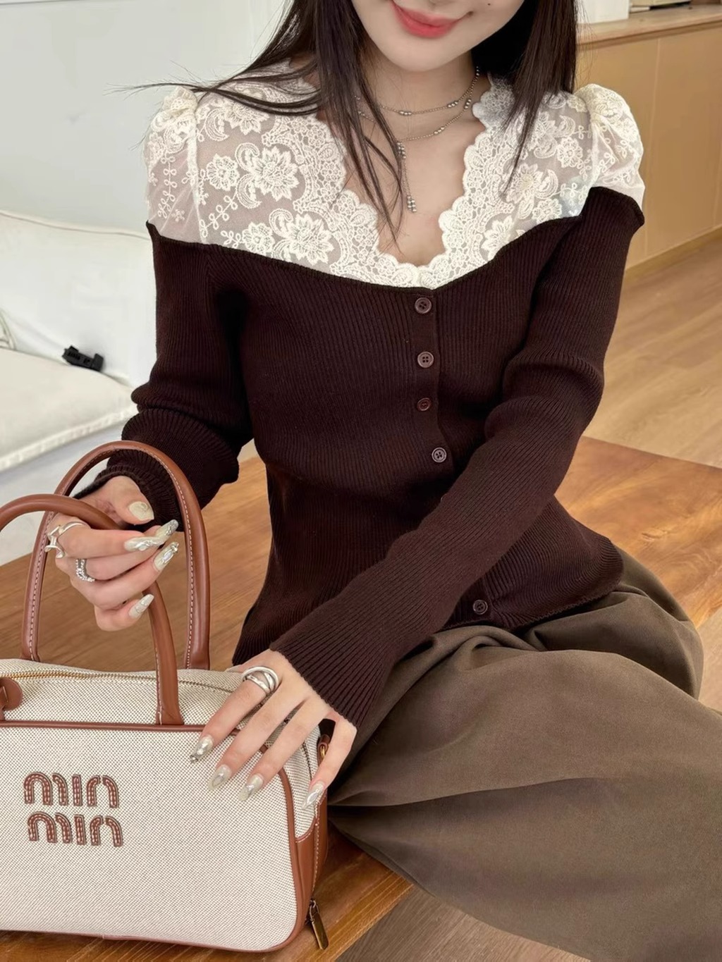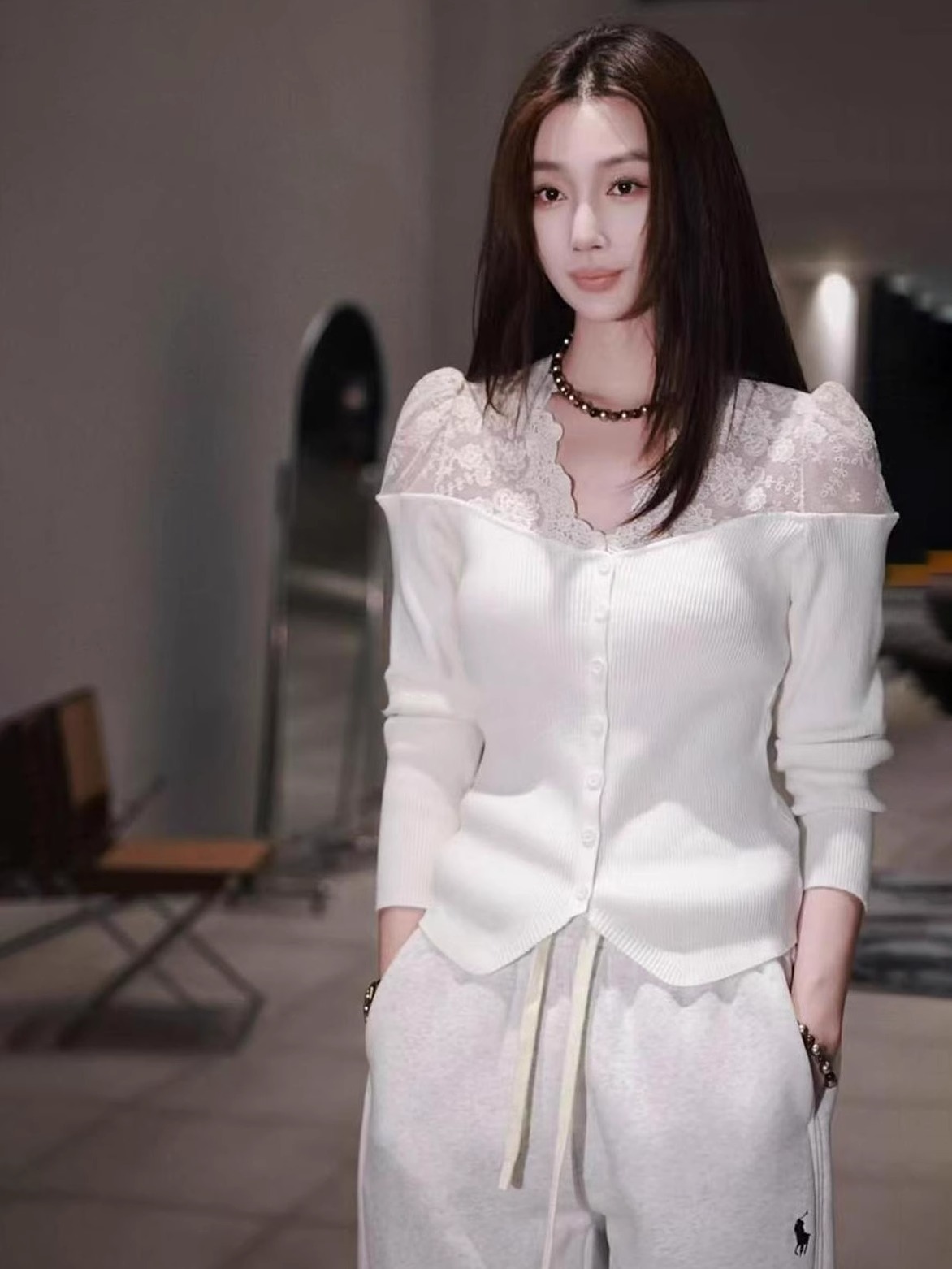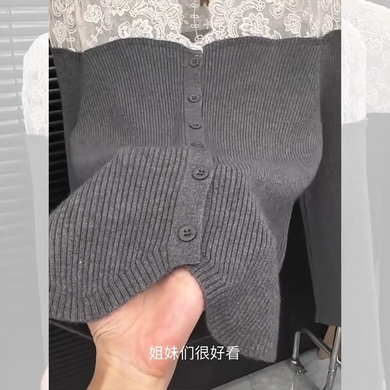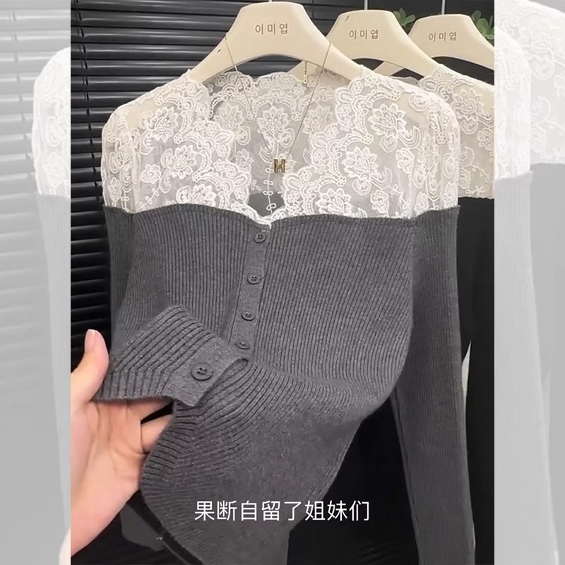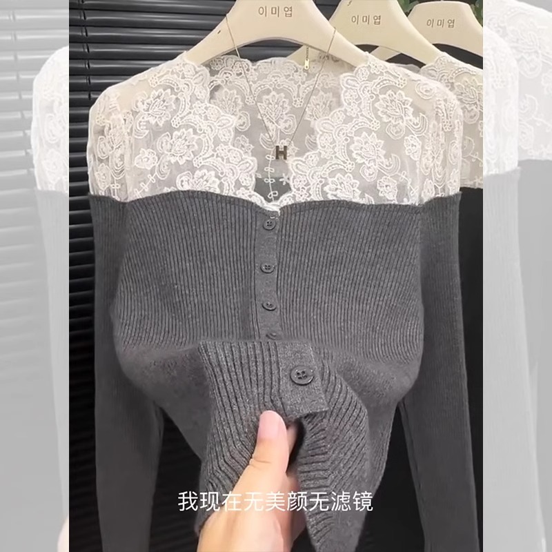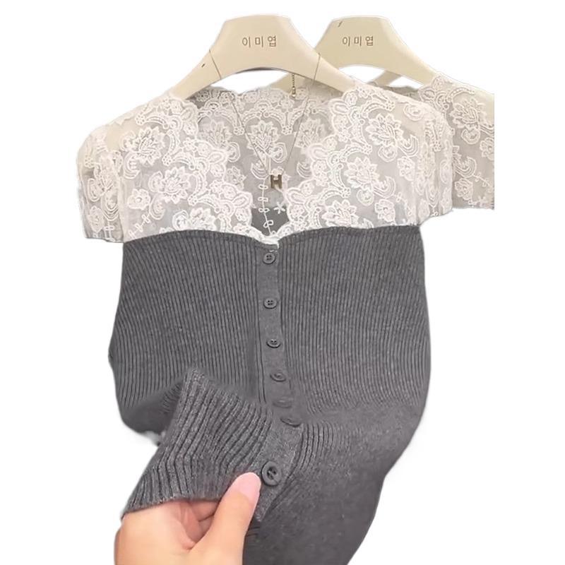 프렌치 그레이 레이스 스티칭 카디건 스웨터 여성의 가을과 겨울 내베이스 셔츠 슈퍼 니스 스웨터 탑