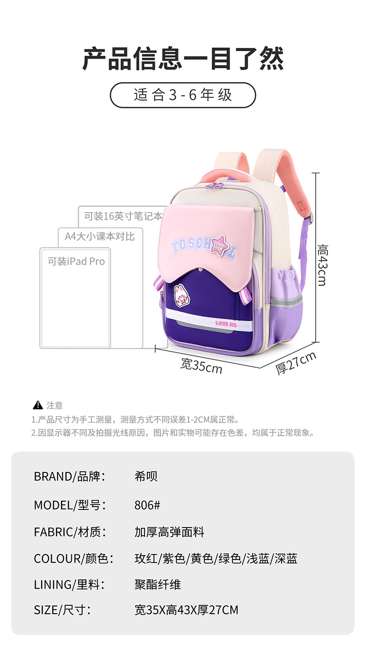 3-6 학년 초등학교 학교 가방 경량 무게 감소 대용량 학생 가방 안티 튀는 반사 배낭