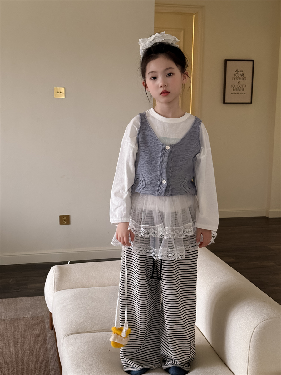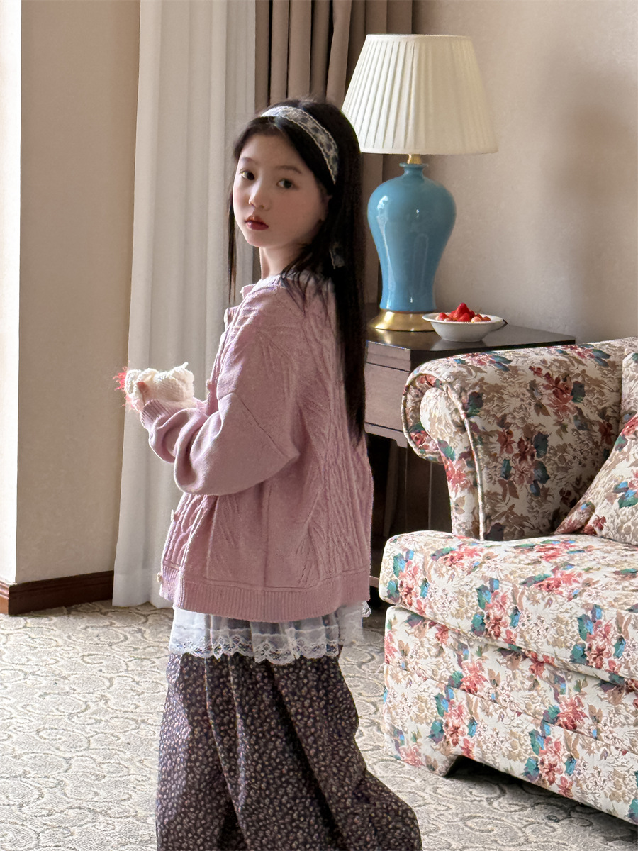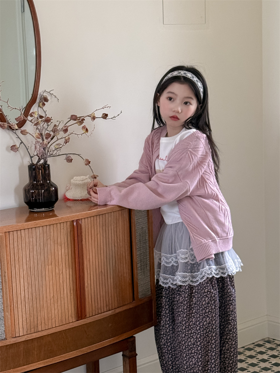 꽃과 찾기 KIDS 소녀 스커트 2025 봄 새로운 더블 레이어 아트 커튼 쌓인 아티팩트 캐주얼 스커트
