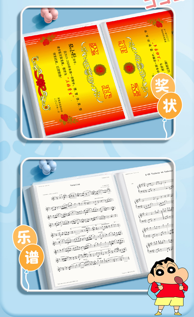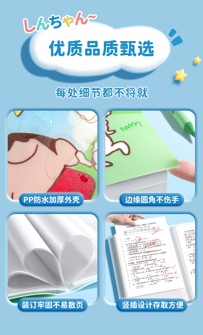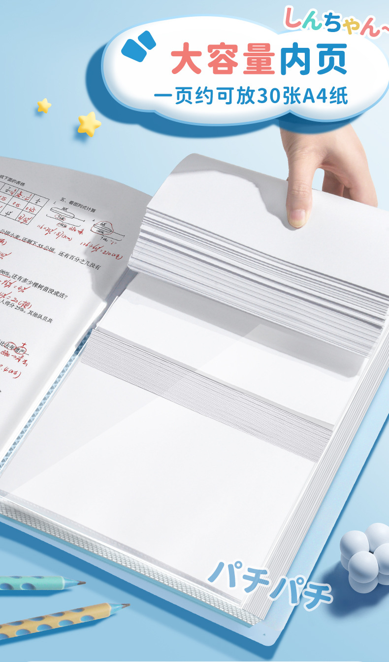 Crayon Xiaoxin 공동 a4 데이터 북 테스트 종이 저장 책 가방 분류 투명 삽입 시트 음악 폴더 학생 상스토어 가기