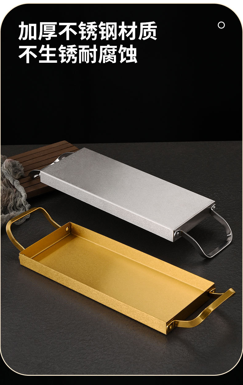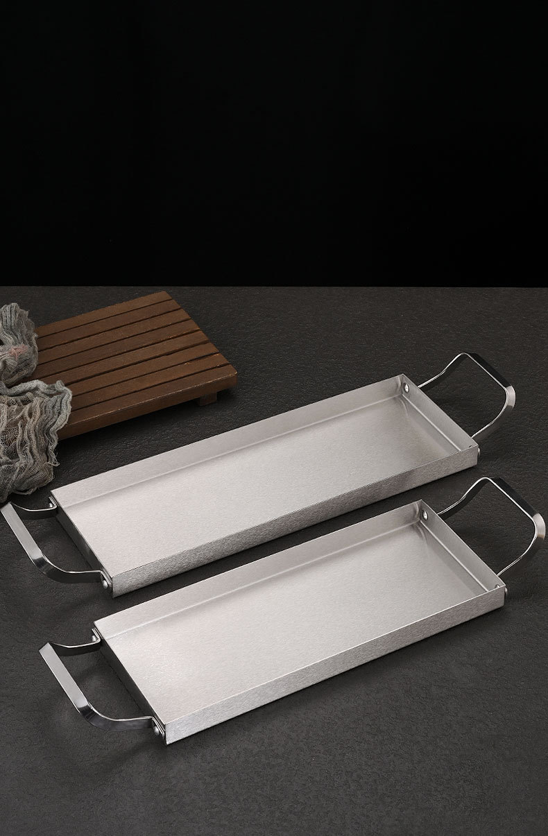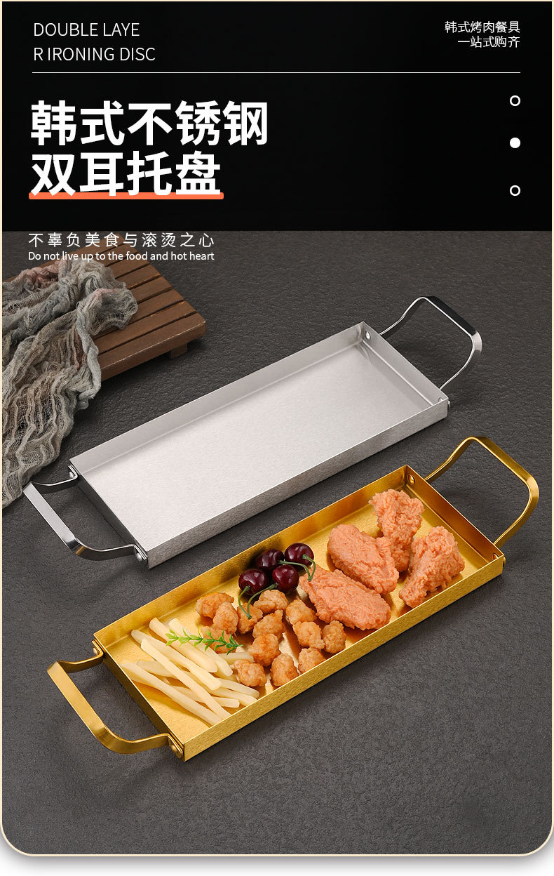 한국식 스테인레스 스틸 바비큐 플레이트 평평한 직사각형 트레이 스낵 플레이트 디저트 스시 바이노럴 냄비 접시스토어 가기