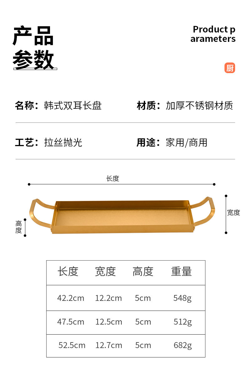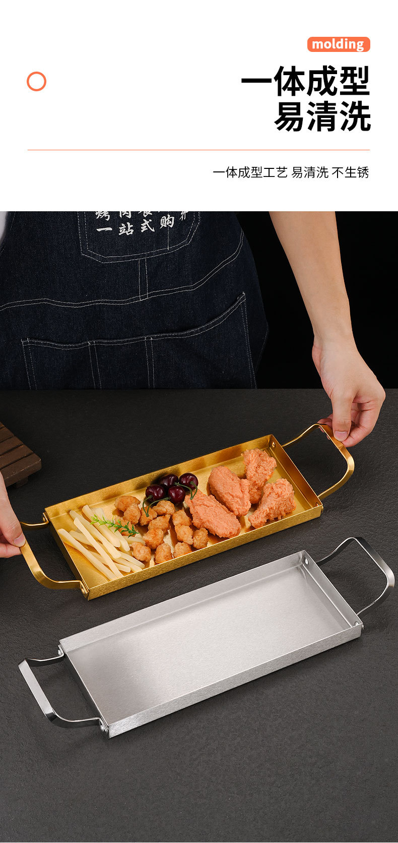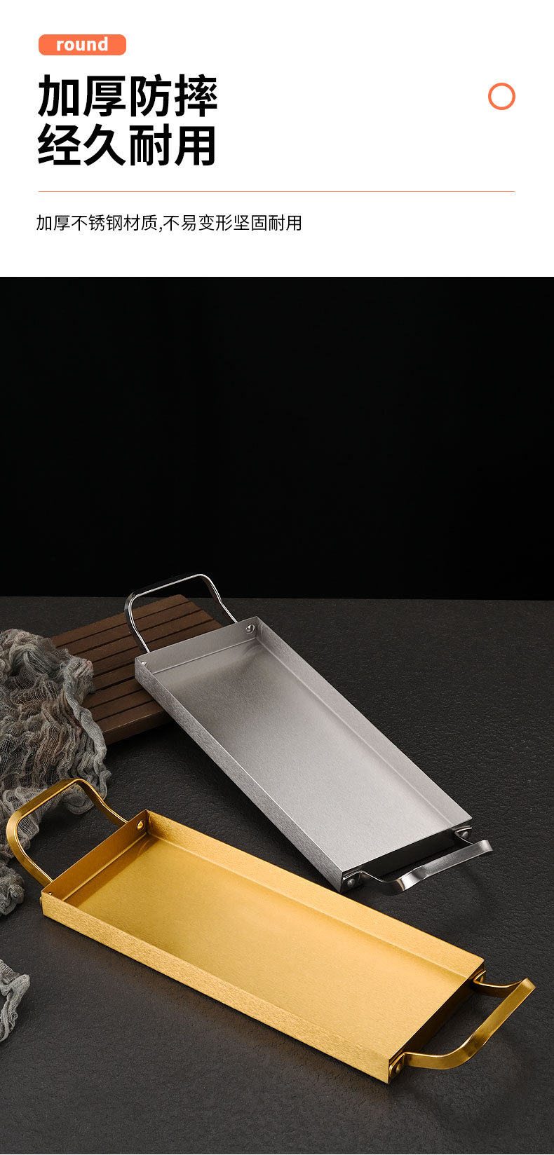 한국식 스테인레스 스틸 바비큐 플레이트 평평한 직사각형 트레이 스낵 플레이트 디저트 스시 바이노럴 냄비 접시스토어 가기