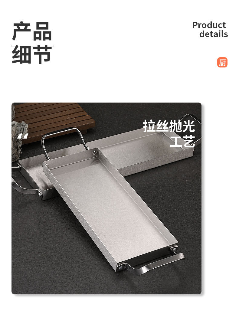 한국식 스테인레스 스틸 바비큐 플레이트 평평한 직사각형 트레이 스낵 플레이트 디저트 스시 바이노럴 냄비 접시