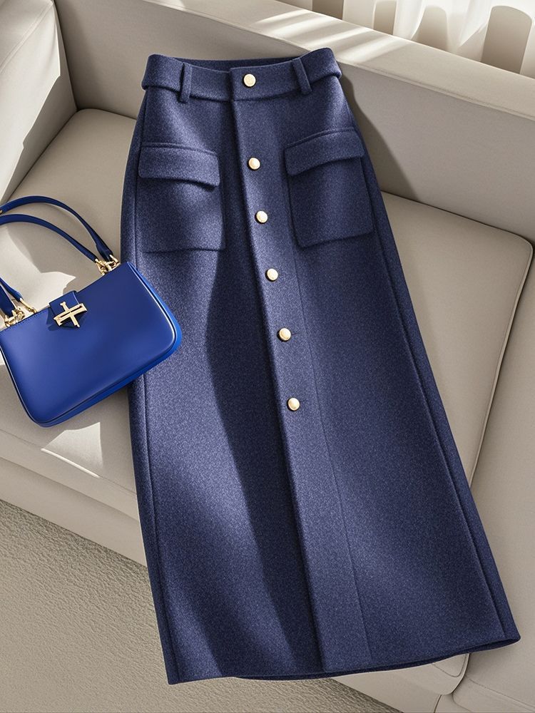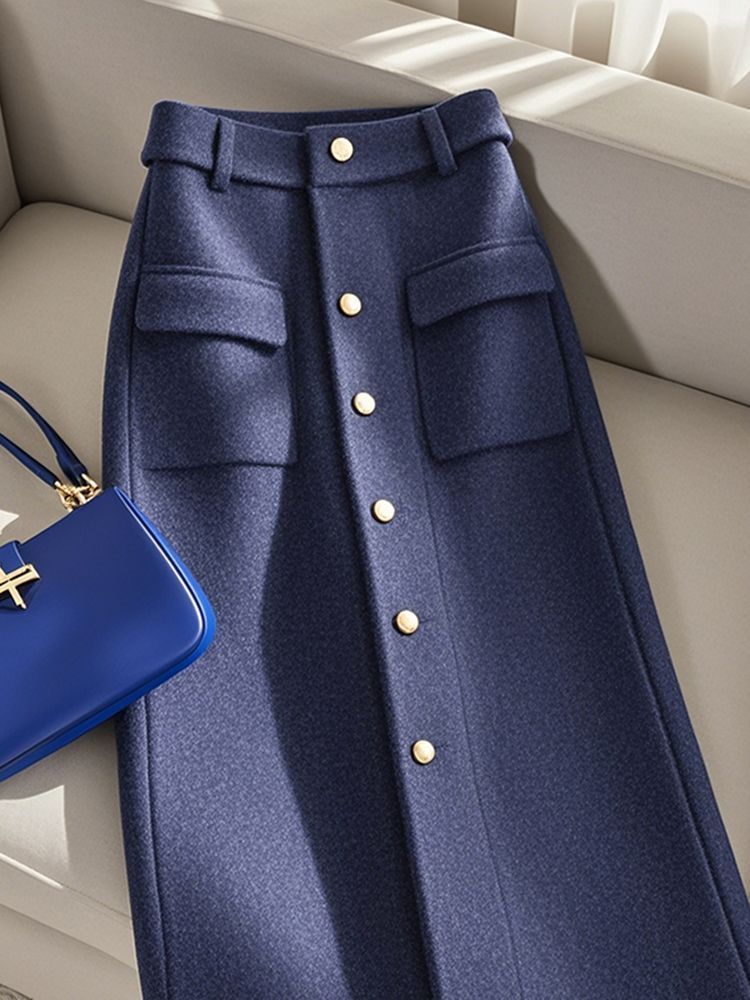 가을과 겨울 구리 황산염 작은 하이 엔드 유행 세련된 A 라인 스커트 하이 엔드 섬세한 블루 라이트 성숙한 스커트 여성스토어 가기