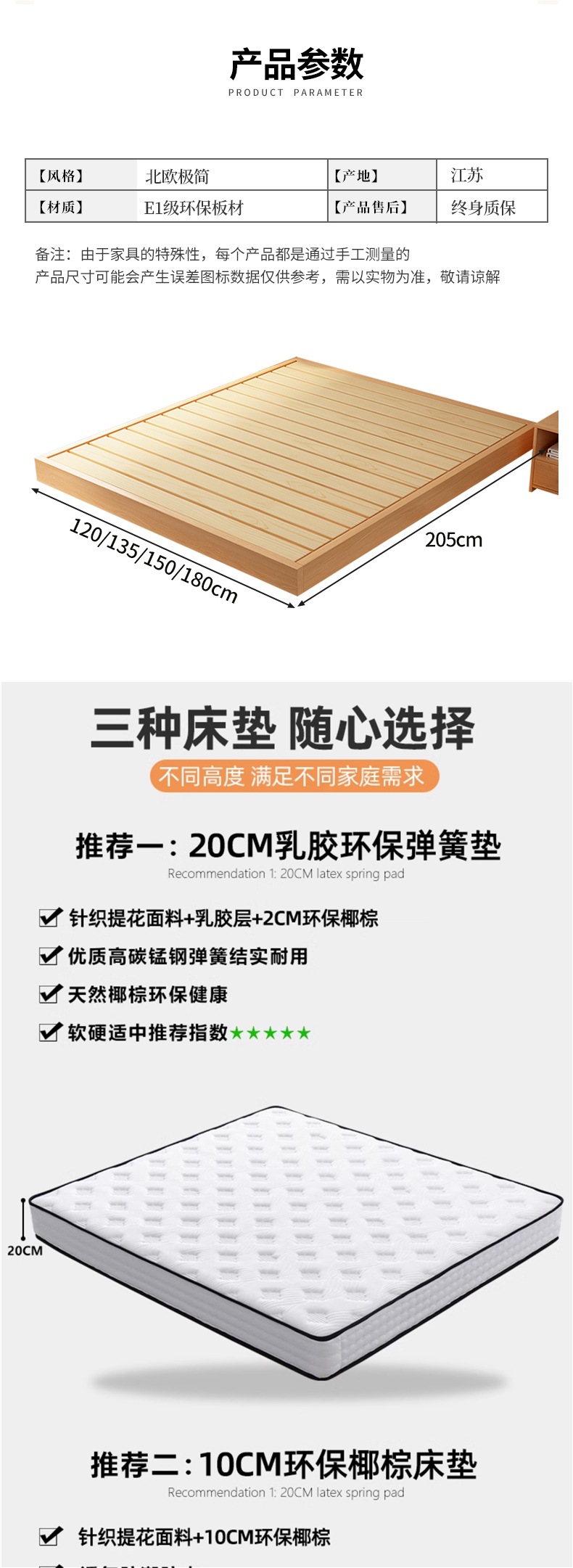 • [가로 배송 및 설치 패키지] 매달린 다다미 싱글 침대 + 20cm 피부 친화적인 스프링 매트리스