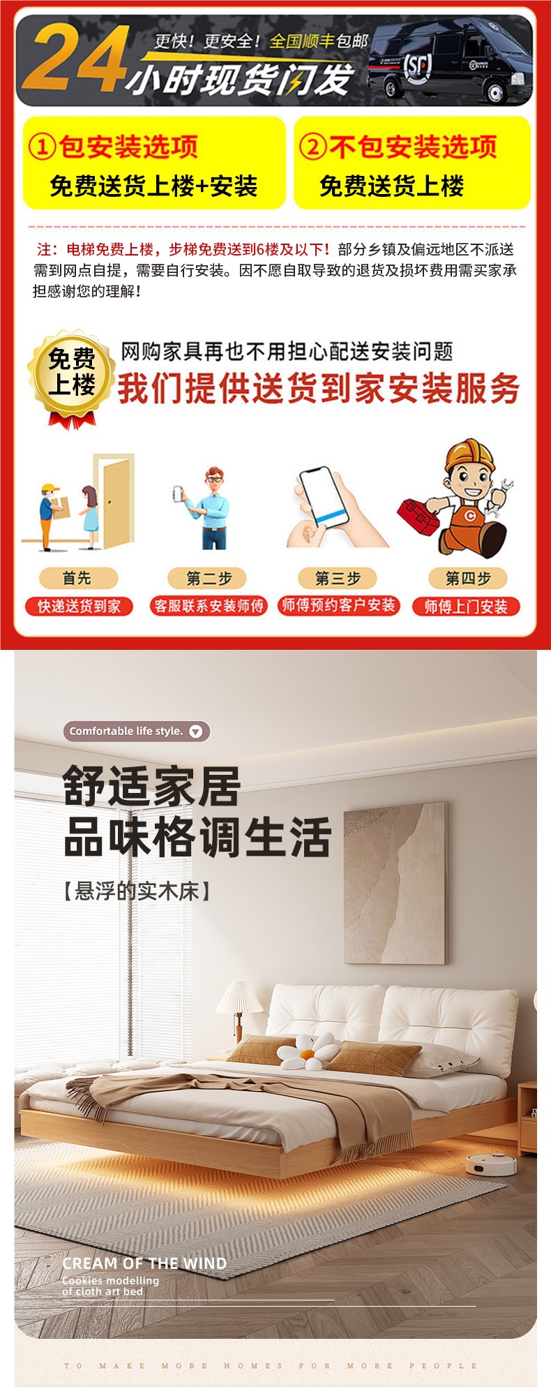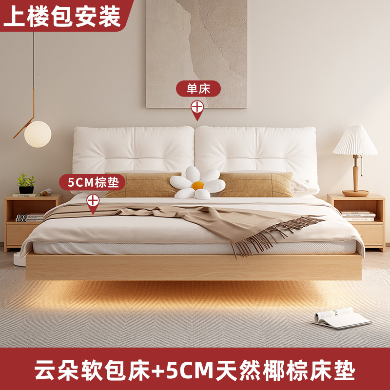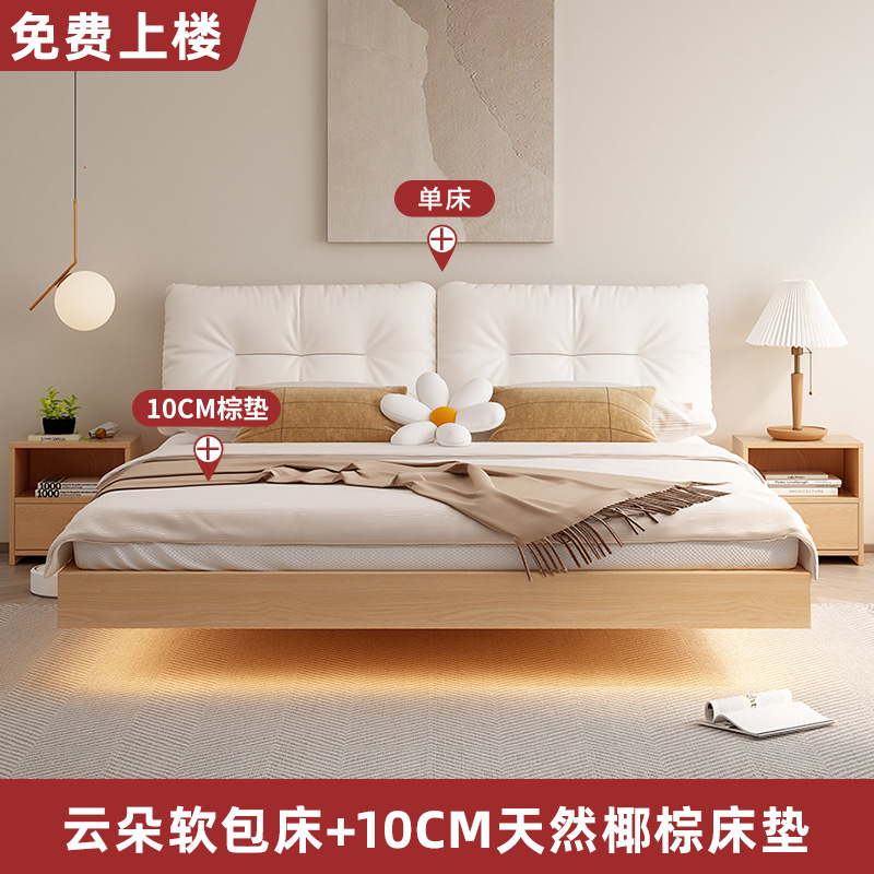 • [택배 패키지 설치] 플로팅 소프트 커버 침대 + 20cm 피부 친화적인 스프링 매트리스