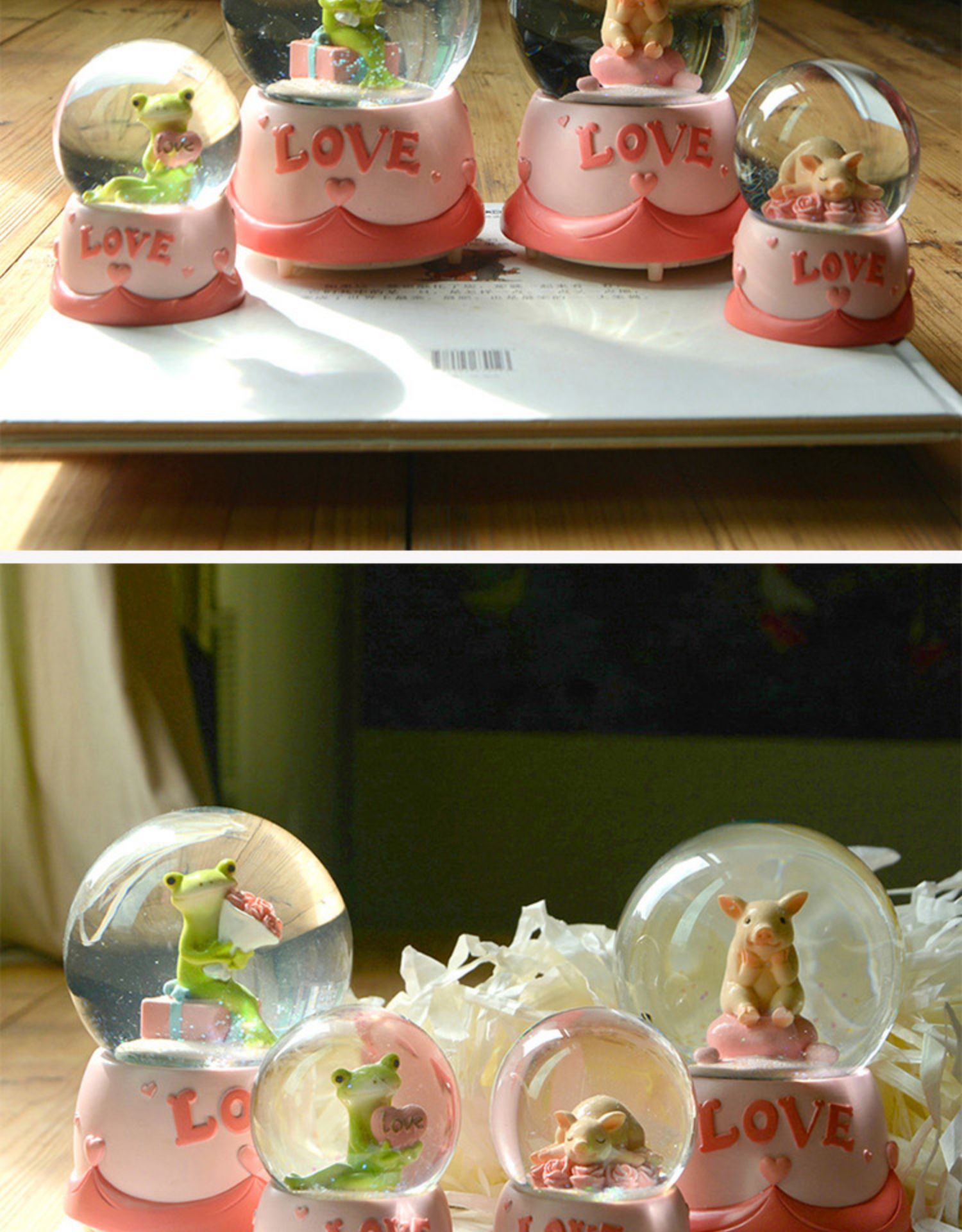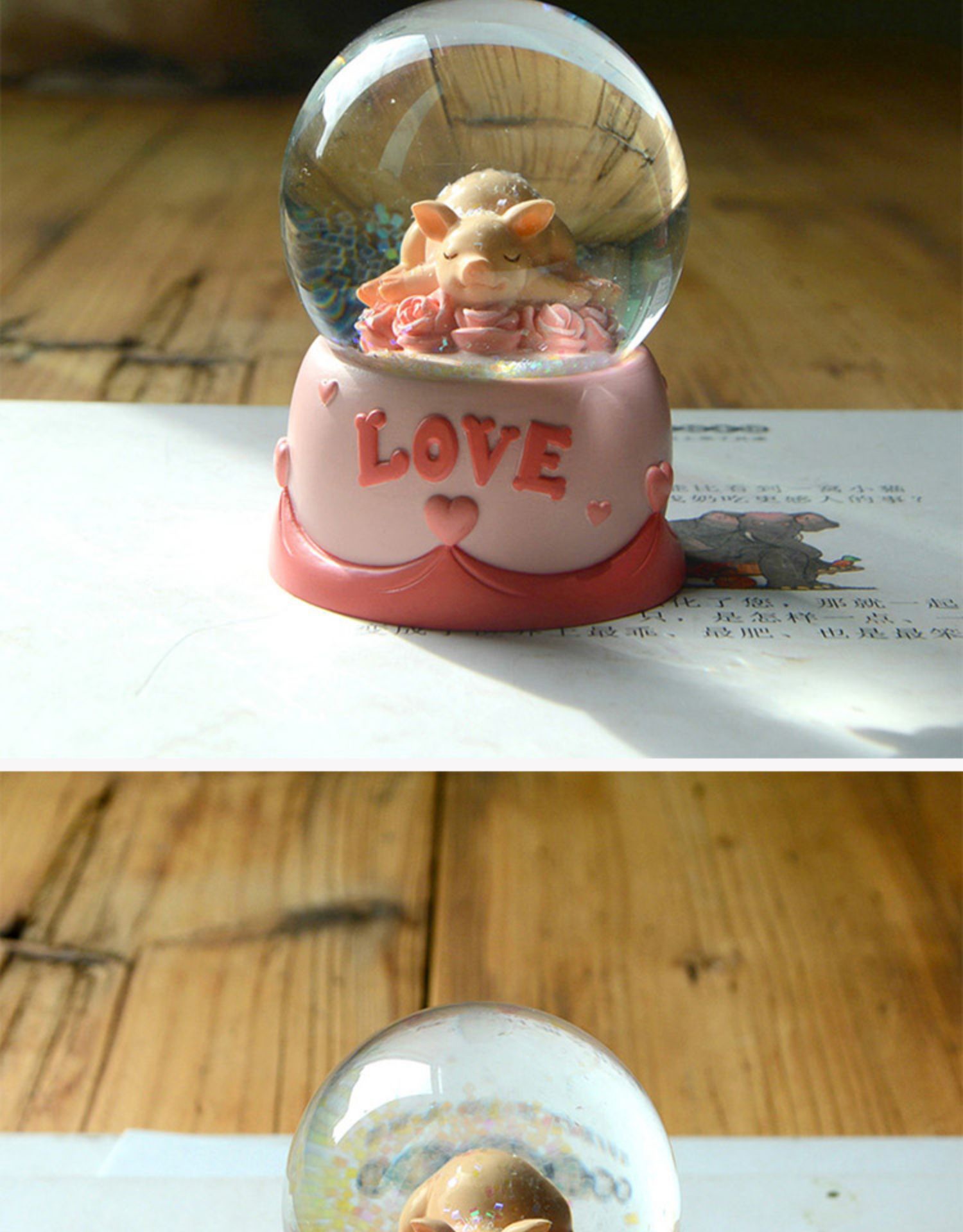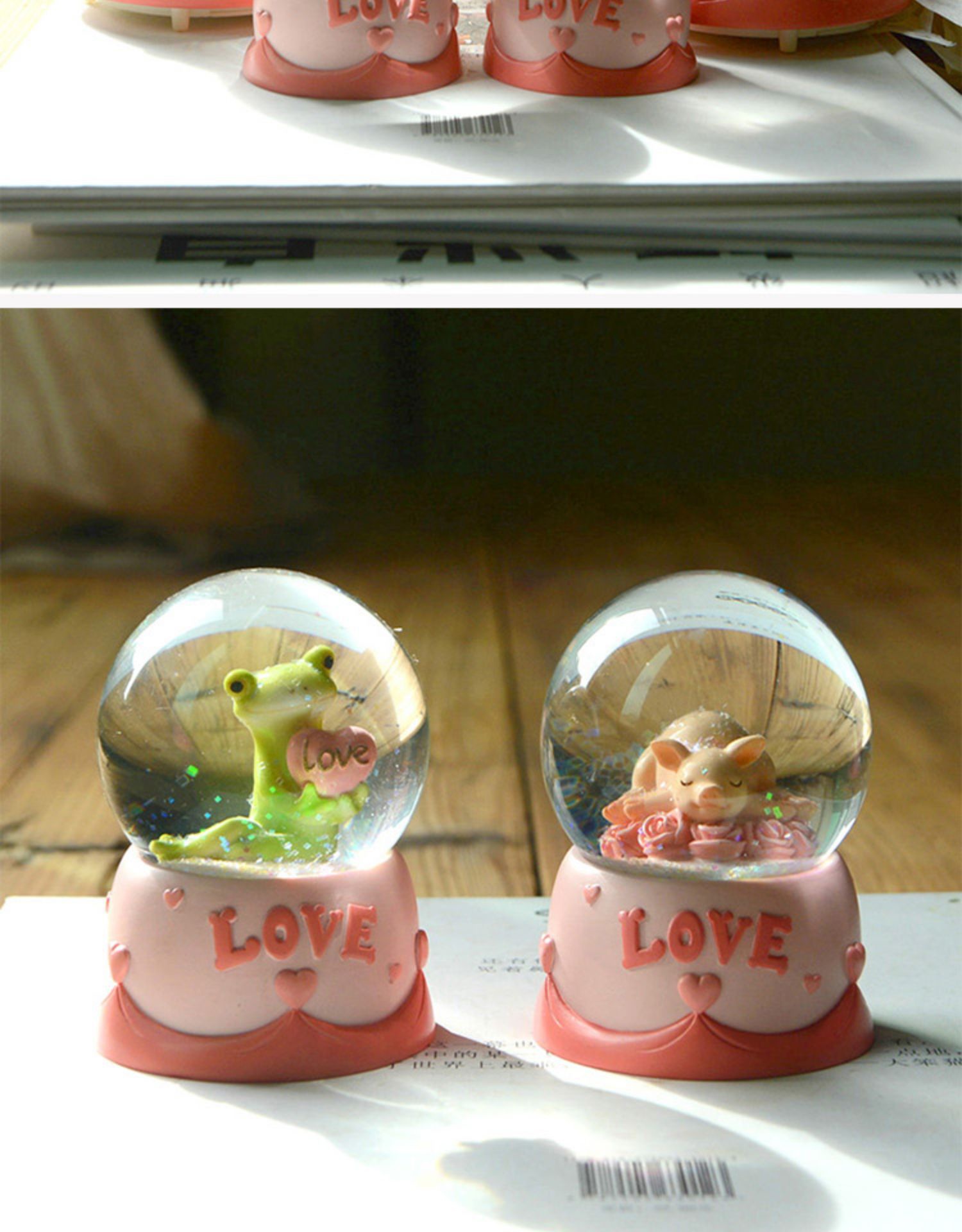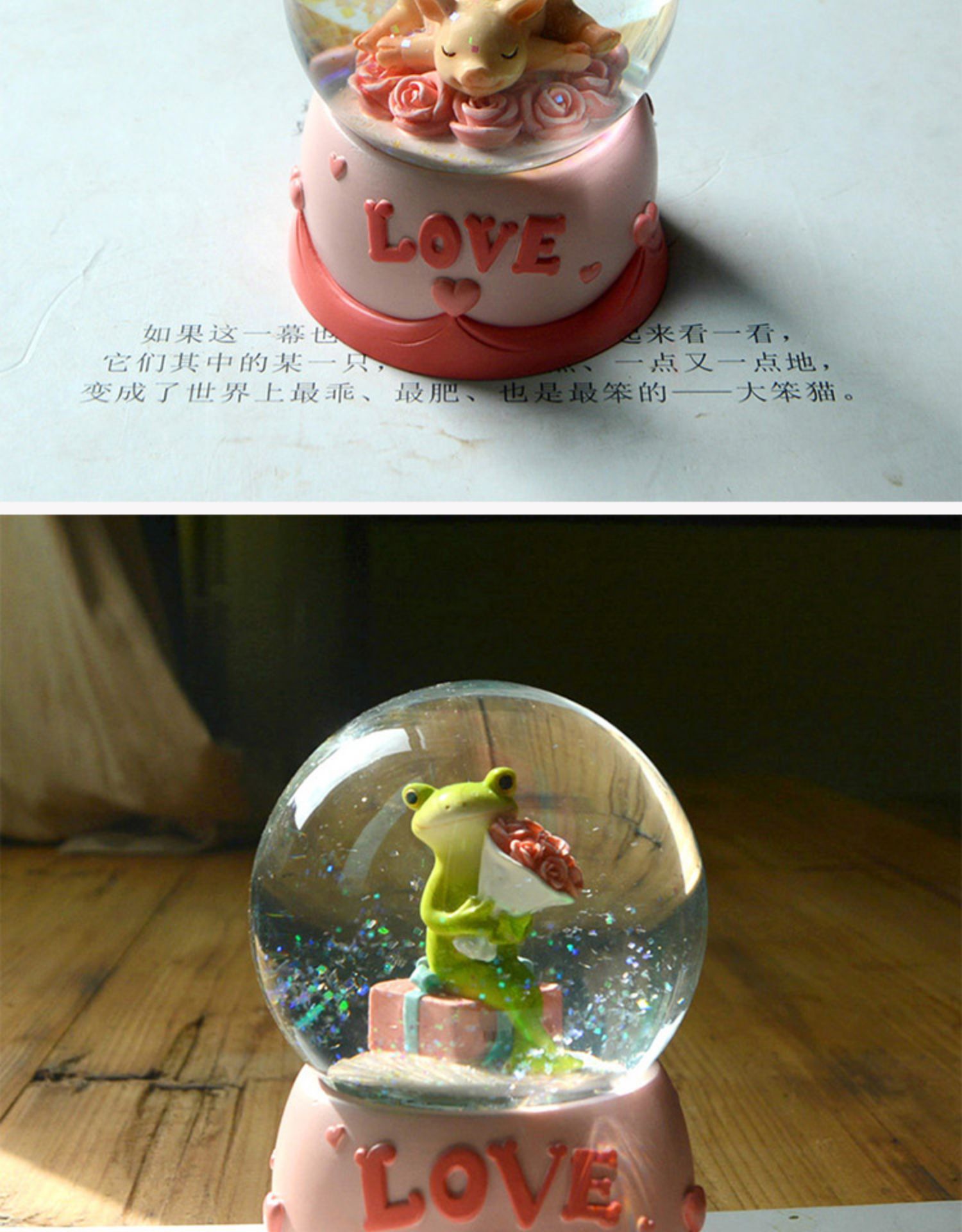 크리스탈 볼 유리 음악 상자 개구리 돼지 꿈 음악 상자 소녀 생일 선물 장식품 남성과 여성 친구스토어 가기