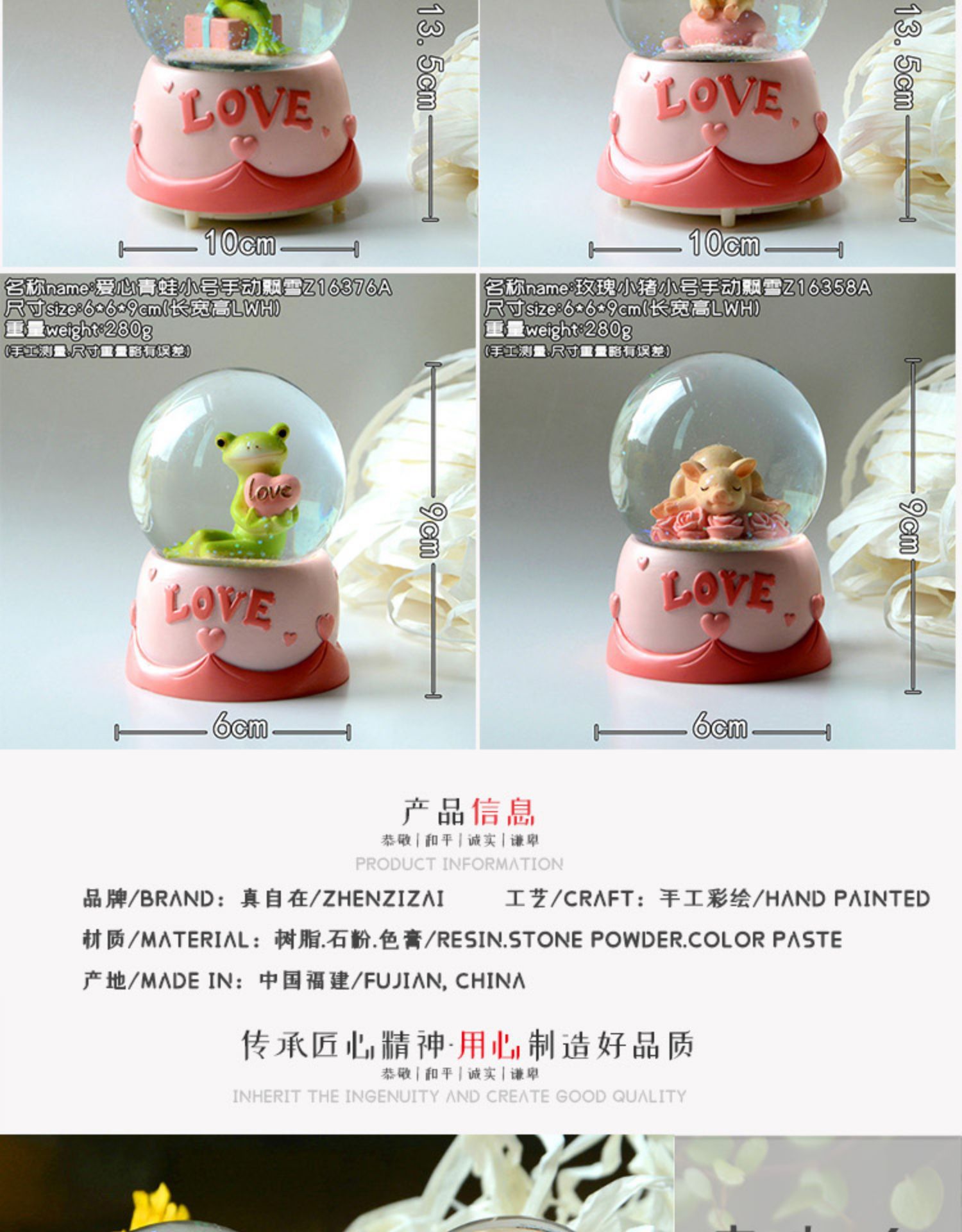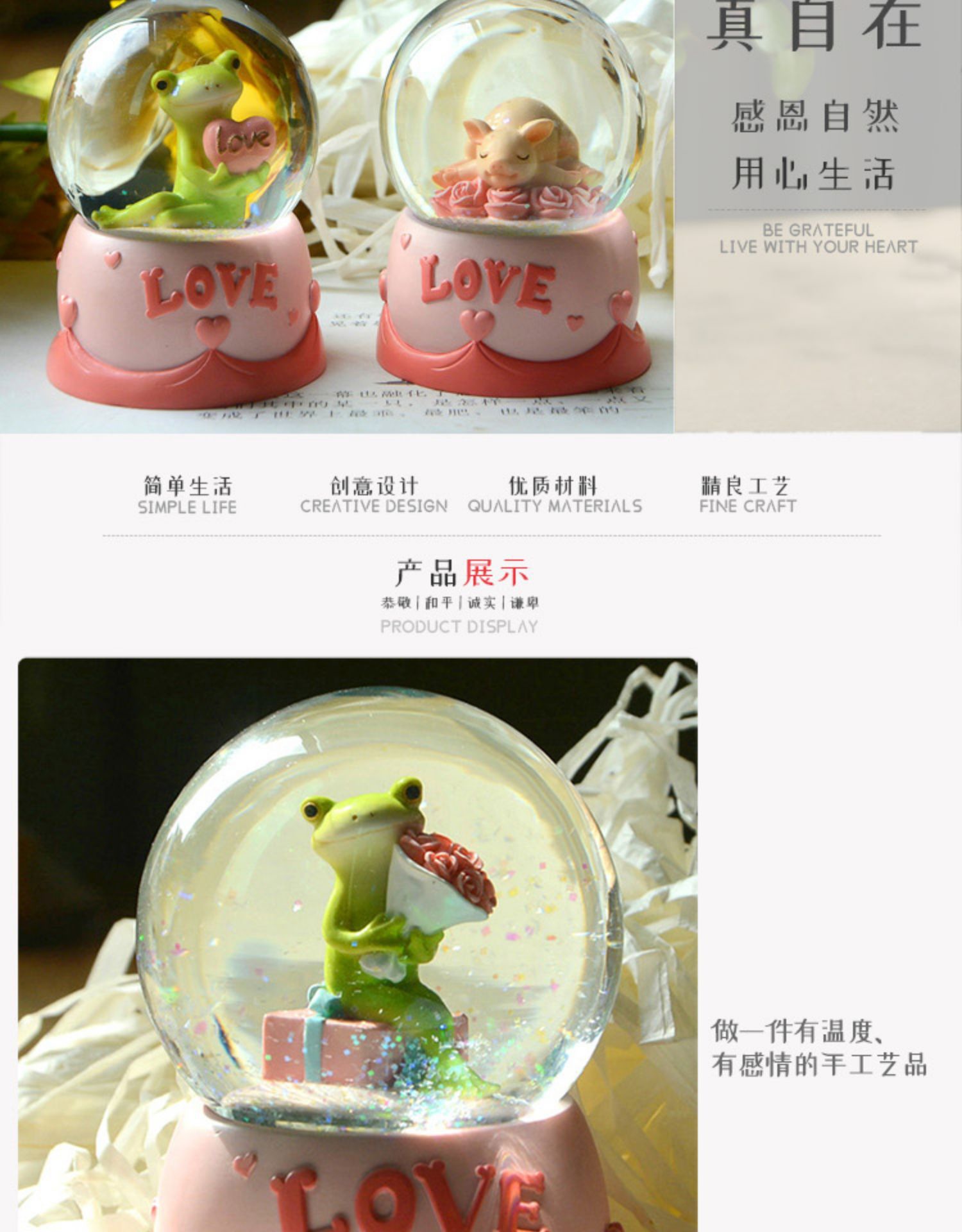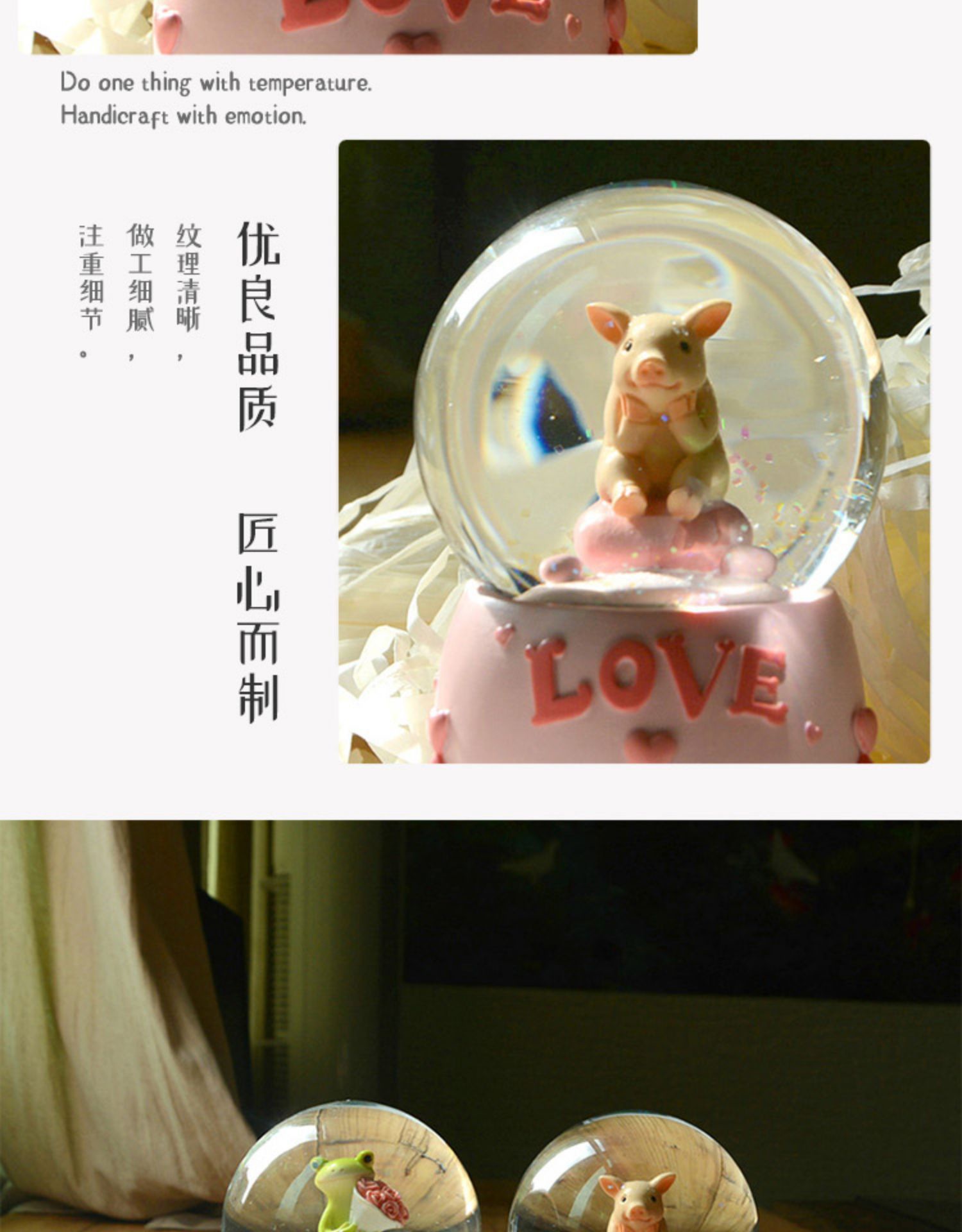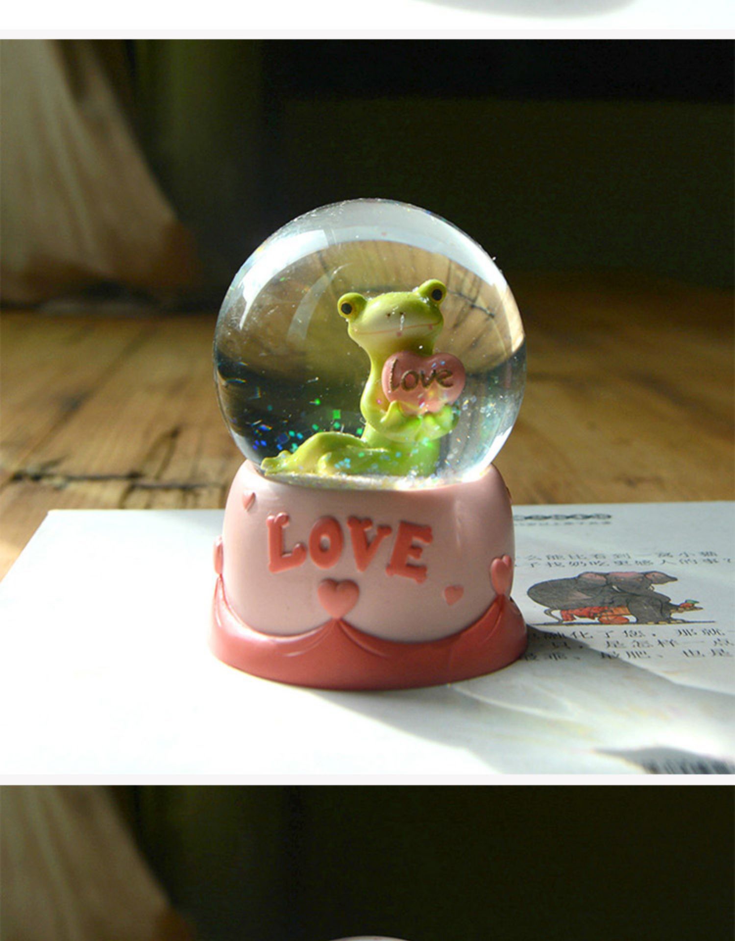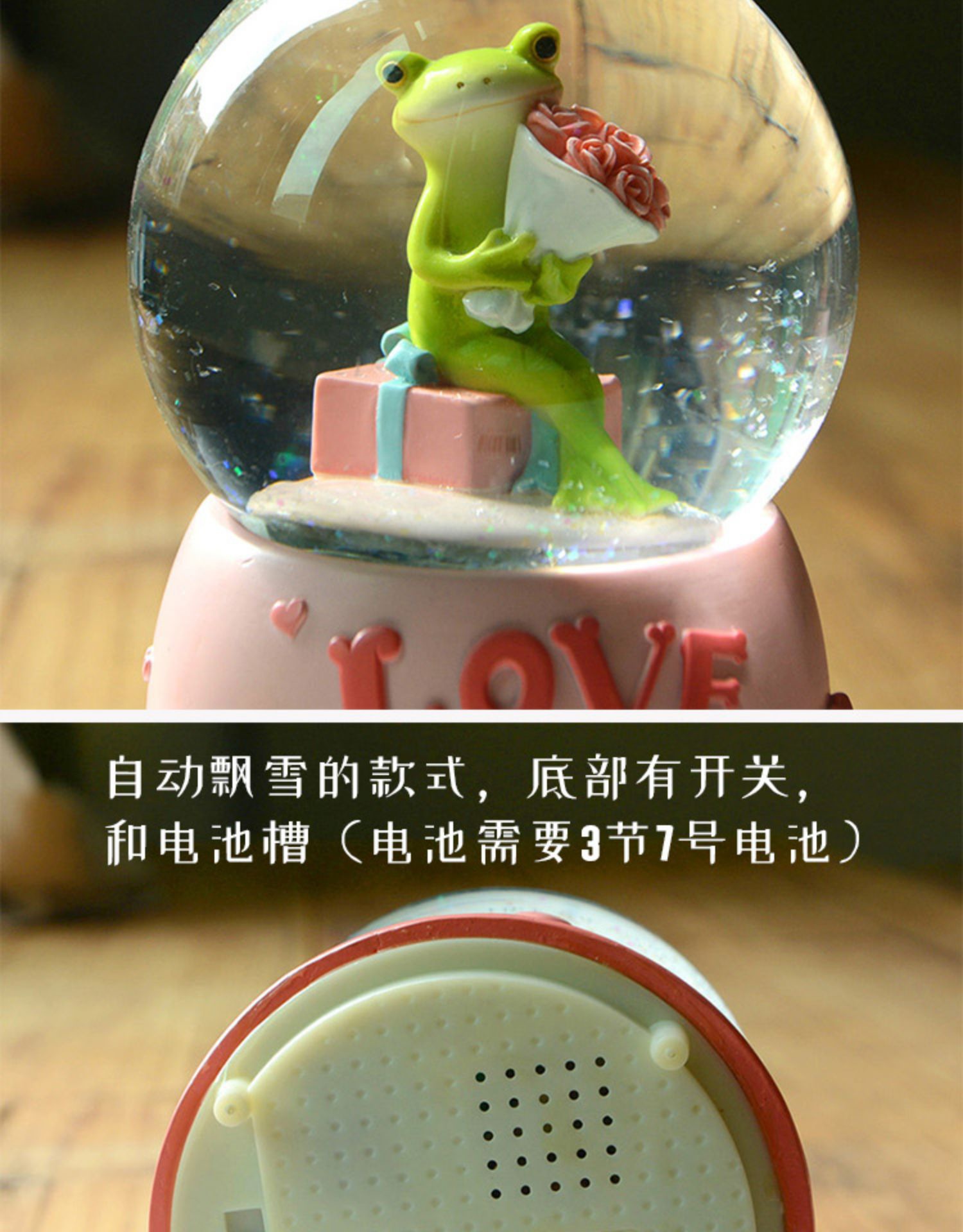 크리스탈 볼 유리 음악 상자 개구리 돼지 꿈 음악 상자 소녀 생일 선물 장식품 남성과 여성 친구스토어 가기