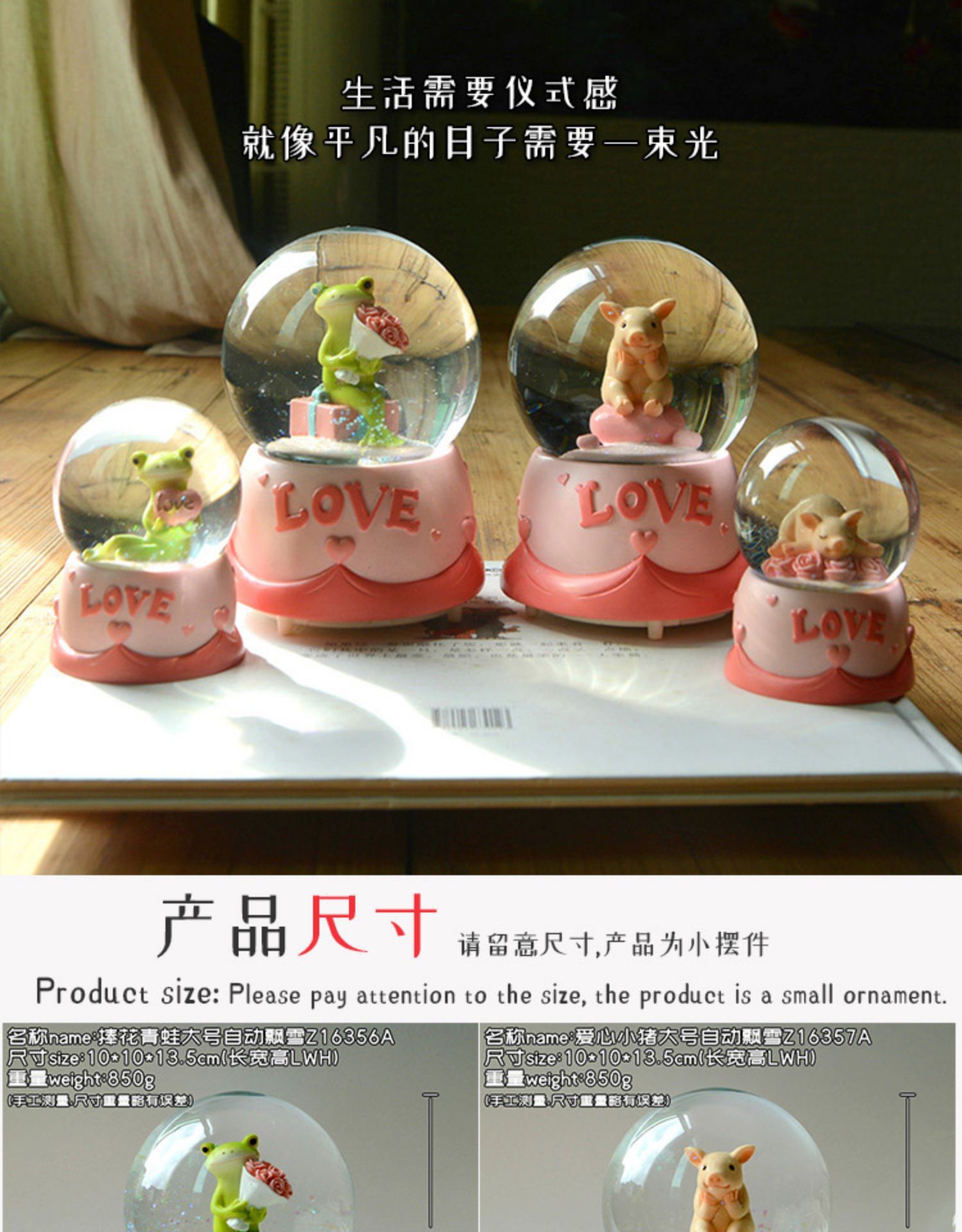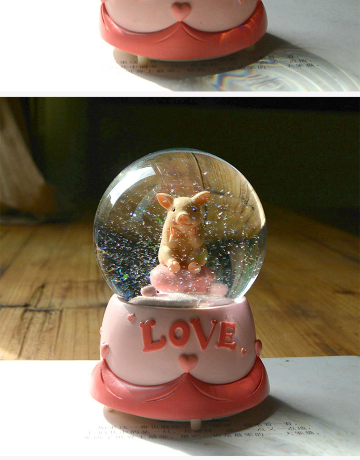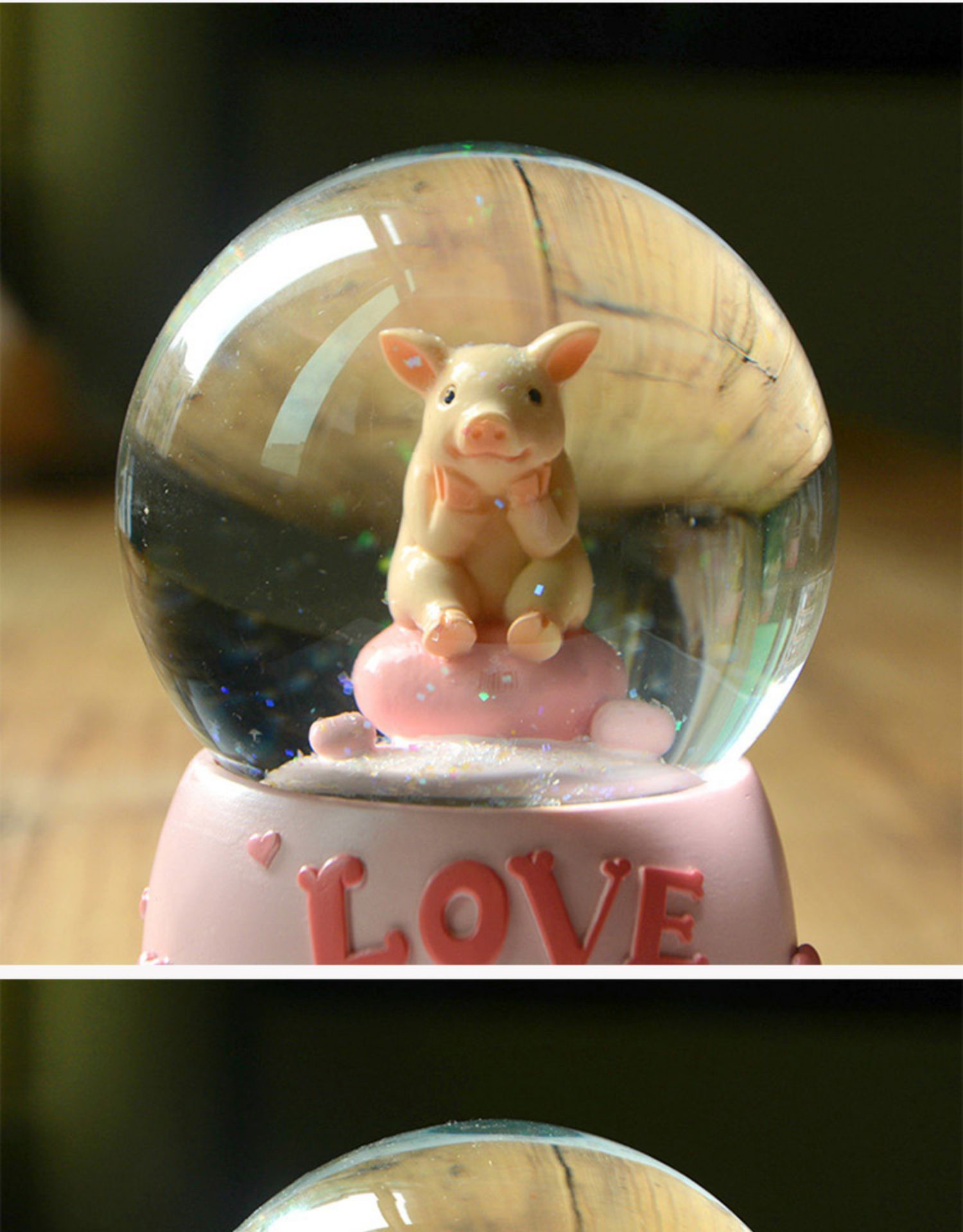 크리스탈 볼 유리 음악 상자 개구리 돼지 꿈 음악 상자 소녀 생일 선물 장식품 남성과 여성 친구