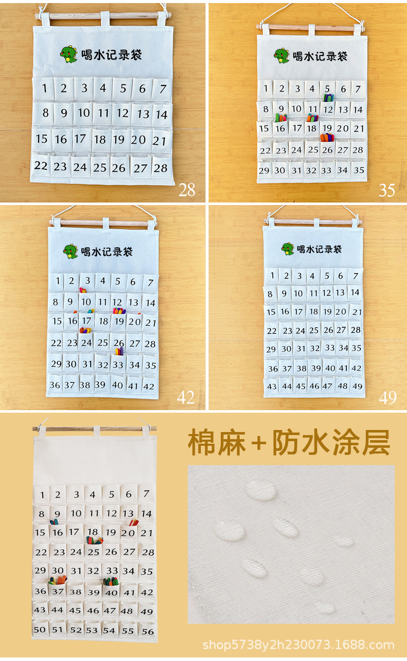 28格喝水记录袋,尺寸:36*42cm